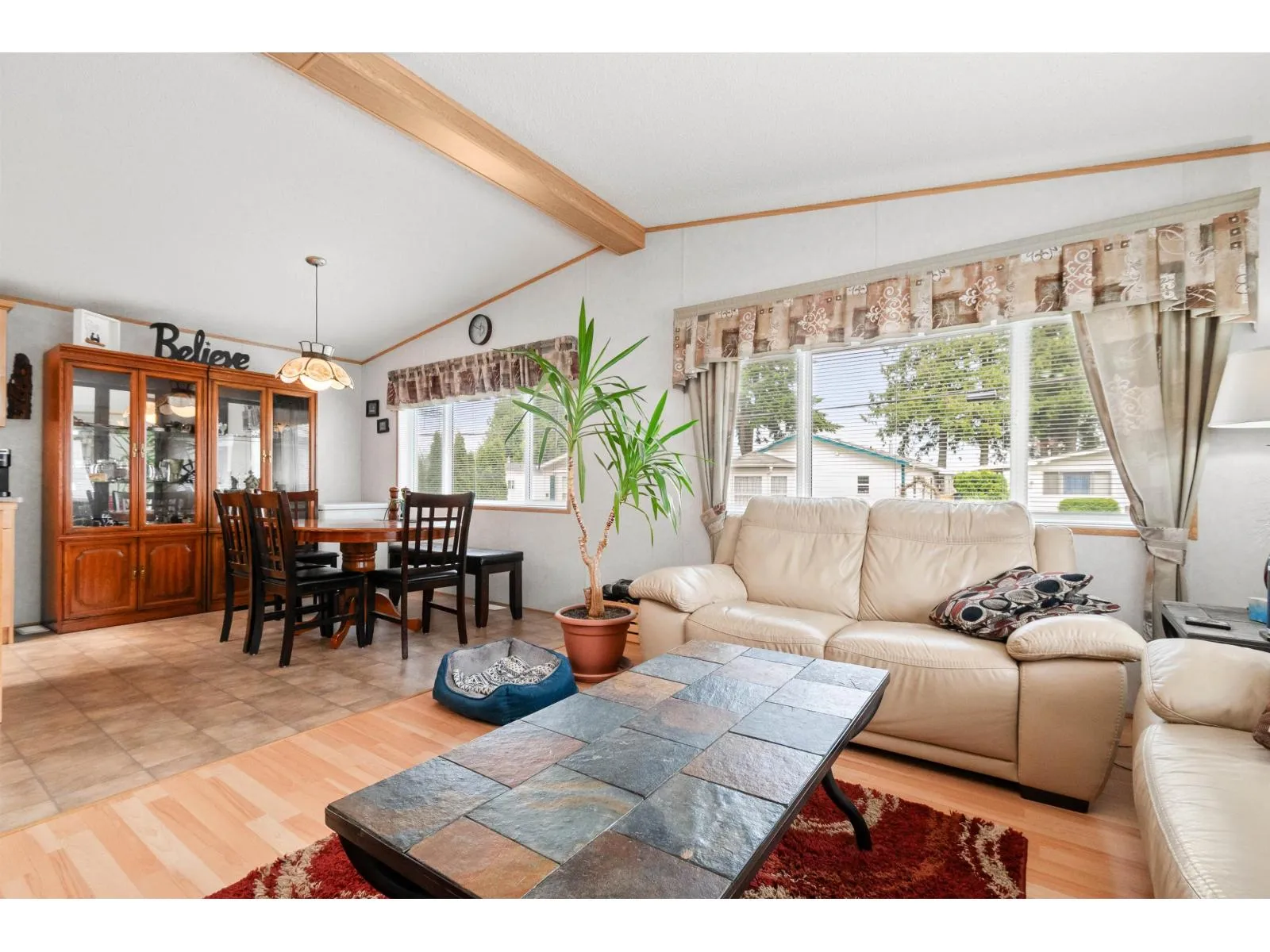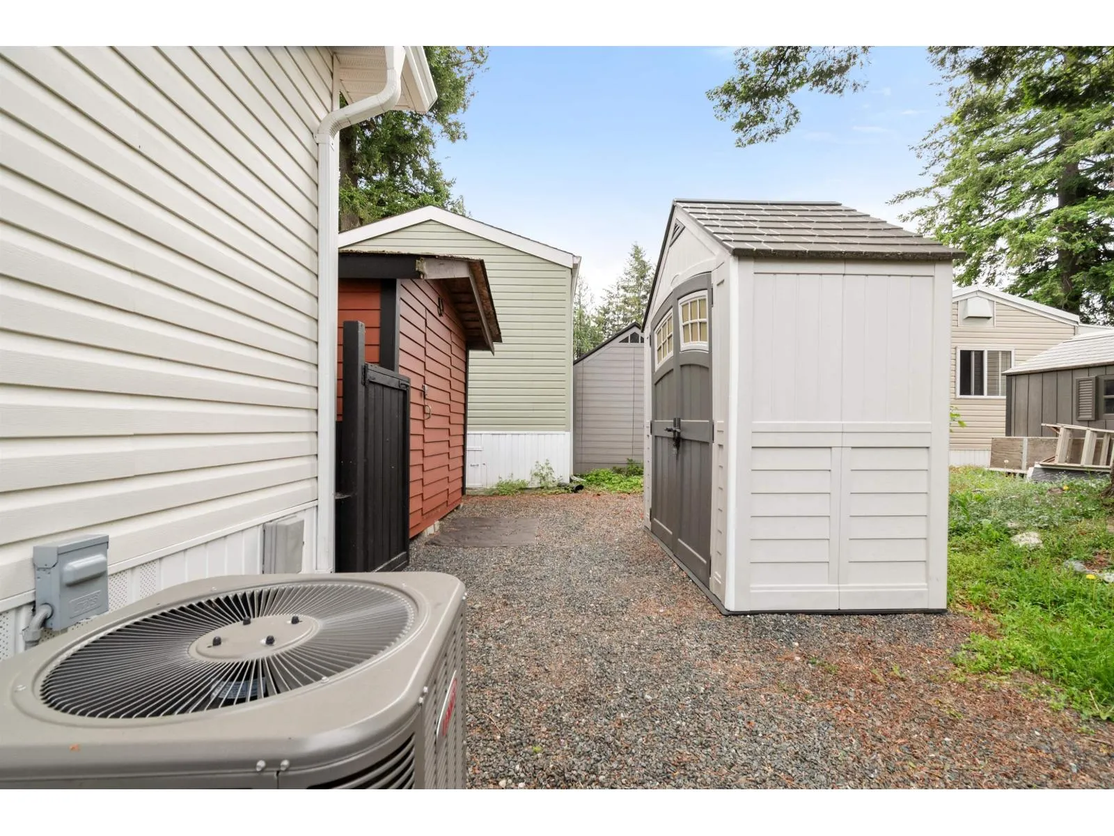 This beautifully updated double-wide manufactured home offers flexibility and comfort with the option to easily convert a space into a third bedroom. Featuring 2 spacious bedrooms and a well-appointed bathroom, it's perfect for anyone seeking a low-maintenance lifestyle in a friendly, vibrant 45+ community. The open-concept living area is bright and airy, providing plenty of room to entertain or simply relax. Recent upgrades include A/C, ensuring year-round comfort. Step outside to a private yard with 2 garden sheds for extra storage. The large parking pad offers plenty of space for multiple vehicles, making it ideal for guests or extra storage. Pet lovers will appreciate that small dogs are welcome. Located centrally, you're just minutes away from shopping, dining, and local amenities. * PREC - Personal Real Estate Corporation (id:27476)