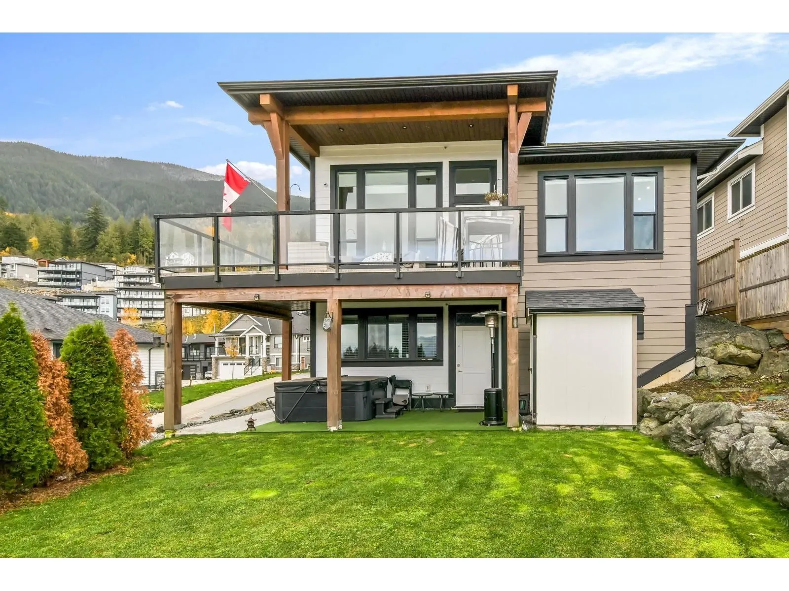 Stunning 4 bed, 3 bath home in Camden at the Falls, just 100 yards from the golf course with unobstructed mountain and valley views. Enjoy peaceful hillside living with a spacious primary bedroom and spa-like ensuite overlooking the scenery. The second bedroom doubles perfectly as an office. The open-concept great room features a large kitchen island and high-end stainless steel appliances-ideal for entertaining. The walkout basement offers two additional bedrooms and a covered patio leading to your private hot tub. A rare blend of luxury, privacy, and lifestyle. (id:27476)