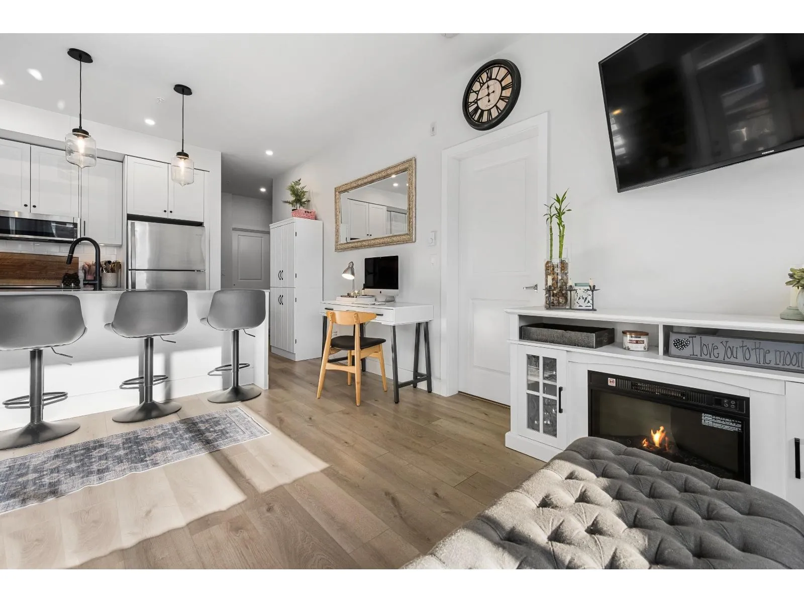 Immaculate 2-bedroom, 2-bathroom corner unit condo in the heart of Sardis' vibrant Iron Horse community. Looks like new"-without the GST! Beautifully designed interior featuring quartz countertops, white shaker cabinets, SS appliances & thoughtful finishes throughout. Huge covered balcony w/ stunning mountain VIEWS. In-suite laundry & secure underground parking for added convenience. Located in a prime walkable area, just moments from schools, shopping, restaurants & parks. With easy access to scenic trails, the Vedder River & Cultus Lake, this location is a dream for nature lovers. This bright, modern home offers exceptional value in one of the area's most sought-after neighbourhoods. * PREC - Personal Real Estate Corporation (id:27476)