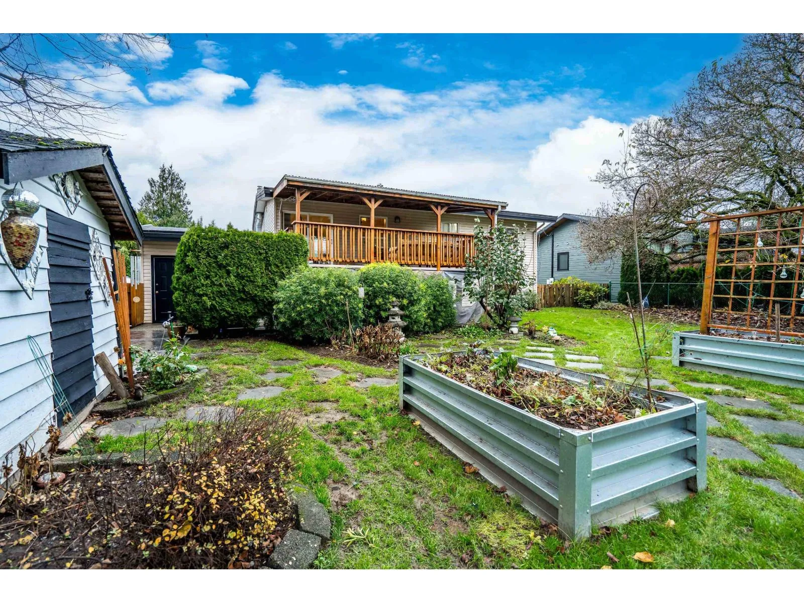 Welcome to Griffin Drive, one of the most desirable neighborhoods in Sardis. This beautifully updated 4-bed, 2-bath family home sits on an impressive 12,632 sq ft lot (80'+ frontage) offering subdivision potential, coach house potential & room for a future shop. Step inside to fresh paint, warm décor & bright, inviting layout perfect for family living. The south-facing backyard is a true highlight"-lush trees, mature gardens & peaceful setting ideal for relaxing or entertaining. Enjoy the outdoor gazebo, stunning covered deck & expansive outdoor space this property provides. Downstairs features a cozy gas fireplace in the family room & a large flex room with kitchen/suite potential. RV parking, beautiful stamped concrete from the driveway to the front entrance. (id:27476)