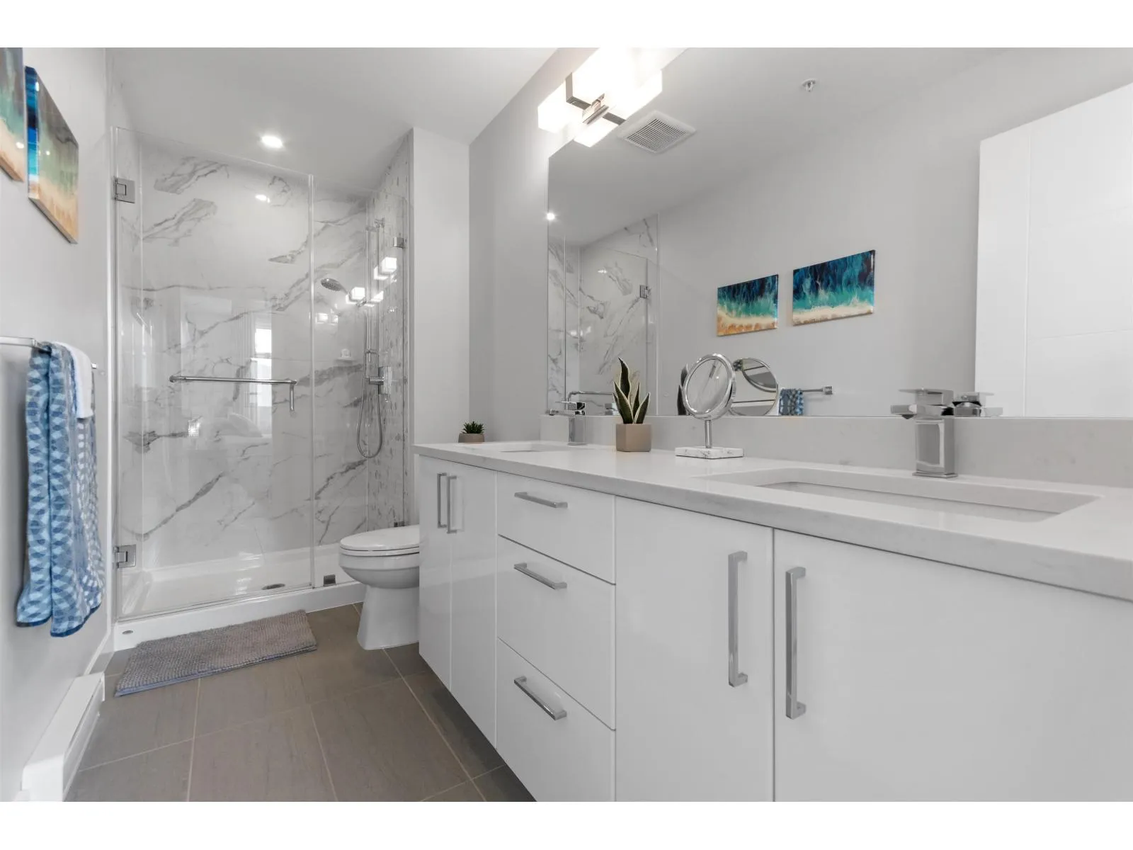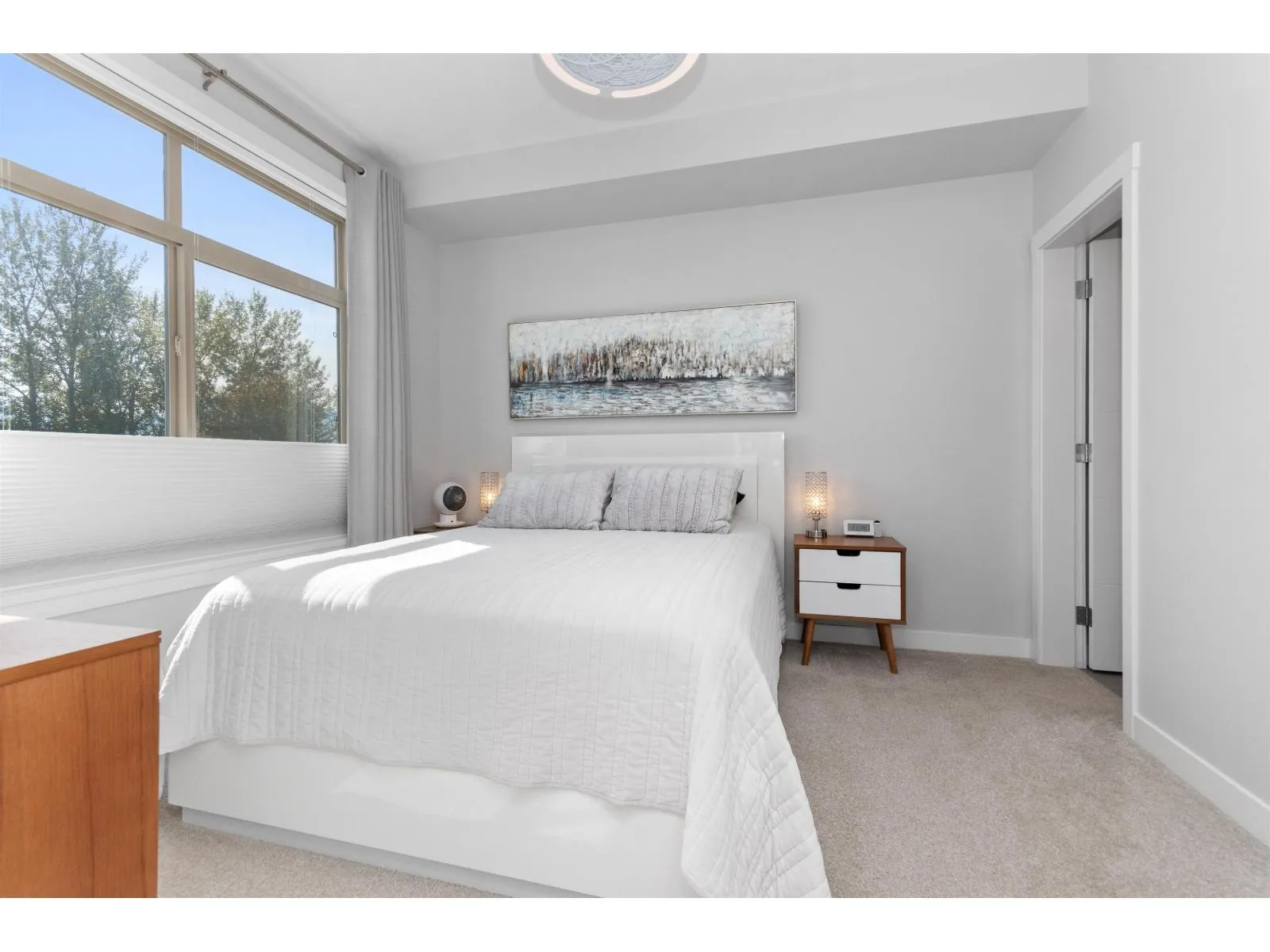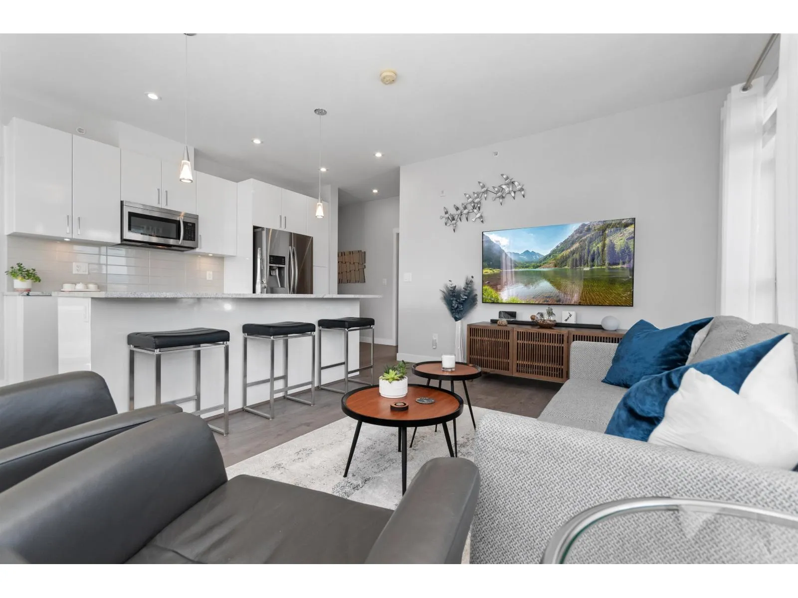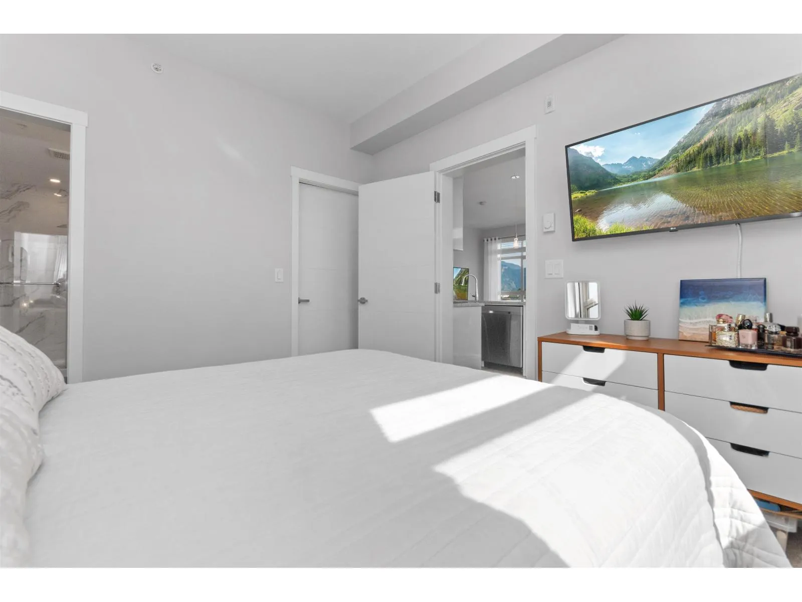 TOP FLOOR, CORNER UNIT, W/ AIR CONDITIONING! This incredible unit is one of a kind in all of Chilliwack! With an abundance of windows, and north and east exposure, it offers spectacular mountain views not just out of every window, but off the spacious corner deck. Inside, this 2bdrm 2 bth unit has been spotlessly maintained and shows pride of ownership. Ductless unit keeps the space cool in the summer, and warm in the winter, saving on electrical heat. Being top floor you get to enjoy the peace of having no one above, and only 1 neighboring unit beside you.This fabulous building offers a private earthy sitting space to embrace, walk around paths with benches on the elevated 1st floor, and a roof top deck best enjoyed with company! Rare 2 spot OWNED parking stalls in the secure UG parking. * PREC - Personal Real Estate Corporation (id:27476)