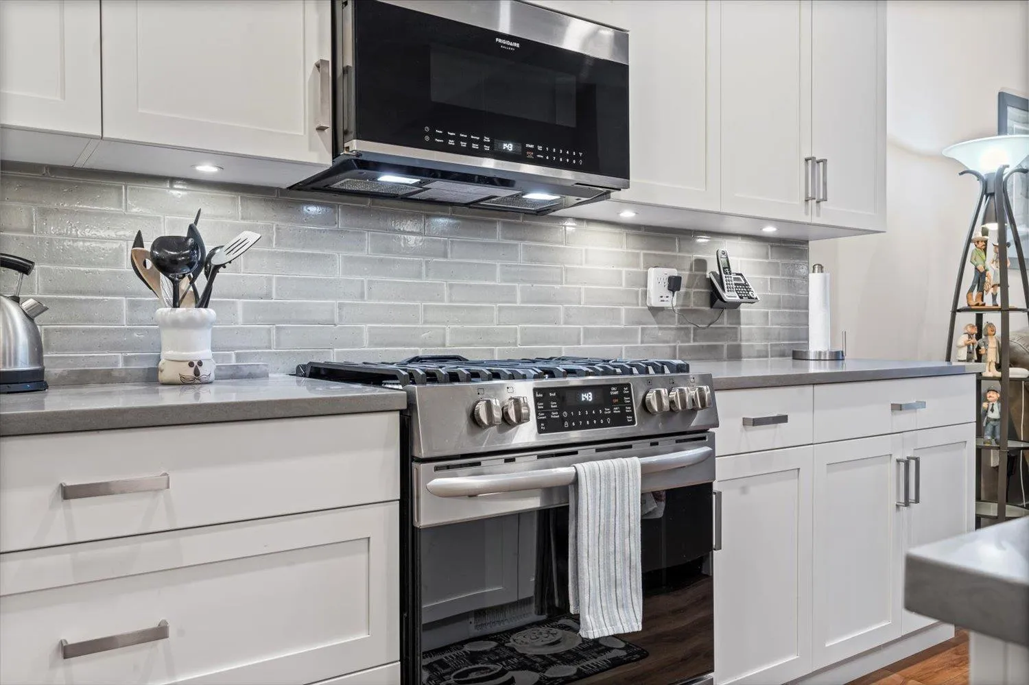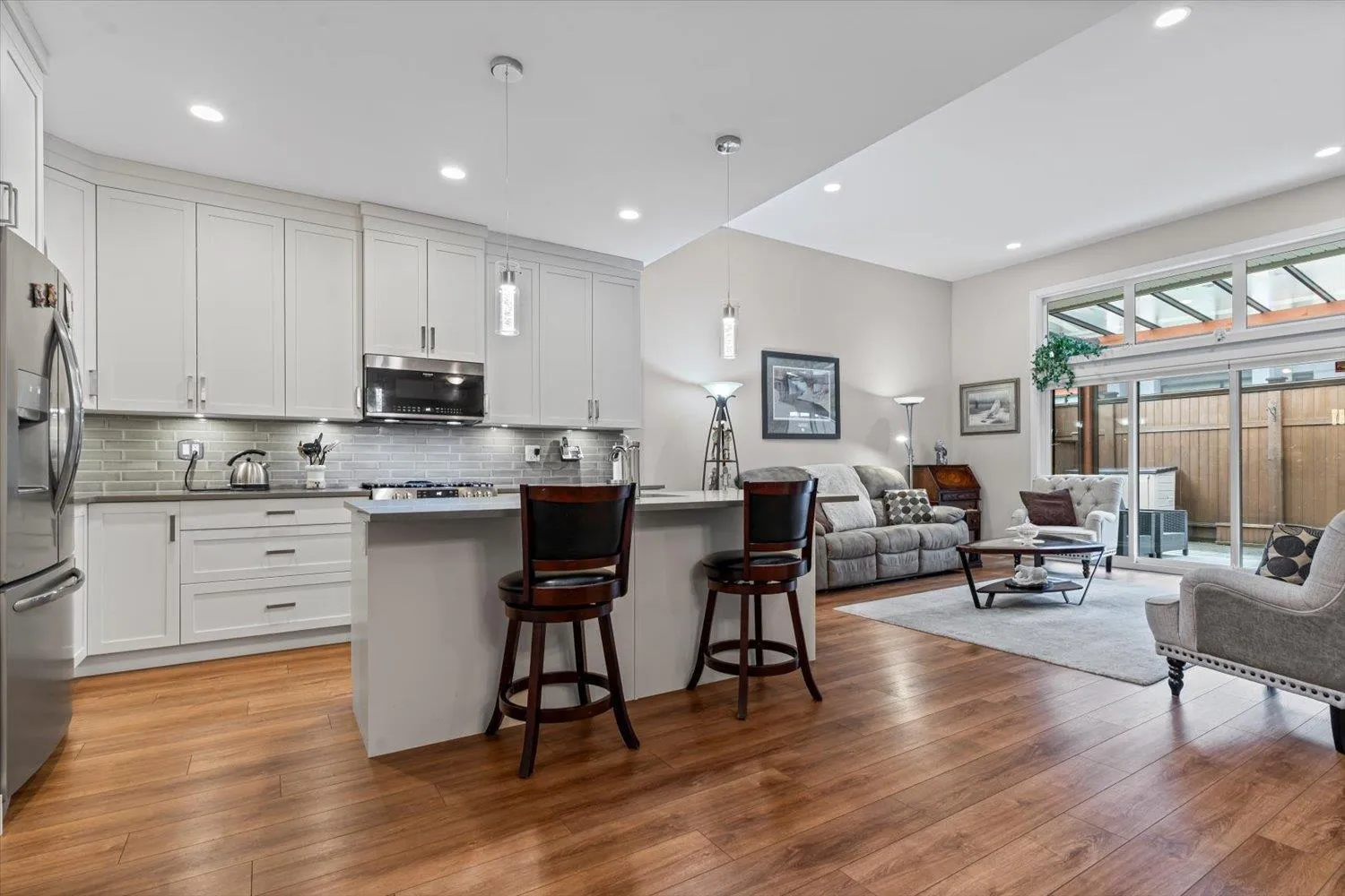 This beautiful home in Thomas Crossing a 55+ gated complex offers open-concept main floor plan w/ extended kitchen island, pantry, and S/S appliances & gas range. The primary bedroom features a beautiful 4 pc ensuite and spacious w/i closet. Downstairs you will find an additional bedroom, full bath, large rec room and extra storage. The double garage has an EV hook-up and epoxy flooring, w/ double driveway. Outside the extended patio provides an excellent setting for year-round enjoyment enhanced by a glass awning for extra light, electric patio shades, natural gas BBQ hookup, artificial turf and a fully fenced yard. The home is finished with professionally installed Gemstone exterior lighting. Land you own - not leased! Bareland strata fee $171.37/month. (id:27476)