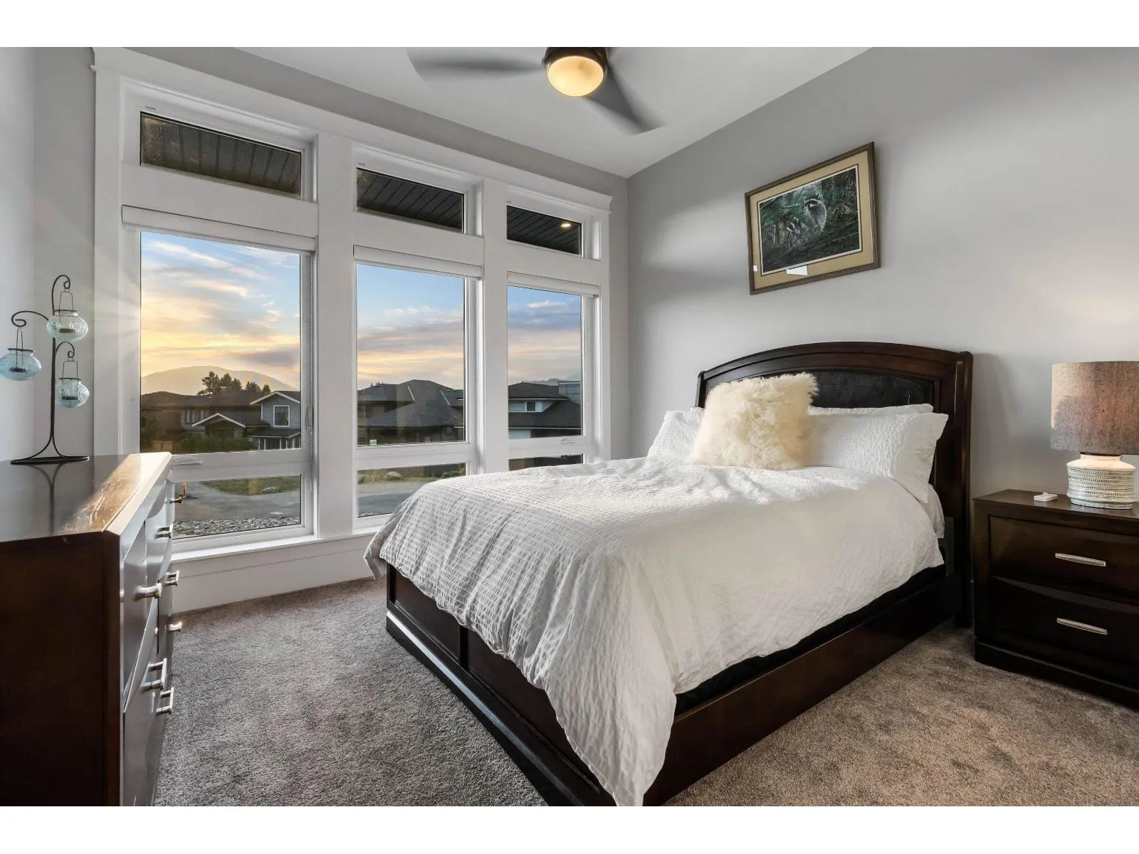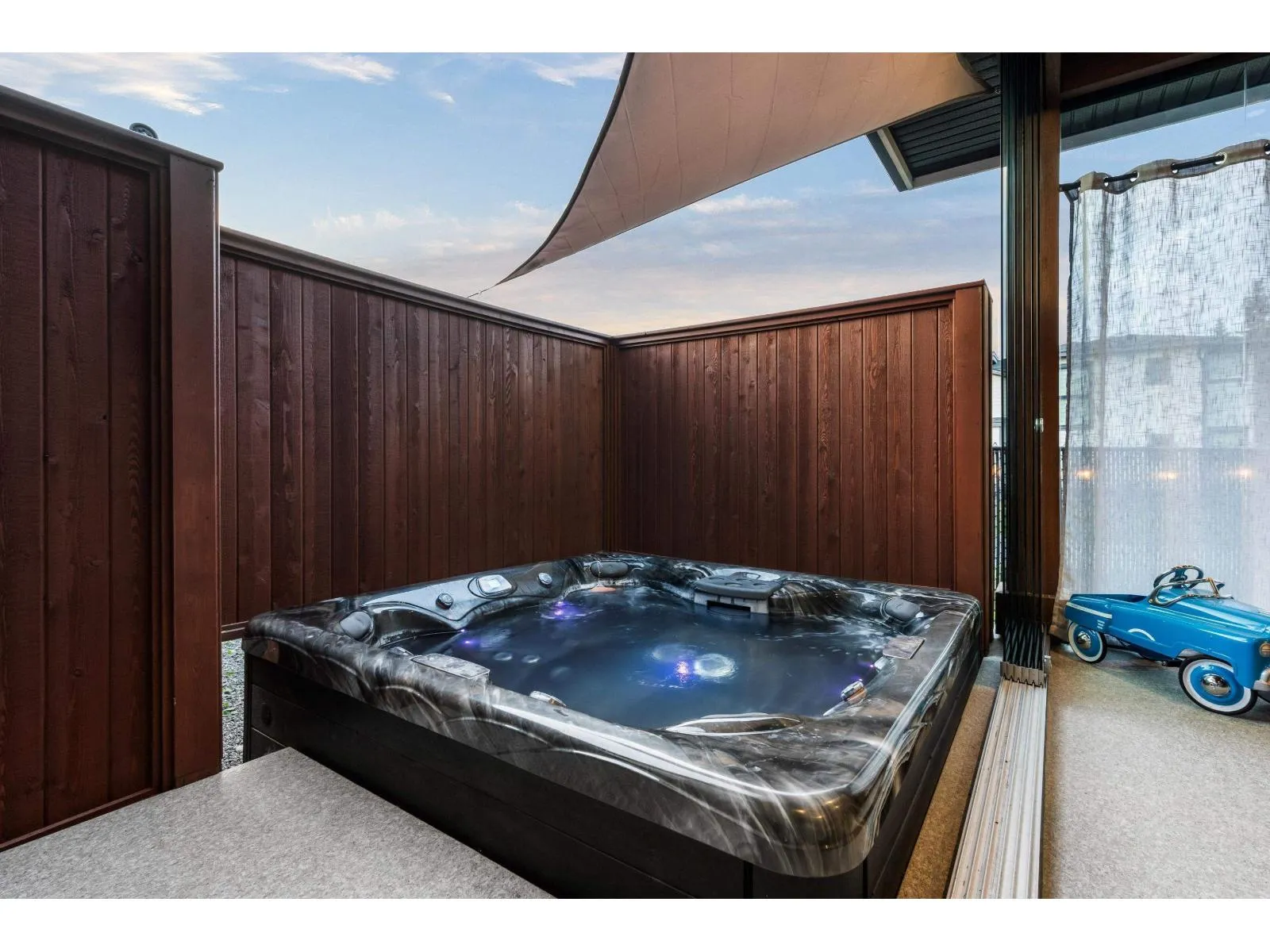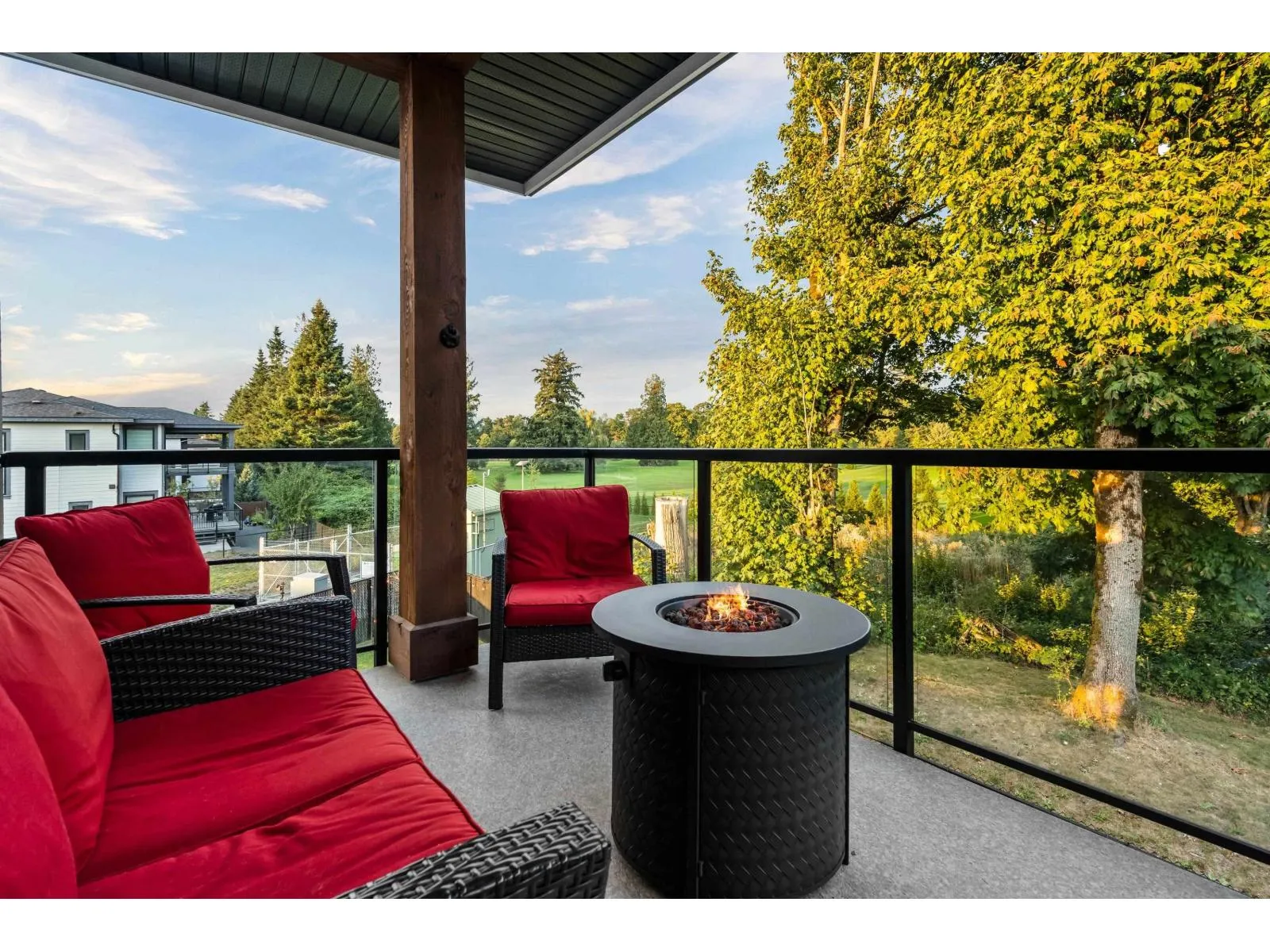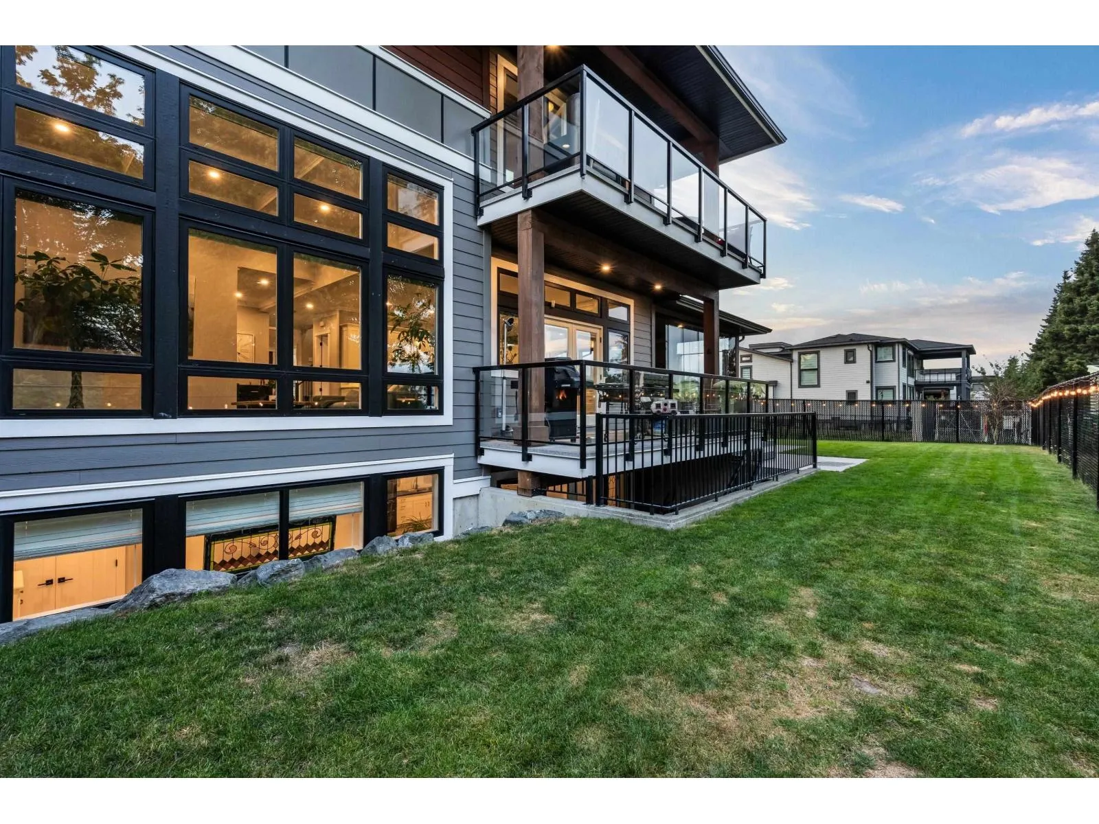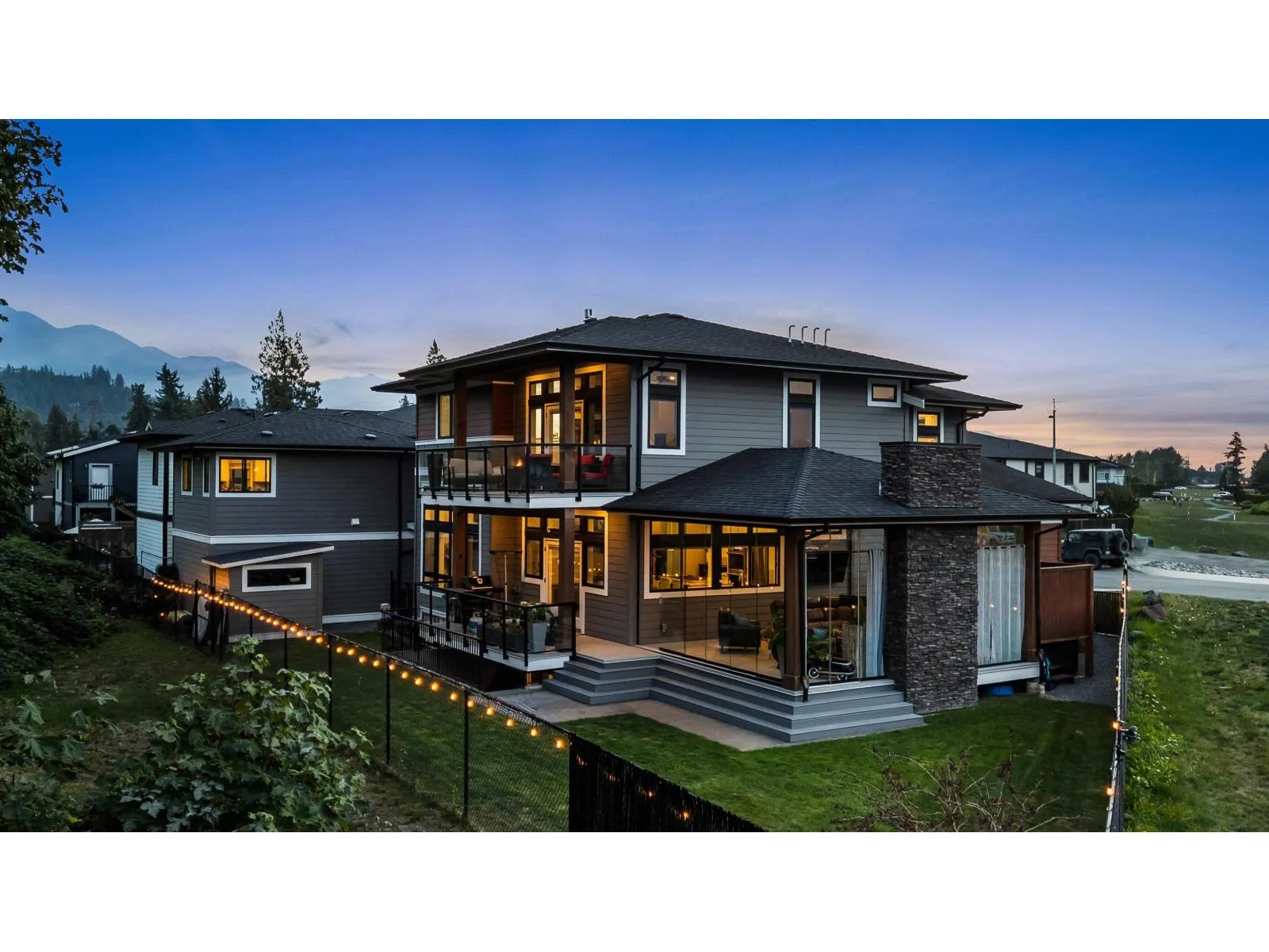 This executive custom home backs onto Kinkora Golf Course and features a chef's kitchen with high-end appliances, an oversized island, and a great room with soaring floor-to-ceiling windows that flood the space with natural light. Off the kitchen, a private enclosed patio with fireplace and hot tub creates the perfect setting for year-round entertaining. Upstairs offers four spacious bedrooms, including a luxurious primary suite with a spa-inspired ensuite, steam shower, and soaker tub, while the lower level includes a bright two-bedroom suite for in-laws or rental income. Additional highlights include a fully detached one-bedroom coach house, a double-wide lot, and a car enthusiast's dream garage, all set against unobstructed views of the golf course with no neighbours behind"-making this a rare estate-style property in one of Chilliwack's most sought-after locations. (id:27476)