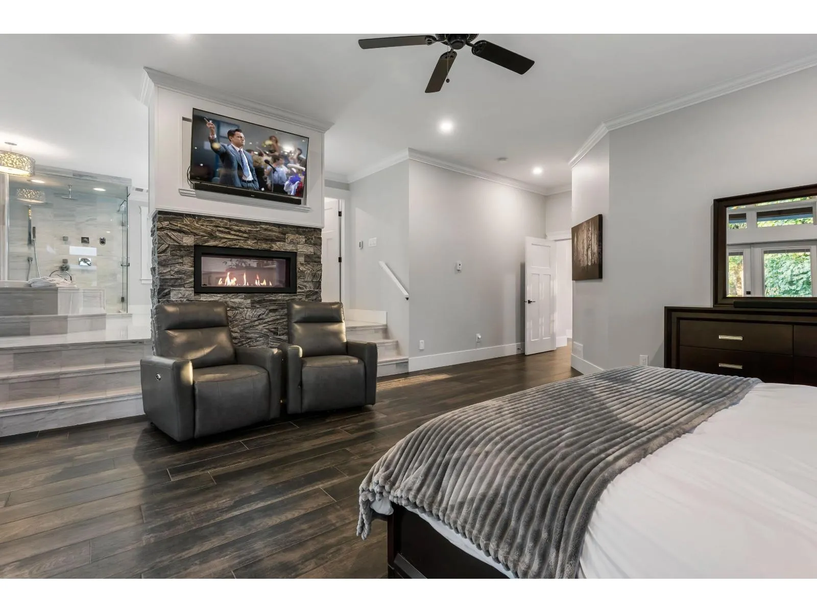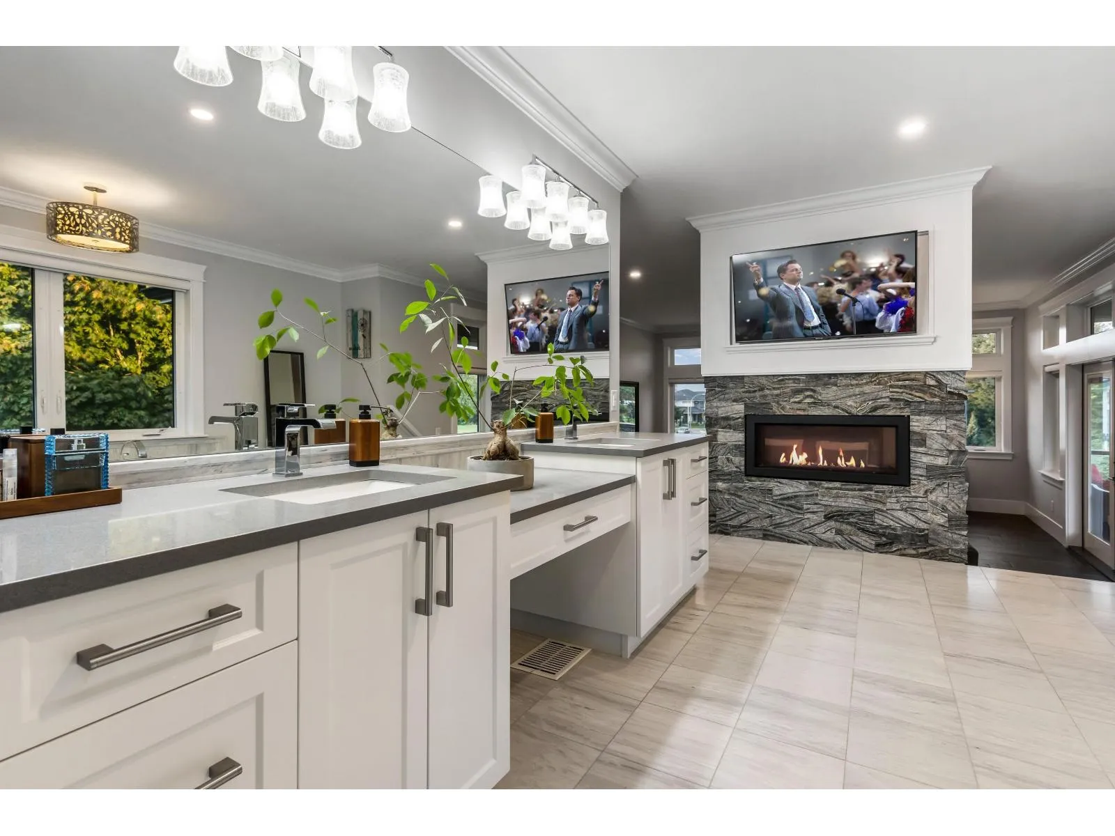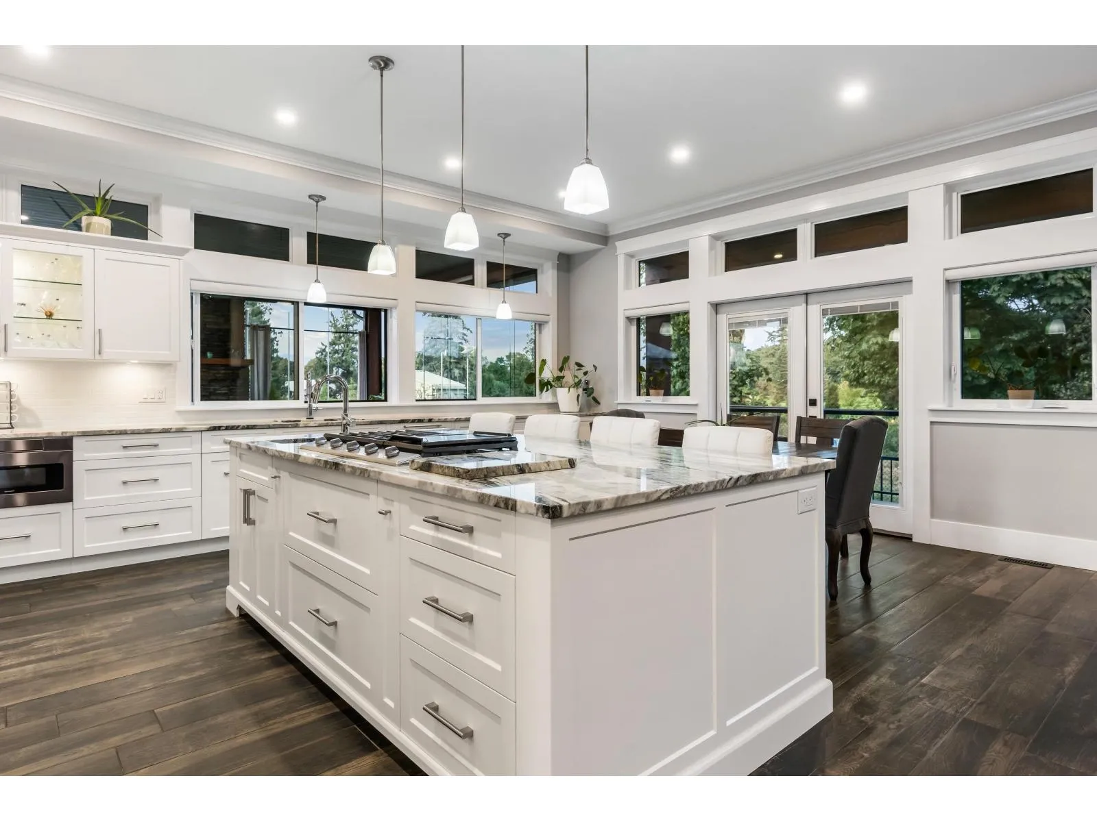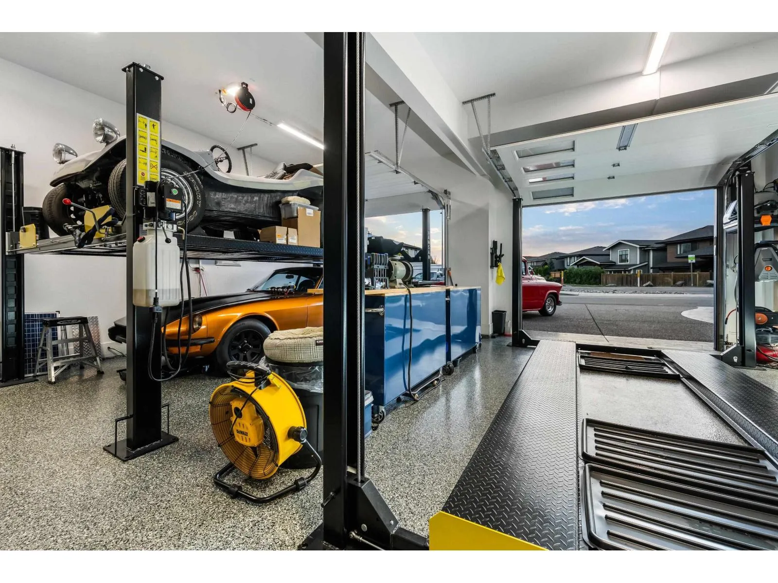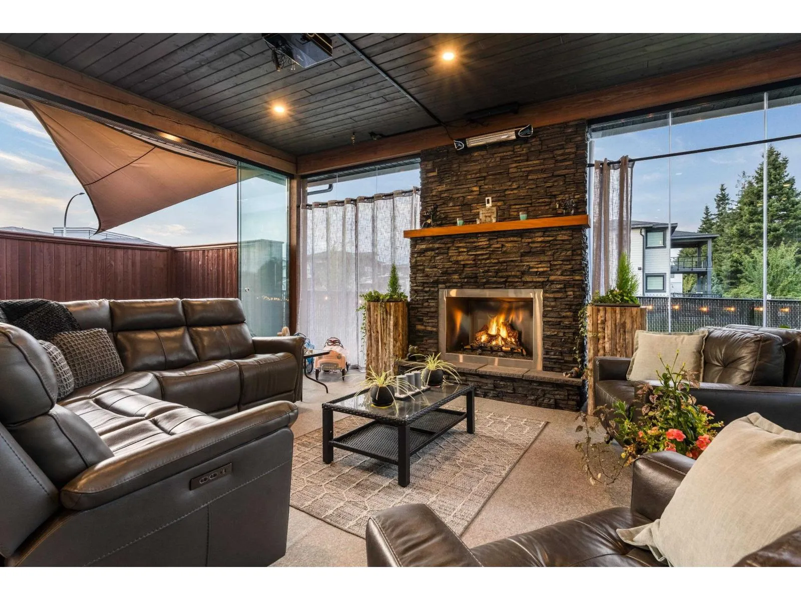 This executive custom home backs onto Kinkora Golf Course and features a chef's kitchen with high-end appliances, an oversized island, and a great room with soaring floor-to-ceiling windows that flood the space with natural light. Off the kitchen, a private enclosed patio with fireplace and hot tub creates the perfect setting for year-round entertaining. Upstairs offers four spacious bedrooms, including a luxurious primary suite with a spa-inspired ensuite, steam shower, and soaker tub, while the lower level includes a bright two-bedroom suite for in-laws or rental income. Additional highlights include a fully detached one-bedroom coach house, a double-wide lot, and a car enthusiast's dream garage, all set against unobstructed views of the golf course with no neighbours behind"-making this a rare estate-style property in one of Chilliwack's most sought-after locations. (id:27476)