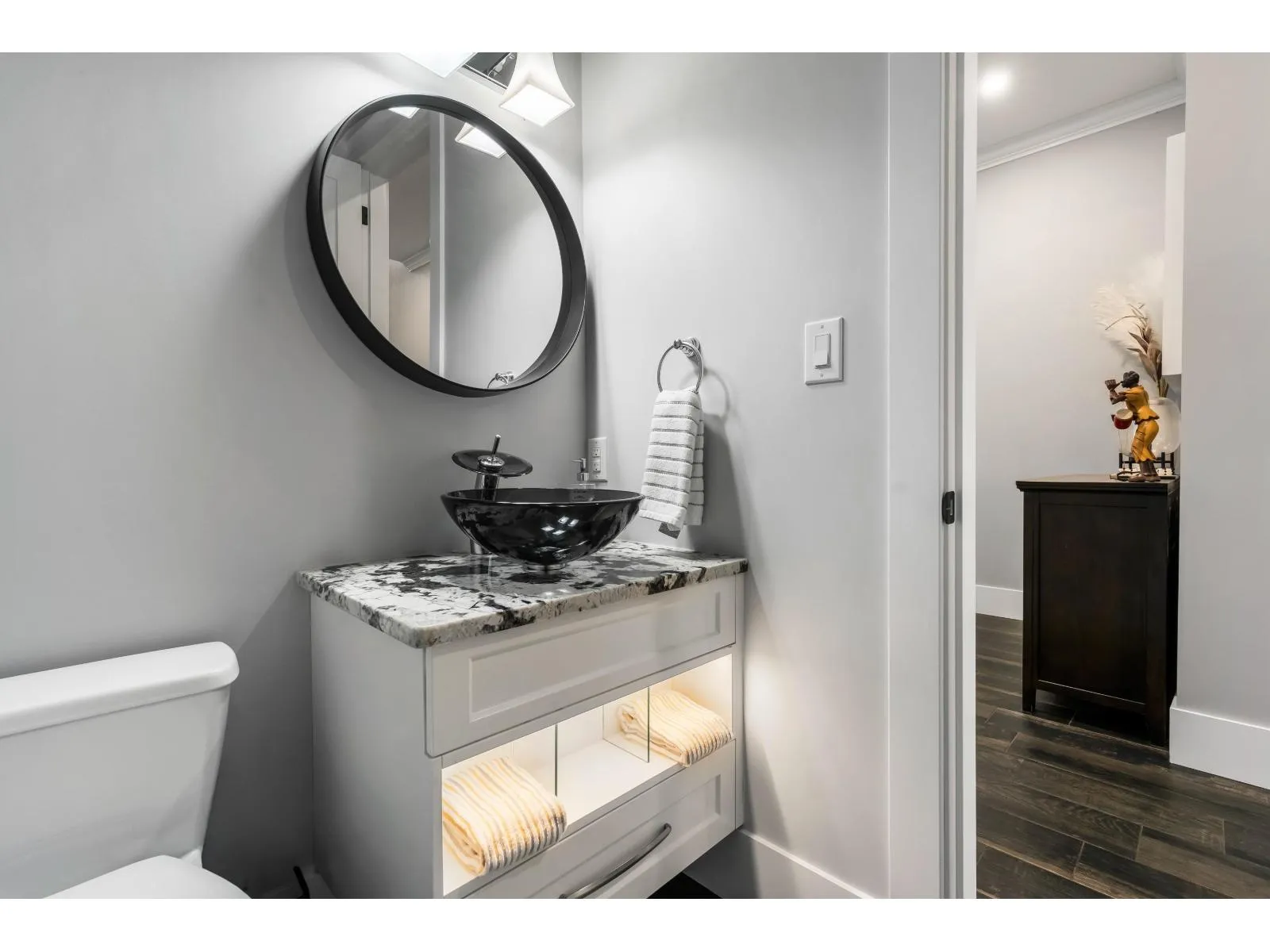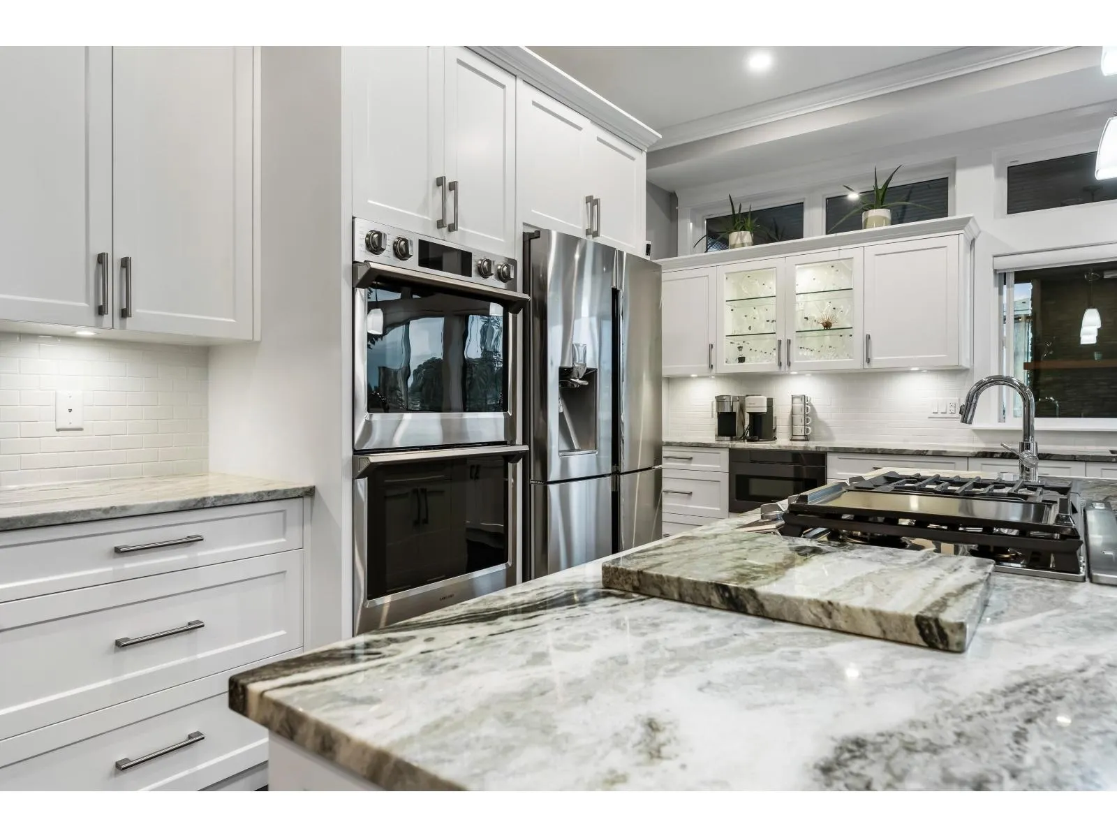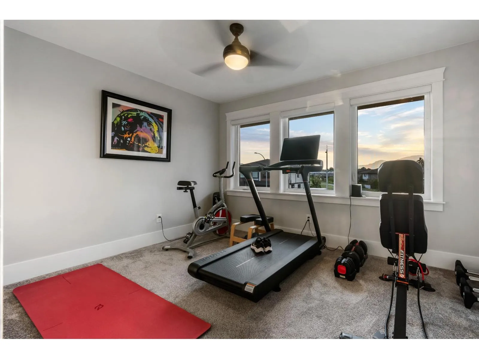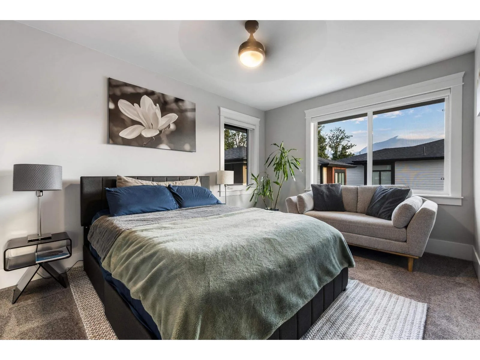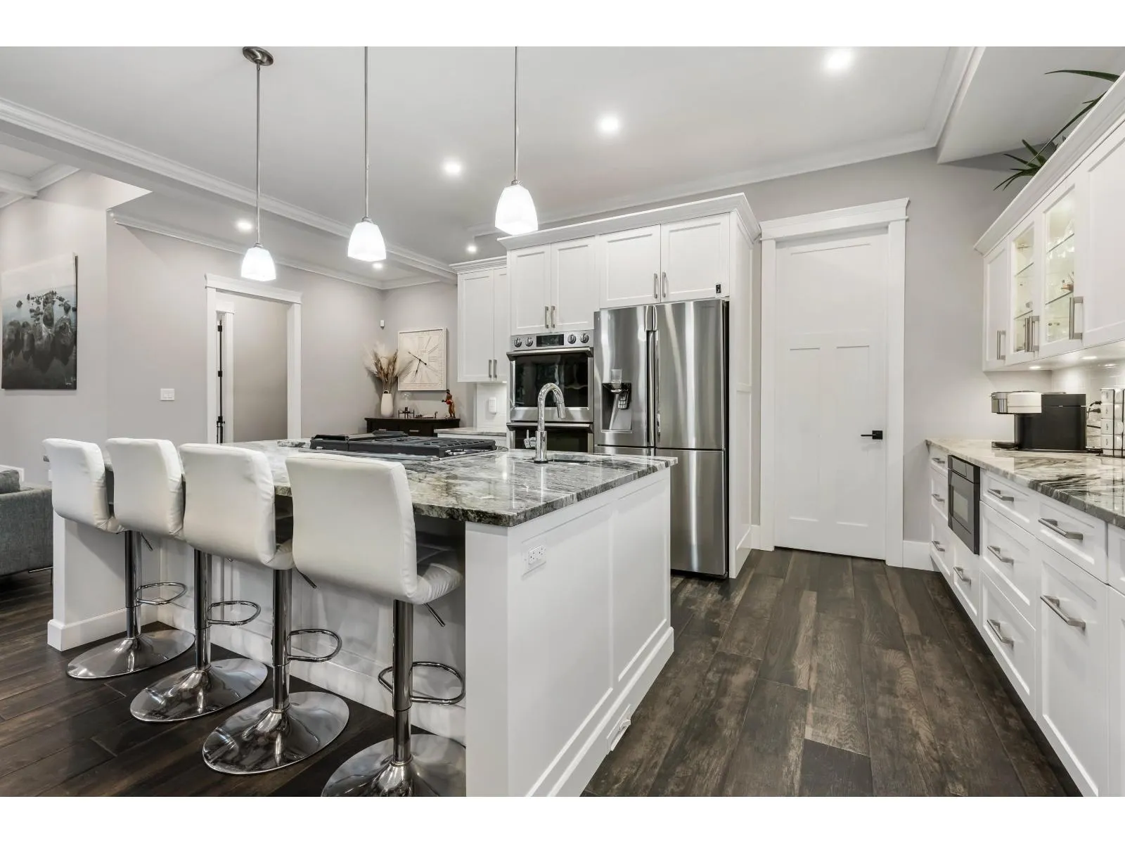 This executive custom home backs onto Kinkora Golf Course and features a chef's kitchen with high-end appliances, an oversized island, and a great room with soaring floor-to-ceiling windows that flood the space with natural light. Off the kitchen, a private enclosed patio with fireplace and hot tub creates the perfect setting for year-round entertaining. Upstairs offers four spacious bedrooms, including a luxurious primary suite with a spa-inspired ensuite, steam shower, and soaker tub, while the lower level includes a bright two-bedroom suite for in-laws or rental income. Additional highlights include a fully detached one-bedroom coach house, a double-wide lot, and a car enthusiast's dream garage, all set against unobstructed views of the golf course with no neighbours behind"-making this a rare estate-style property in one of Chilliwack's most sought-after locations. (id:27476)