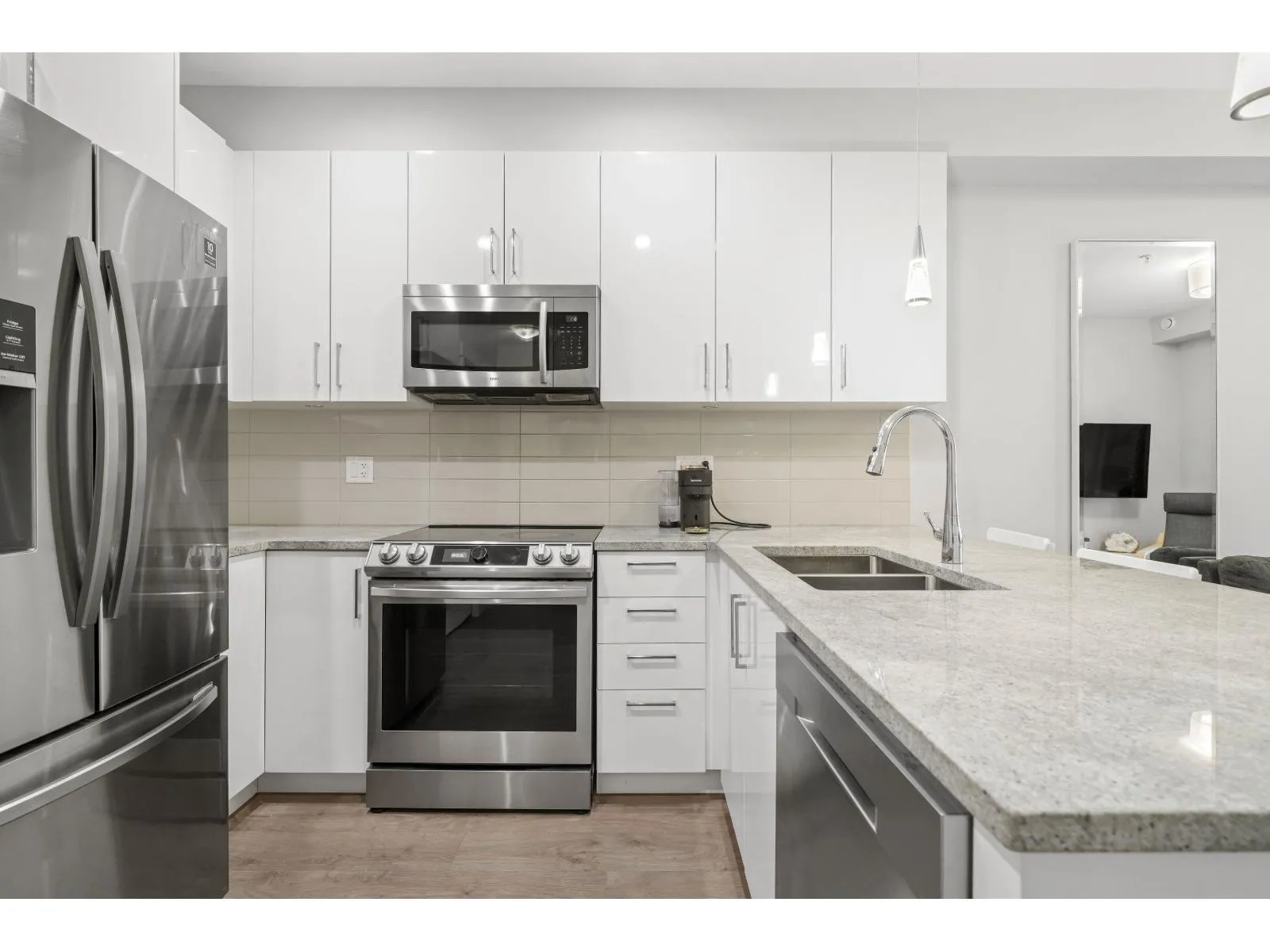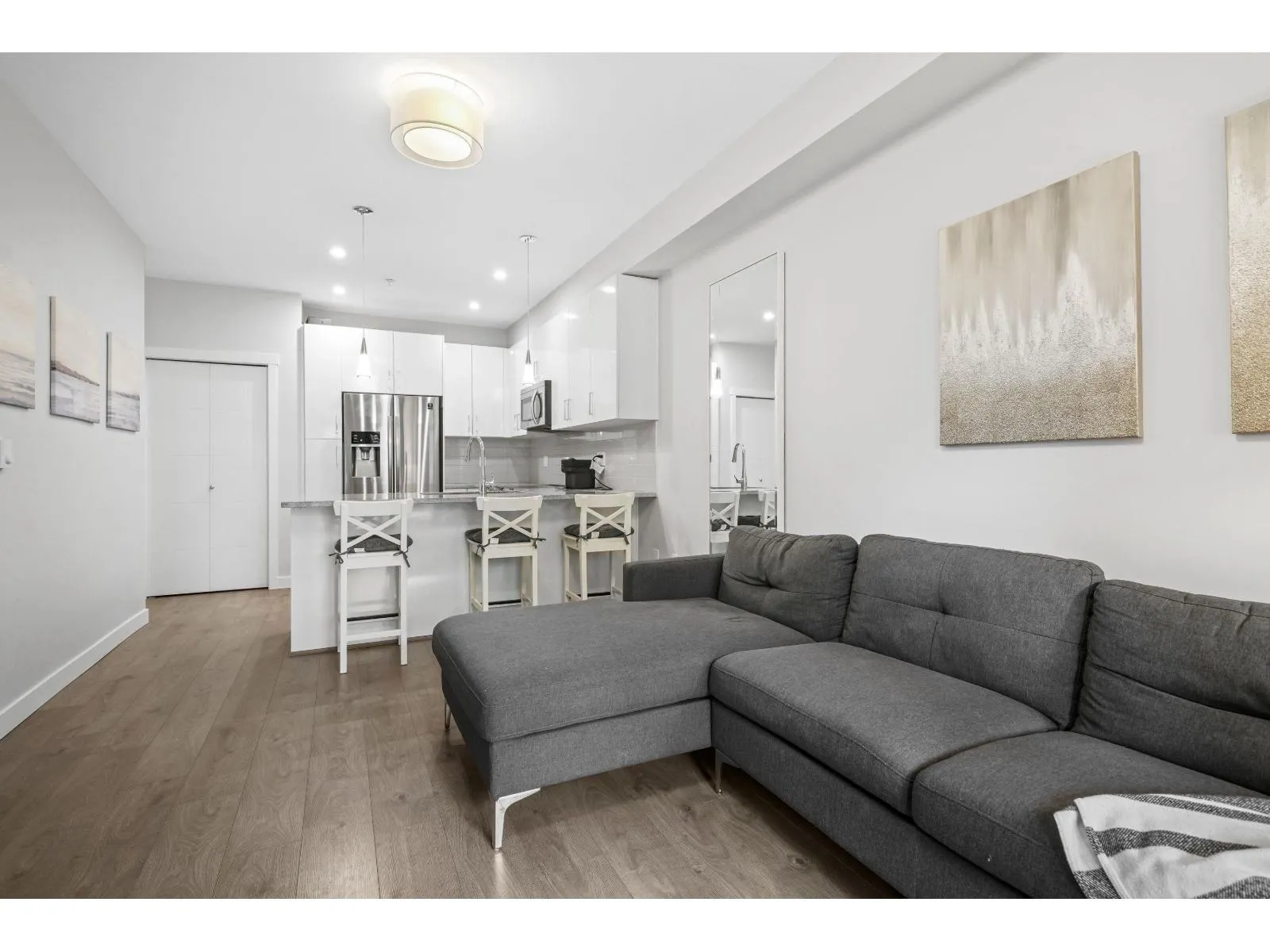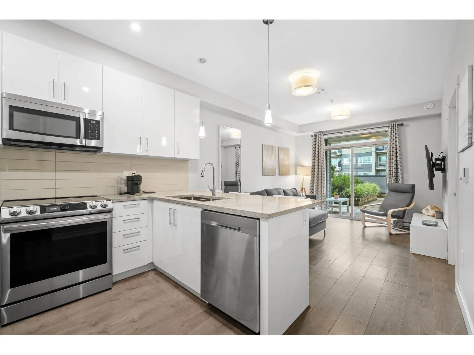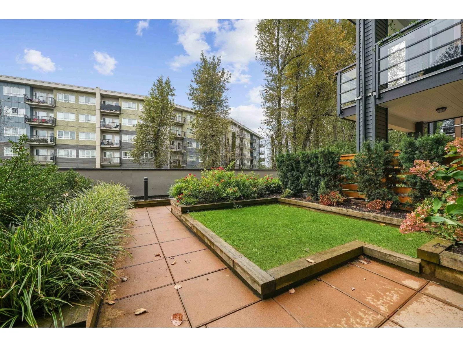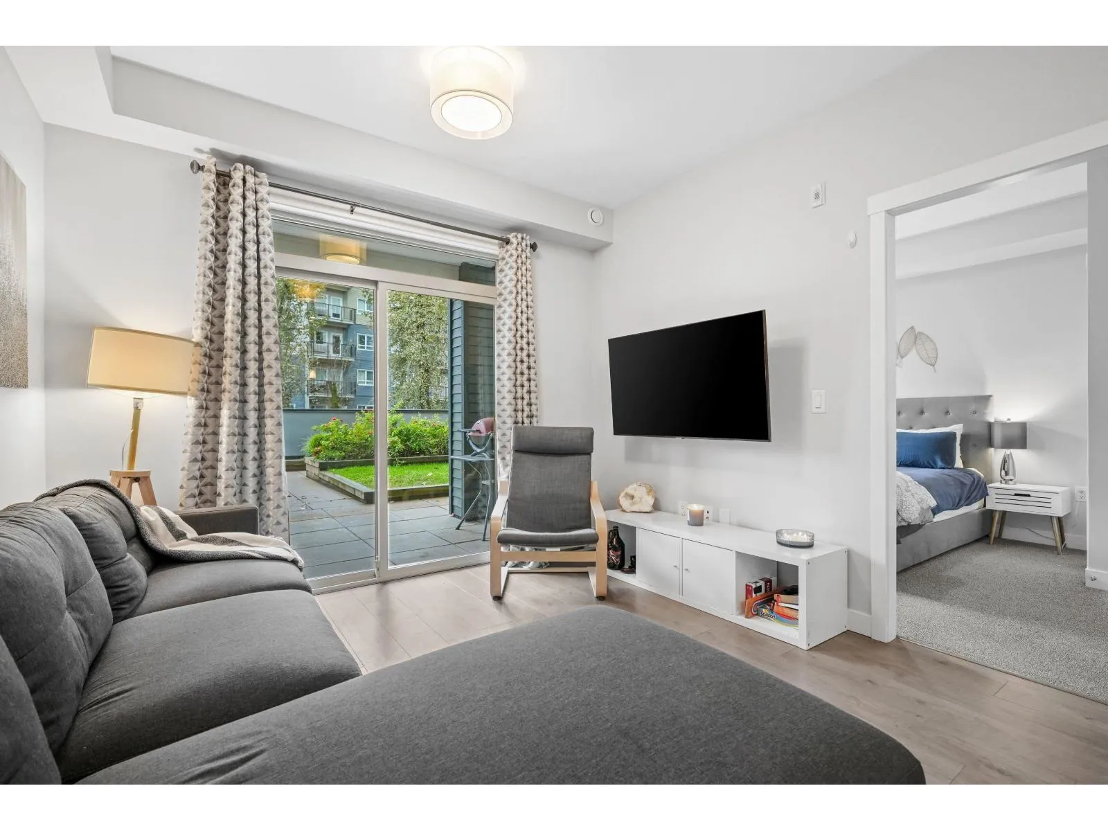 YOUR OWN YARD!!!! The Elliott! This bright, south facing 1 bed home sits on the desirable second floor and features a rare walk-out garden patio perfect for barbecues, entertaining, or enjoying your plants and pets in the sunshine. Inside, the unit is spacious and well laid out. It comes with 2 parking stalls and a double-sized storage locker conveniently located on the same floor. Just minutes from schools, the university, 1881 District, shopping, transit, and highway access, the location couldn't be more ideal. Currently rented furnished at $1,840/mo, this property makes an excellent investment opportunity, or a wonderful home. Garden patio suites at The Elliott are a rare find available only on the second and top floors offering long-term value and strong holding power. Don't miss out! (id:27476)