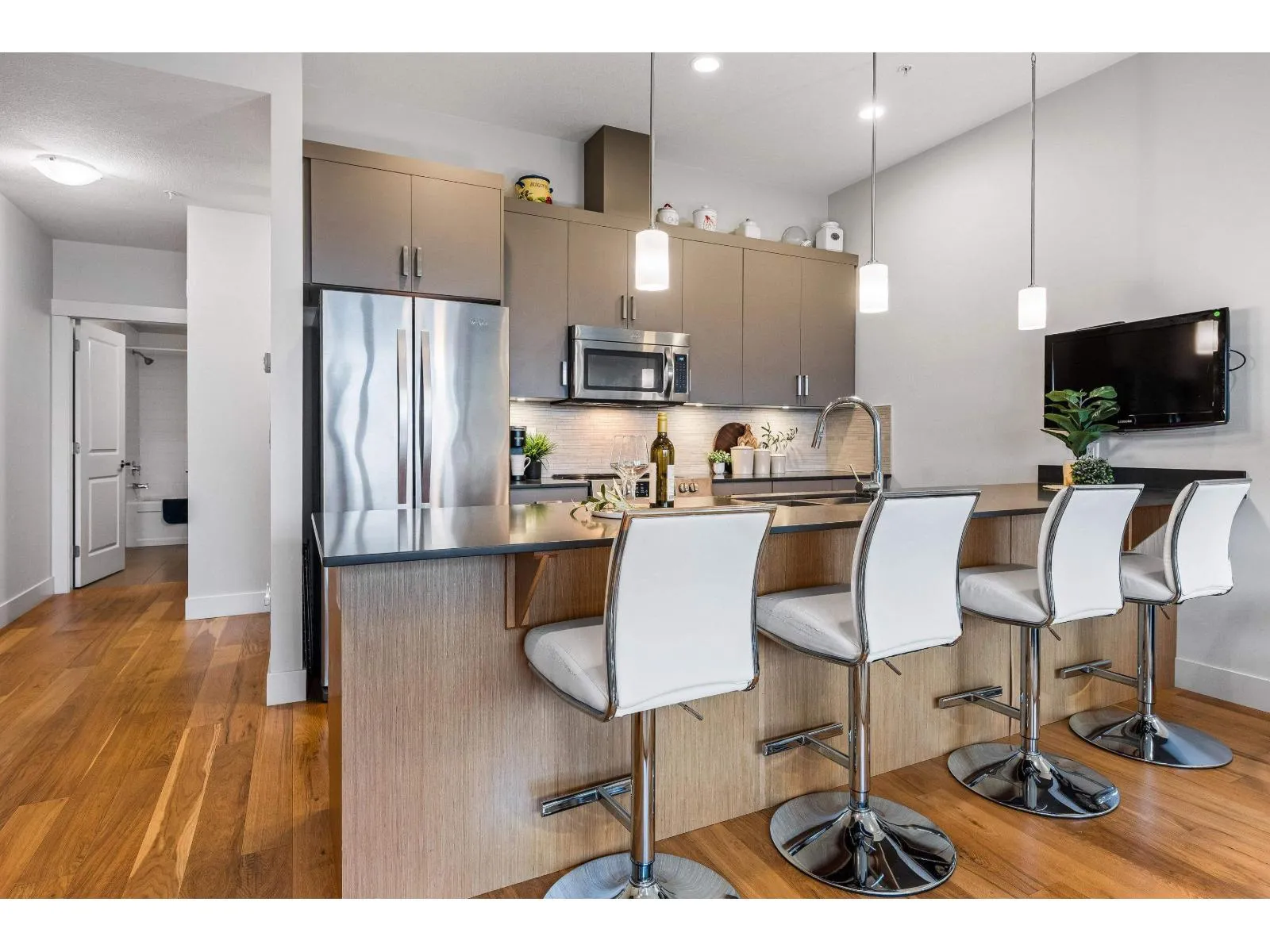 BEAUTIFUL 2,503 sq. ft. ground-level walkout 2 bed, 2 bath townhouse situated on the first fairway at The Falls Golf Course! This IMMACULATE original-owner home showcases hardwood floors, soft-flow cabinets, quartz countertops, and stainless steel appliances. Enjoy two SPACIOUS living rooms, a full dining room, and a fully equipped billiards room! A rare private in-home elevator provides EXCEPTIONAL convenience and accessibility. Truly single-level living at its finest in a pristine, one-of-a-kind property. This is the PERFECT blend of elegance, accessibility, and premier golf course living - your next chapter starts here! * PREC - Personal Real Estate Corporation (id:27476)