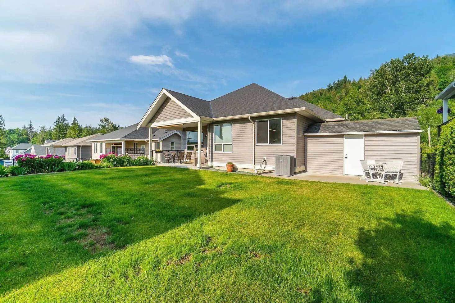 Elk Creek Estates known for its family-friendly atmosphere, this modern home offers a perfect blend of style, comfort, and functionality, providing an ideal living space for families seeking a contemporary lifestyle. 5 Bed 3 bath (3 up 2 down) and large rec area below with possibility to suite w/ separate ent. Kitchen seamlessly flows into the inviting dining area, making it perfect for hosting family gatherings or entertaining friends. Double bay garage with an extra 3rd bay garage for the smaller toys. RV parking in the front. Central vac. Flat level, fully fenced backyard for the kids/pets to enjoy. (id:27476)