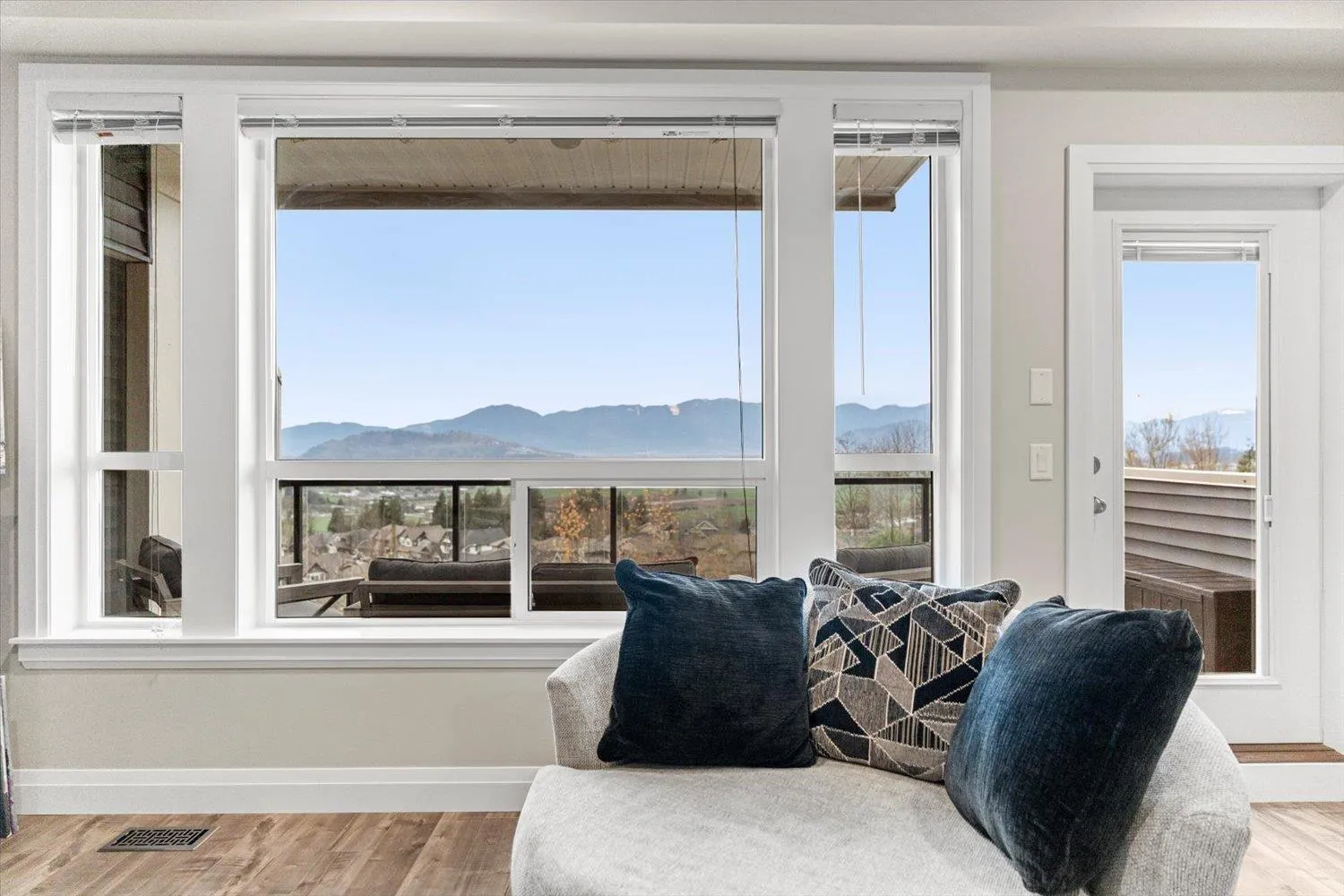 Discover this beautifully maintained 3-bedroom, 3-bathroom end-unit townhouse in the highly sought-after Hillcrest Lane. This 3-storey home offers unbelievable panoramic views, a smart and comfortable layout, and quality finishes throughout. The main floor features an open-concept living area with a gas fireplace, stone countertops, a bright kitchen, and access to both a spacious balcony and the low-maintenance yard. Upstairs are three generous bedrooms, including a well-appointed primary suite with its own private upper balcony showcasing stunning valley views. Downstairs, the entry level includes a versatile flex space currently set up as a home gym, along with a double garage and full driveway for excellent parking. Priced well and move-in ready. Call today for your private tour. * PREC - Personal Real Estate Corporation (id:27476)