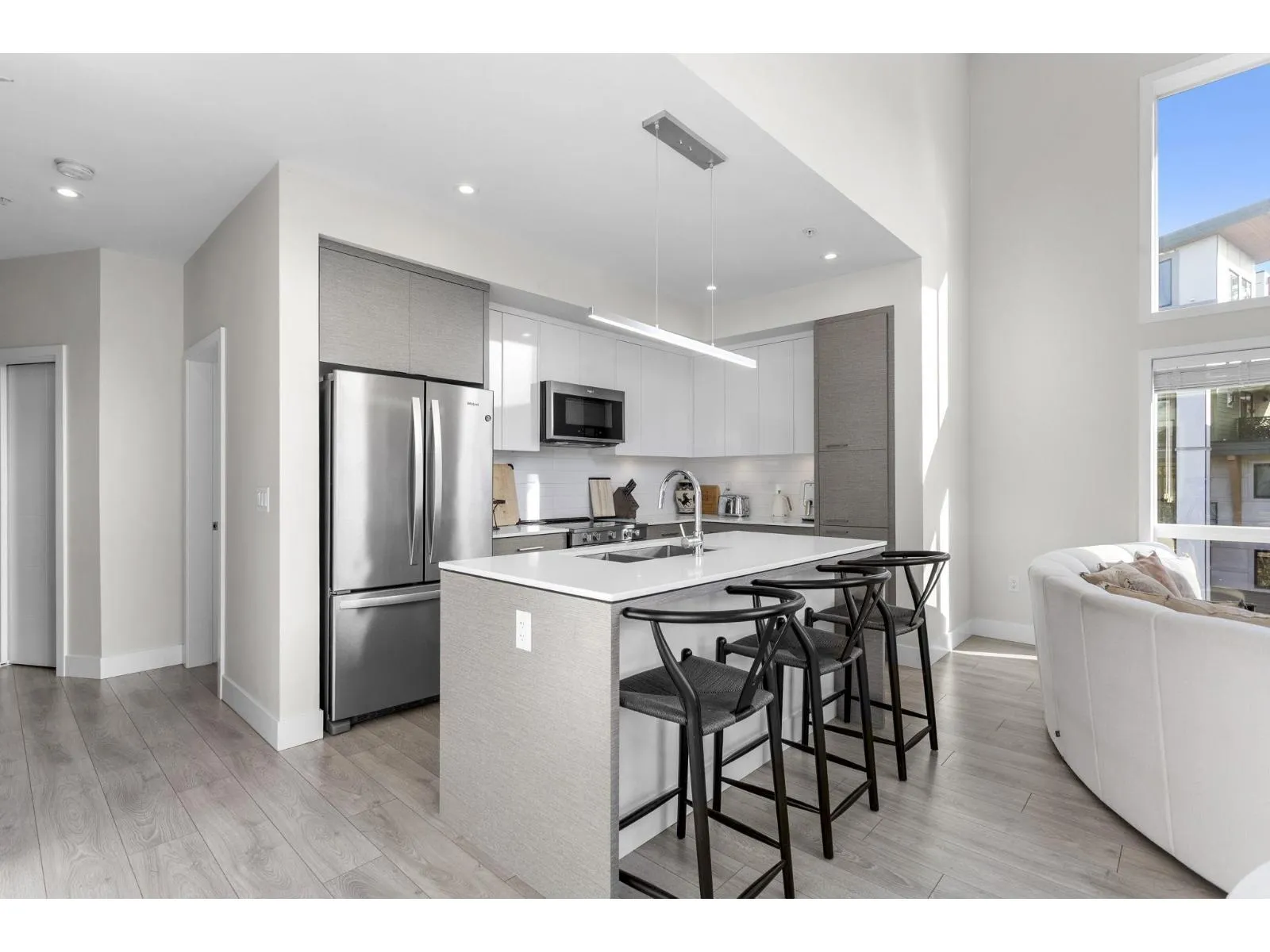 VIEWS Abound in this Stunning & Architecturally interesting 3 bedroom home located in the Master Planned Community of Garrison Crossing with Privacy & 360 Mountain Views + many Large Windows for an abundance of Natural Light. Gourmet Kitchen boasts Gorgeous Cabinets, Stone Counters, Big Island & S/S Appliances. Luxury Flooring flows through Dining Room & Living Room W/ Cozy Fireplace + Enjoy the Outdoors on your Large Deck perfect for alfresco dining or coffee in the morning. 2 Parking + 2 Storage Lockers. Everything walkable; Vedder River, Rotary Trail, Leisure Center, Shops, Pharmacy, Grocery, Coffee Shops, Restaurants, & Pilates Carefree lifestyle & only 5 min Drive to Top Notch Schools. PETS WELCOME. *****OPEN HOUSE SUN DEC 7 from 2:00 - 4:00PM (id:27476)