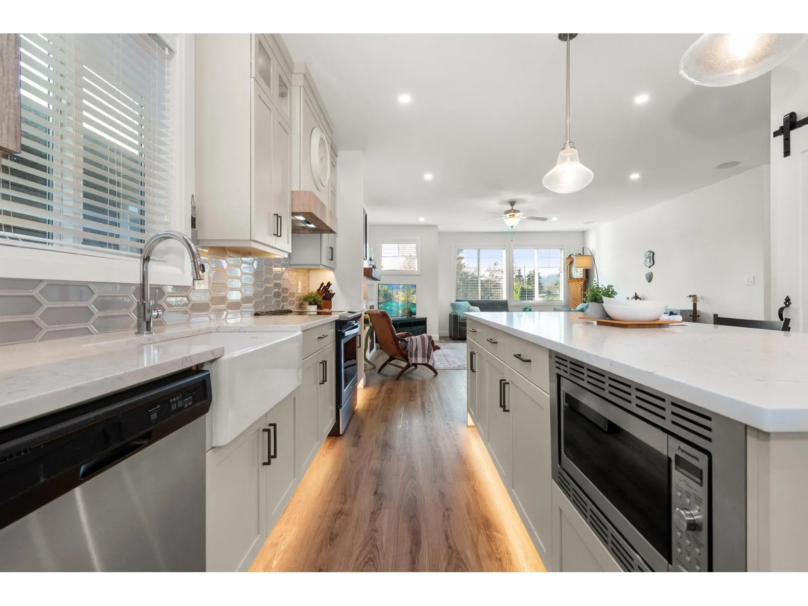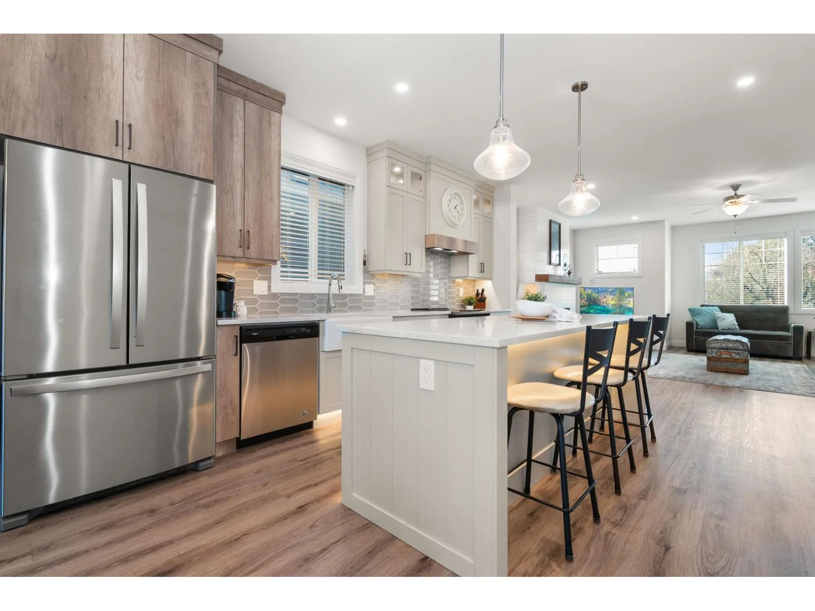 Welcome to this beautiful 5 Bedroom basement entry home in desirable Fairfield Island, located across from Gwynne Vaughan Park and close to schools and shopping. The main floor offers an open concept layout with a modern kitchen featuring quartz counters and stainless steel appliances, plus three bedrooms including a primary with a walk-in closet and ensuite. Features include 9' ceilings, A/C, built-in speakers, gas fireplace, under-cabinet lighting, and a BBQ hookup on the spacious patio. The basement includes a large foyer, an office, a den off the garage, and a bright 2-bedroom suite with its own entrance and laundry. Enjoy a private fenced yard with Mt. Cheam views, a double garage, and a low bareland strata fee of $105/month. (id:27476)