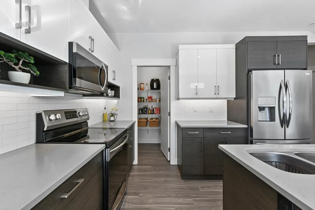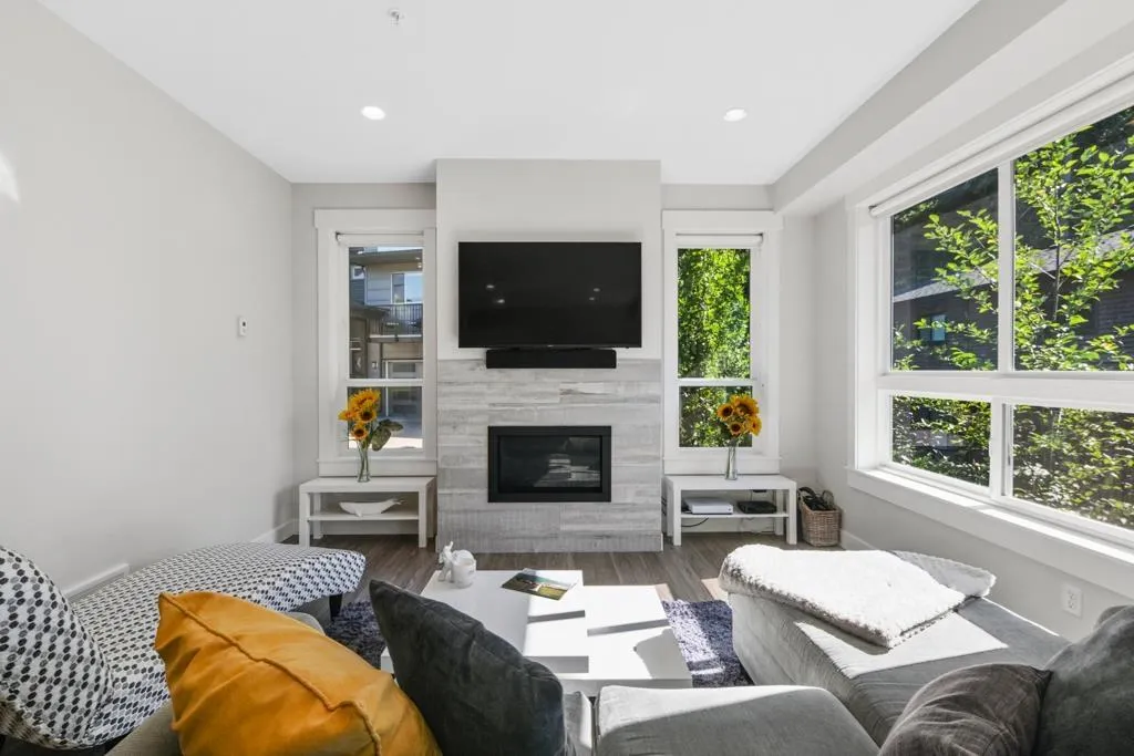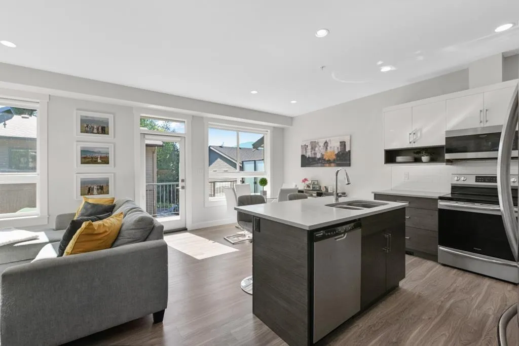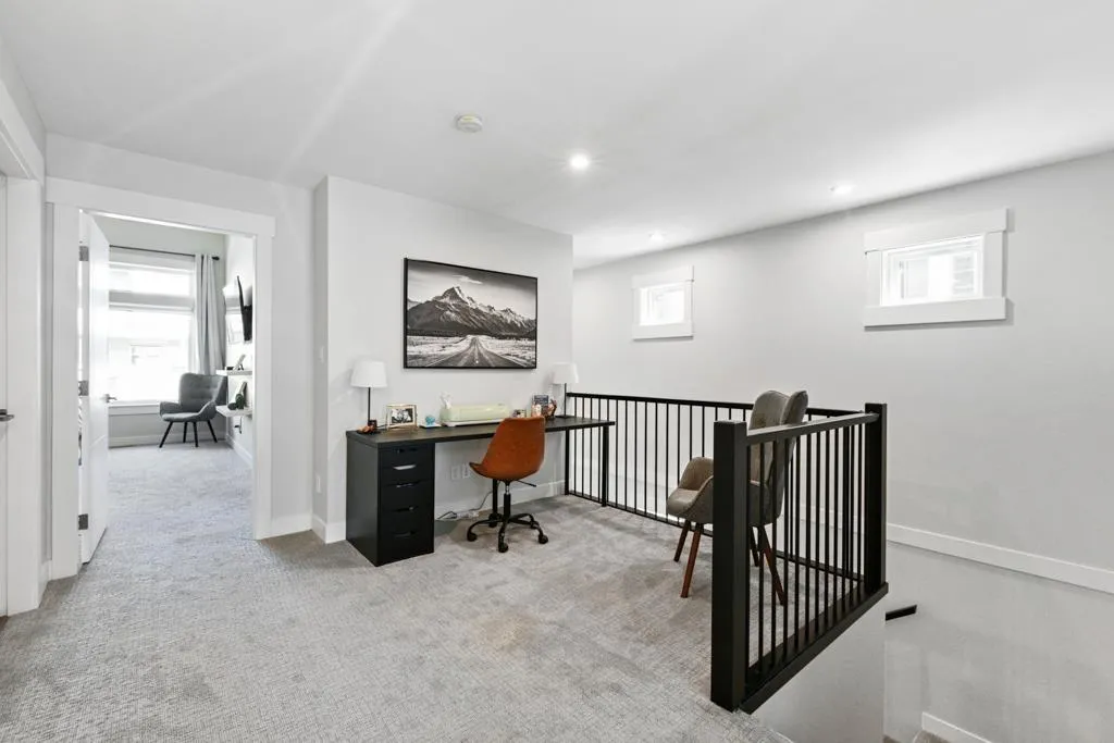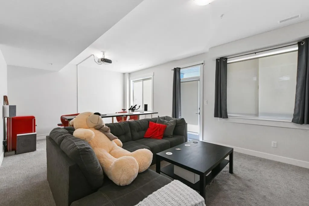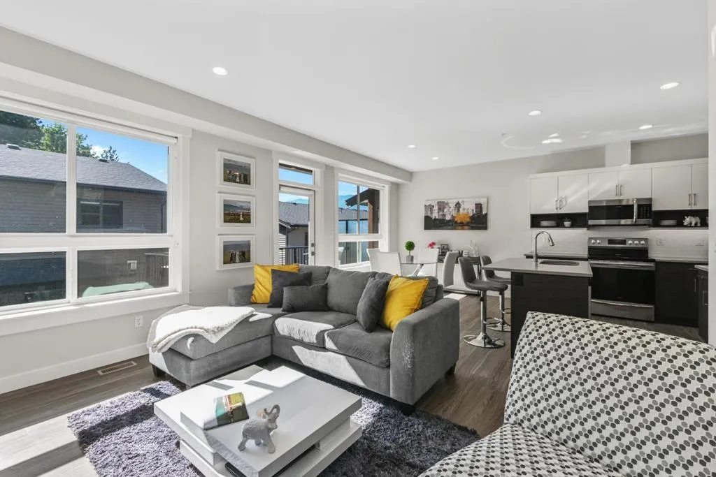 LOCATION LOCATION LOCATION. This home is not only modern, but it also has a wonderful floor plan allowing the home to be very spacious. This END UNIT 3 bed, 3 bath home features central AC, modern kitchen with white cabinetry, quartz countertops, an island, good sized pantry, and large windows making the home very bright with an abundance of natural light. Upstairs features a large Primary Bedroom with w/i closet, a beautiful ensuite, and 11 ft ceiling, large laundry room, a flex area (could be office), and 2 good sized bedrooms. Downstairs features a huge recroom with projector and surround sound, and ample storage. Covered patio and large sundeck with natural gas hookup. Easy freeway access but away from all the city noise. Hurry on this one! (id:27476)