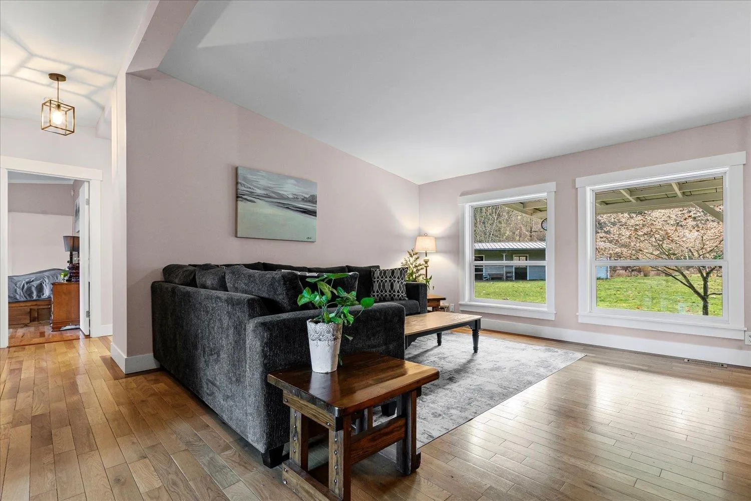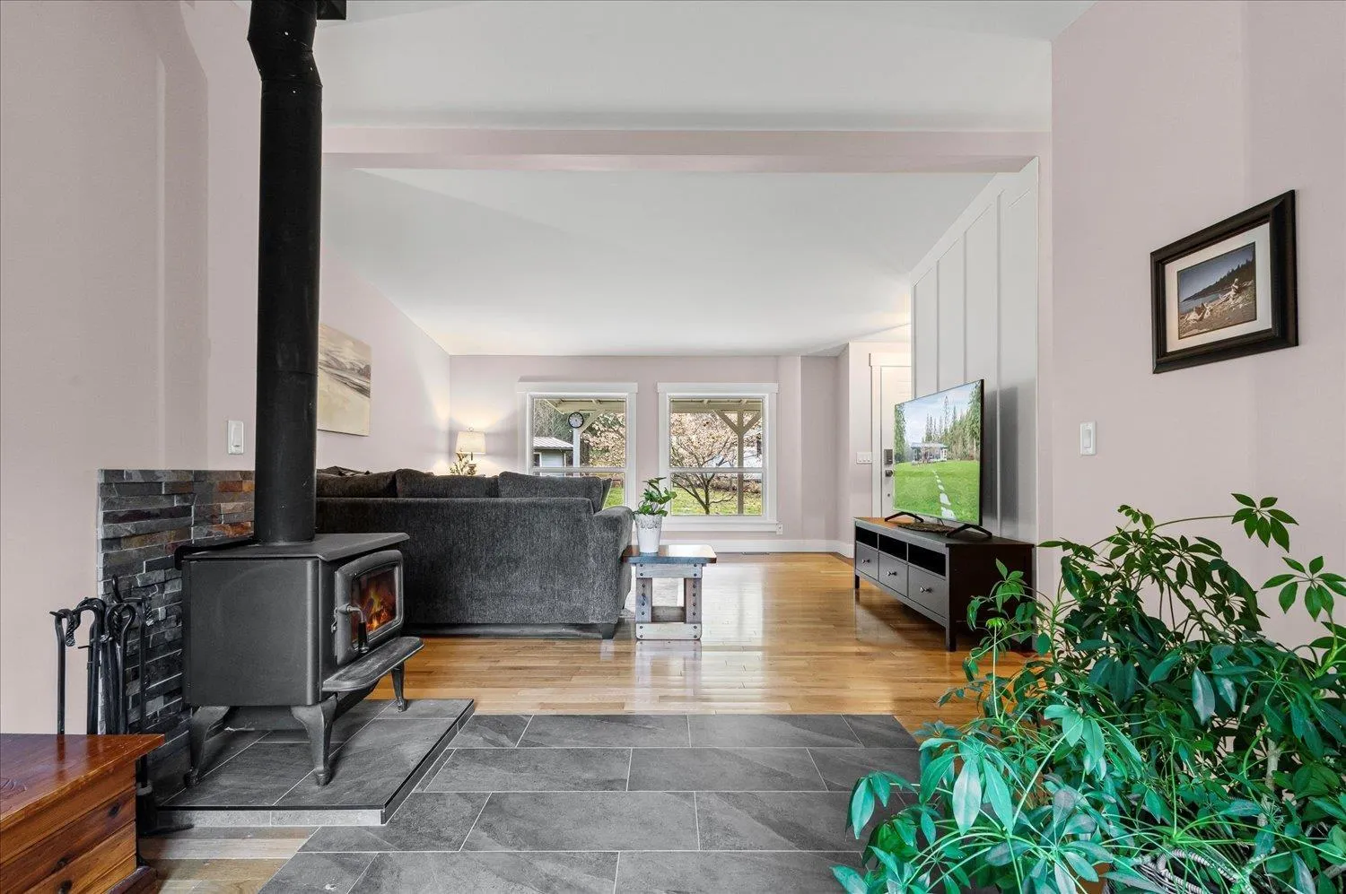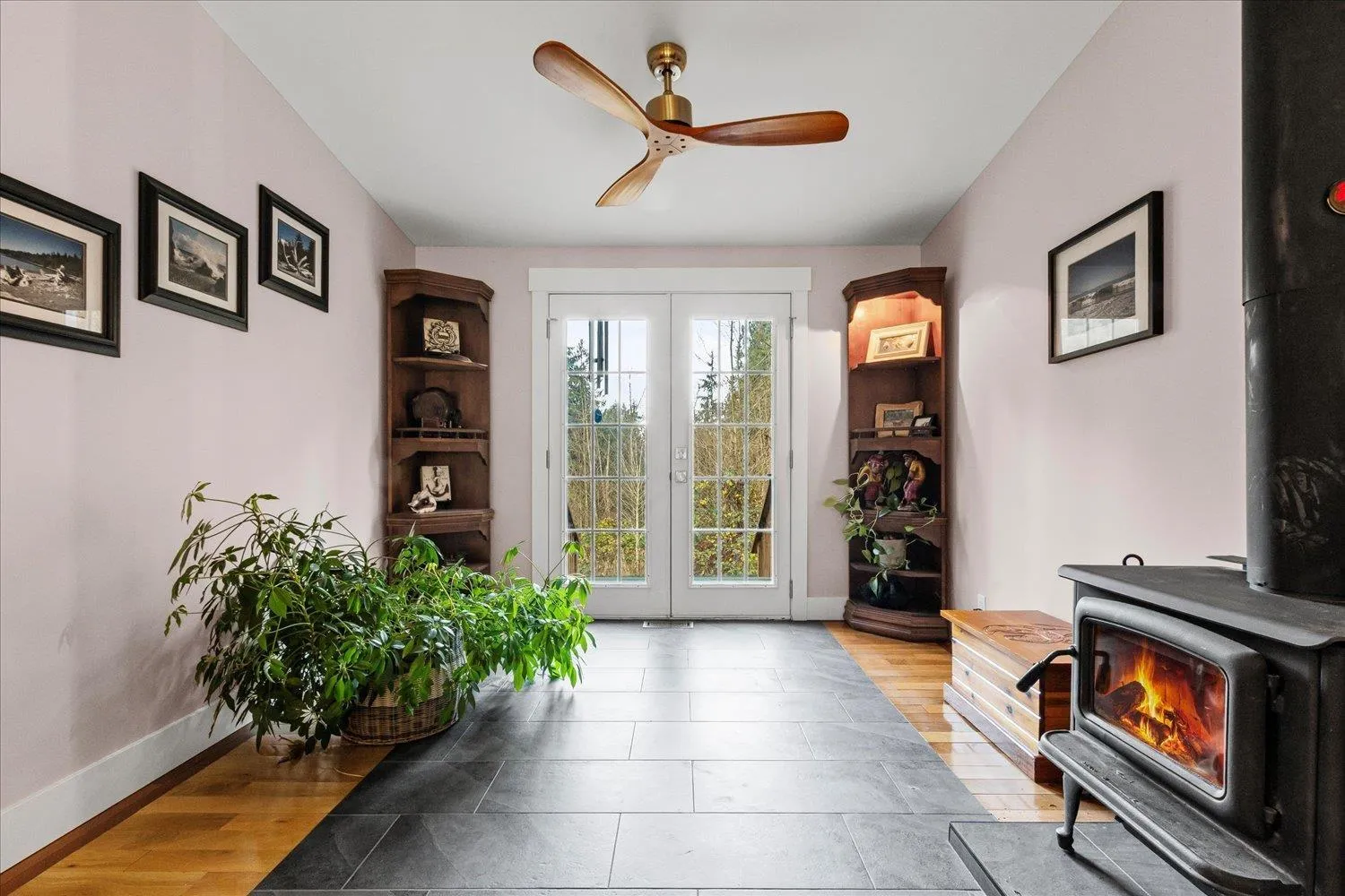 Private rural acreage just 15 minutes from downtown Chilliwack! This beautifully updated property offers a deluxe remodelled manufactured home surrounded by mature landscaping, a pony shed, and a shop"-perfect for those seeking peaceful country living with modern comforts. Inside, you'll find vaulted ceilings, oversized windows, hardwood floors, a wood-burning stove, and French doors leading to a private back deck with hot tub. Major 2023 upgrades include a 100-year metal roof on the home & shed, Hardi-Plank/Nexstone exterior, new gutters with underground drainage, updated ceilings, fresh paint, new flooring, trim, and lighting. Recent improvements include new water pumps and filtration system, new electric furnace, and high-end electric stove. A rare move-in-ready acreage! (id:27476)