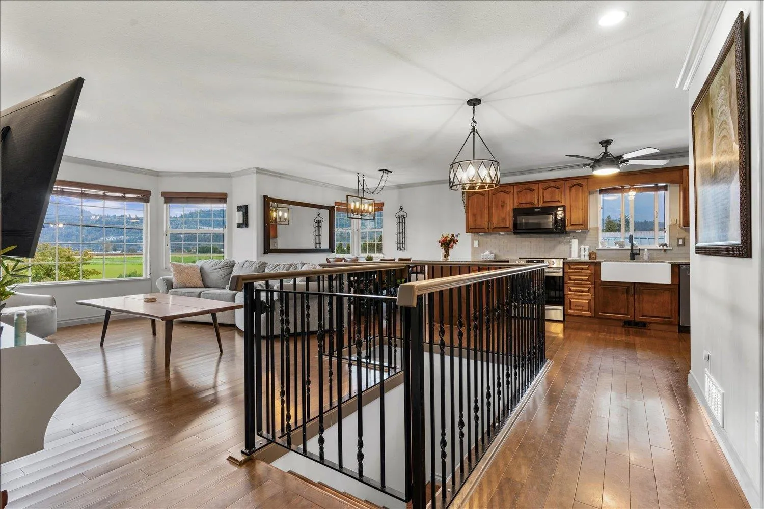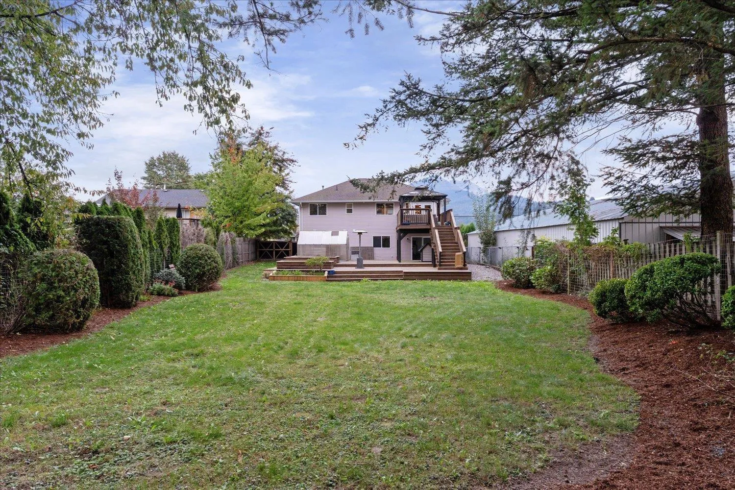 Tucked away on a spacious 0.30-acre lot in Sardis and outside the floodplain, this beautifully refreshed 5-bedroom, 3-bathroom home offers space, privacy, and thoughtful upgrades throughout. The kitchen is both stylish and functional with quartz countertops, stainless steel appliances, and a tile backsplash, flowing seamlessly into a generous dining area and an inviting living room. Hardwood floors, a striking stone fireplace, custom railings, and oversized windows bring warmth, character, and mountain views into the heart of the home. Unwind in the spa-like main bathroom featuring a deep soaker tub, or step outside to enjoy the expansive multi-tiered deck setup complete with a gazebo, raised garden beds, and plenty of room for kids, pets, or even a future shop. With ample RV parking and convenient access to schools, parks, and everyday amenities, this move-in-ready home blends comfort, functionality, and a touch of luxury in a setting that's hard to beat. (id:27476)