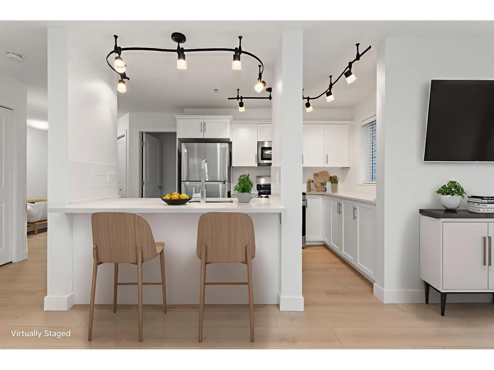 Welcome to the Newmark at 46289 Yale Road. This bright corner unit offers a practical and comfortable layout with two generously sized bedrooms and two full bathrooms. Recent renovations include a newer stove, dishwasher, fridge, and microwave, along with fresh paint, new flooring, and some updated lighting. The corner positioning allows for excellent natural light and a sense of openness. Located just a stone's throw from District 1881, you are steps to shops, dining, schools, transit, and everyday amenities. An ideal option for first time buyers or investors seeking a well maintained home in a highly walkable central location. Select images have been virtually staged. (id:27476)