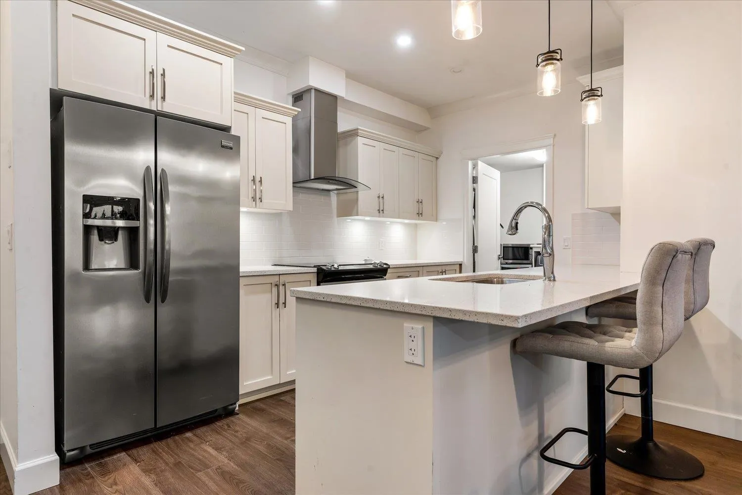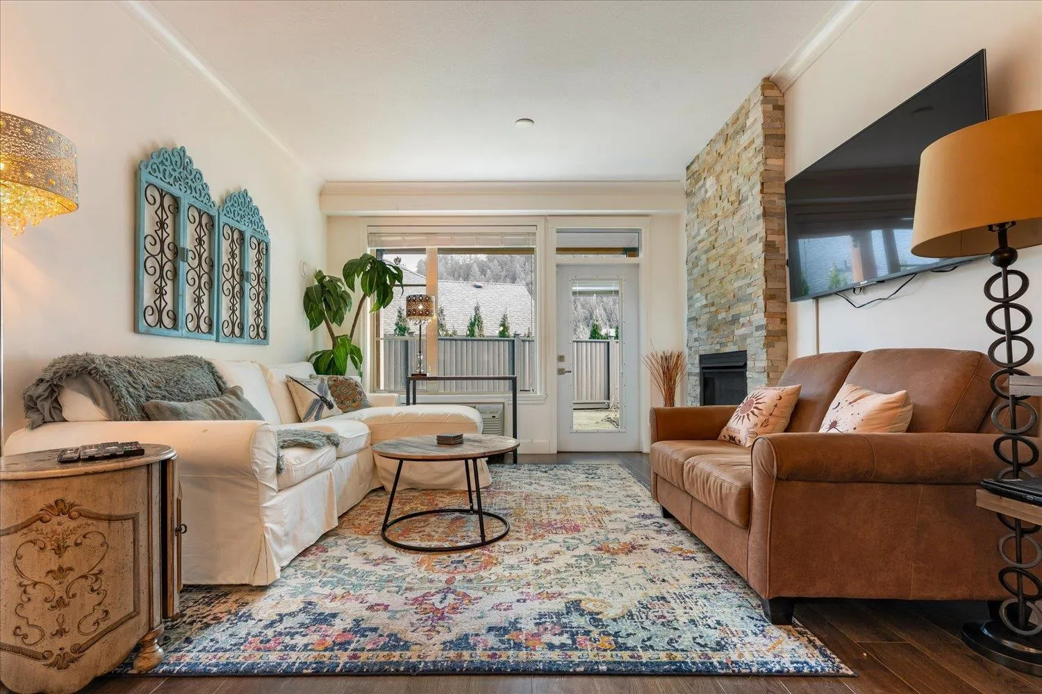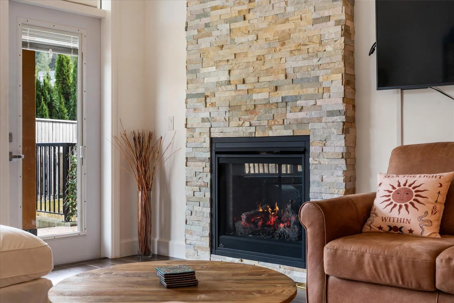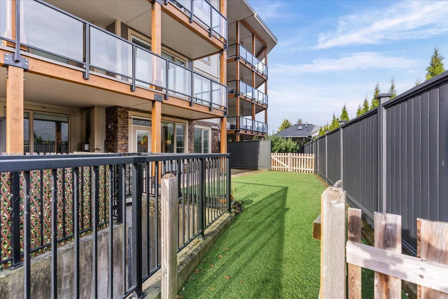 This two bedroom plus den residence sits in the sought after, upscale community of Englewood Courtyard. No detail was overlooked, featuring quartz countertops, stainless steel appliances, and a floor to ceiling stone fireplace in the living room. A standout feature of this ground level home is the spacious, turfed and fenced yard, offering seamless indoor/outdoor living with a patio and abundant natural light. Two storage lockers are included, one across the hall and another located in front of the underground parking stall. One small dog up to 18" is permitted, or a cat. The lease fee is $151.14 per month and HOA fees are $397.58 monthly. The building includes a car wash, woodworking shop, and a highly active community clubhouse for resident enjoyment. Come see it for yourself. Today!!! (id:27476)