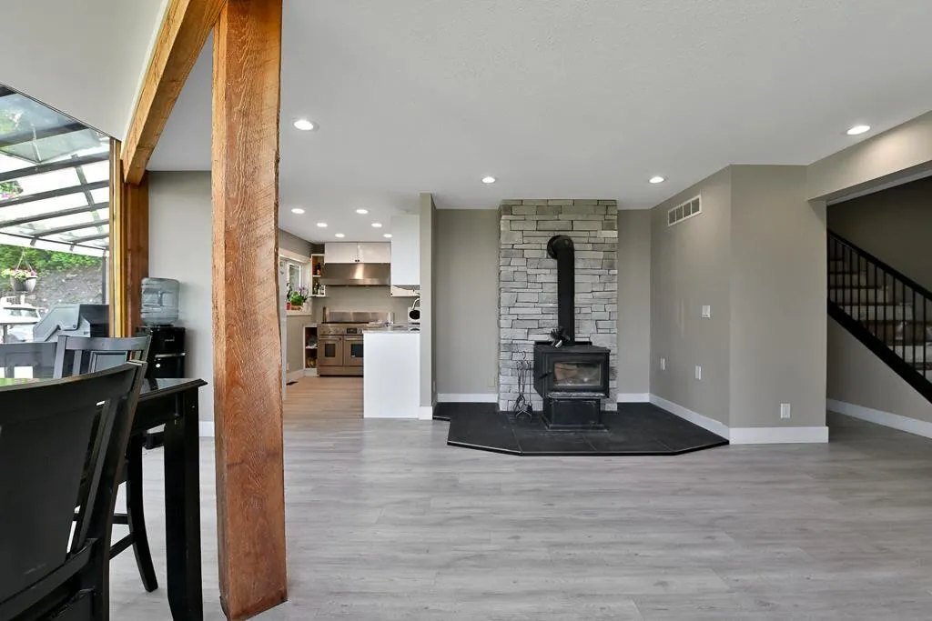 Discover this serene sanctuary nestled on a private, nearly 17-acre wooded lot featuring a Duplex style home. Side 1 has been beautifully updated, boasting oversized corner windows, a chef's kitchen, 3 bedrooms, 3 bathrooms, and a luxurious primary suite. The walkout basement could be easily converted to a suite, for an additional income source. Side 2 is equally impressive with updates including hardwood floors, a large bedroom with ensuite, plus a den/solarium and separate laundry, which is currently an operating Airbnb. Additionally there is potential to build a coach house, or start fresh and build your dream home on the flat build site. Large shop, spectacular views, and just 10 minutes out of town, close to hiking trails, golf, quick highway access and much more! Viewing by appt only (id:27476)