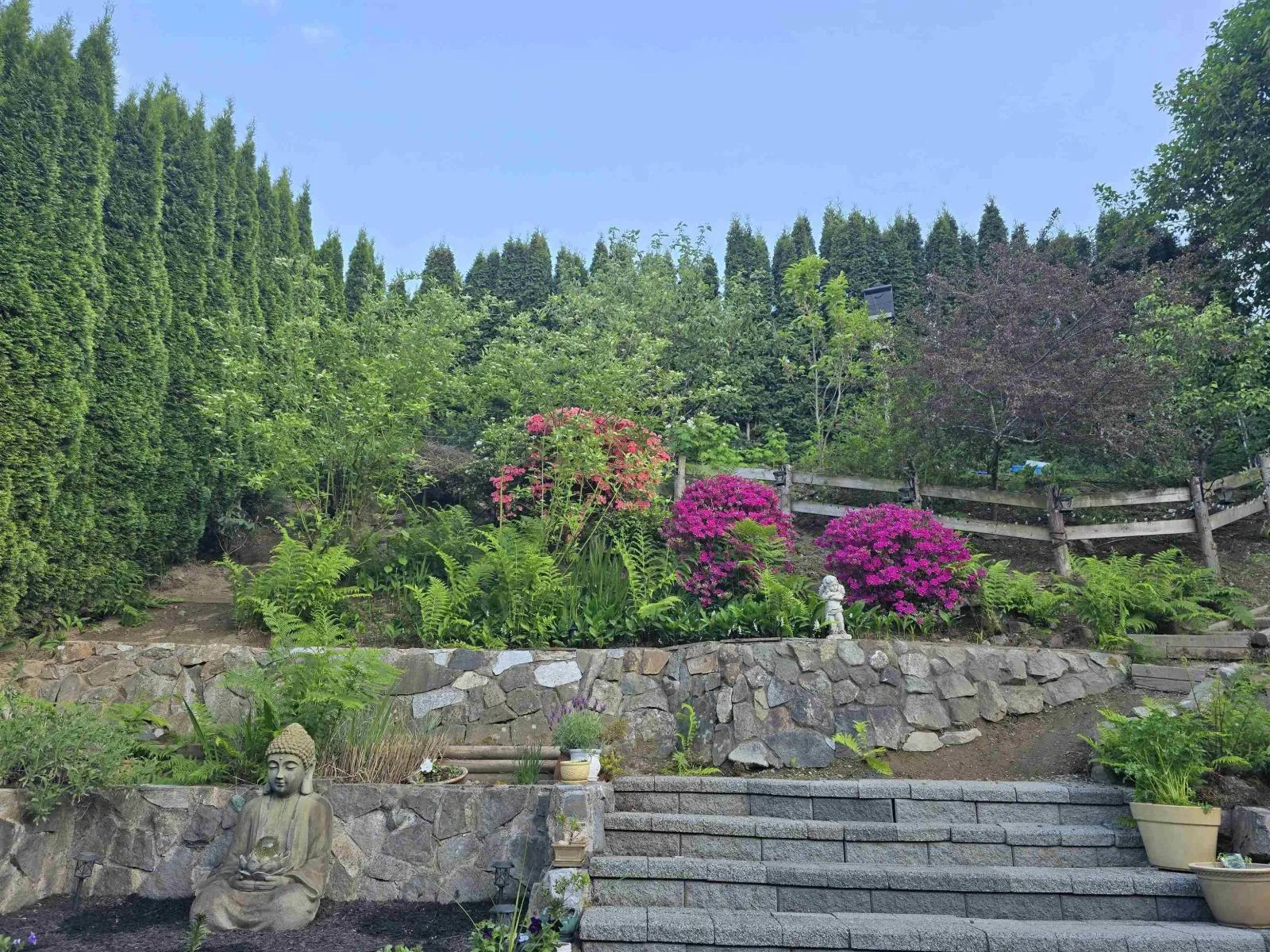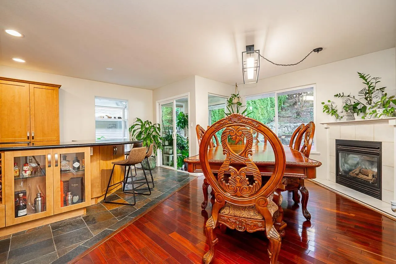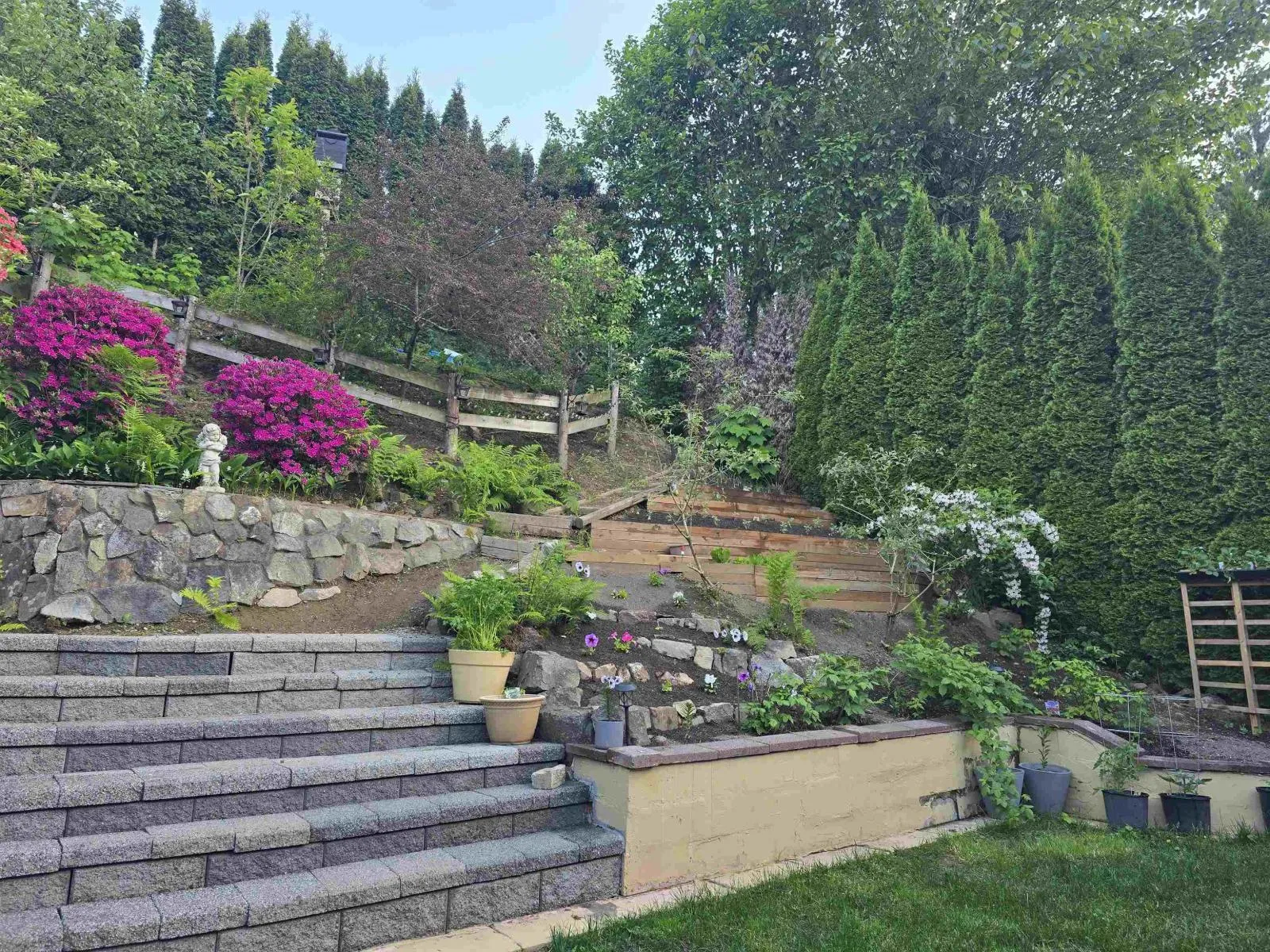 Welcome to Home 122 at the exclusive Chilliwack Mountain community, Trails at Longthorne Creek. This updated 4 bed/3 bath home boasts vaulted ceilings, huge chefs kitchen with quartz counters, pantry and 11ft island siding onto an concept dining room, perfect for dinner parties and entertaining. Large master bedroom with walk in closet, 3 pc en-suite and bump out window plus 2 more sizable rooms upstairs. Upgraded paint, slate/ hardwood flooring, bathroom vanities and lighting throughout! Two gas fireplaces, dry sauna and herb window. The fully fenced, extensively landscaped back yard offers a park like setting in the spring and summer and a hot tub to enjoy in the winters. This home has a 1 bedroom suite and tons of parking with the double bay garage and 5 more spaces in the driveway. * PREC - Personal Real Estate Corporation (id:27476)