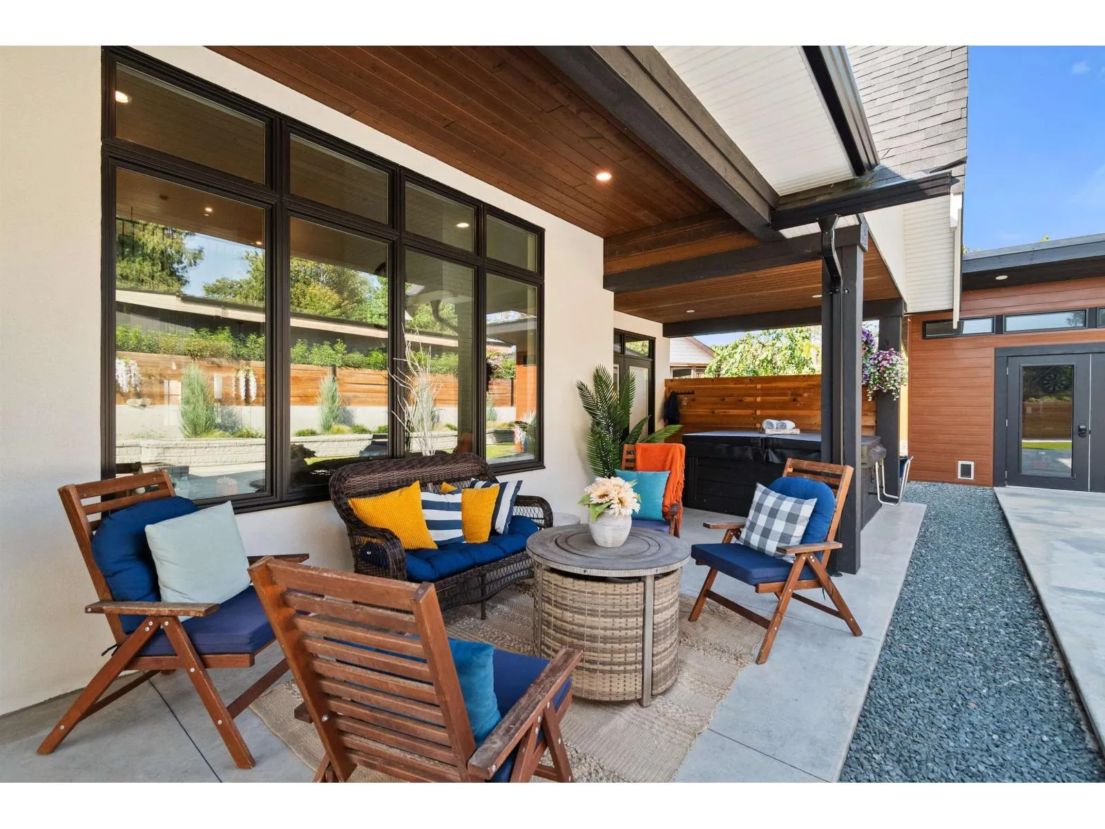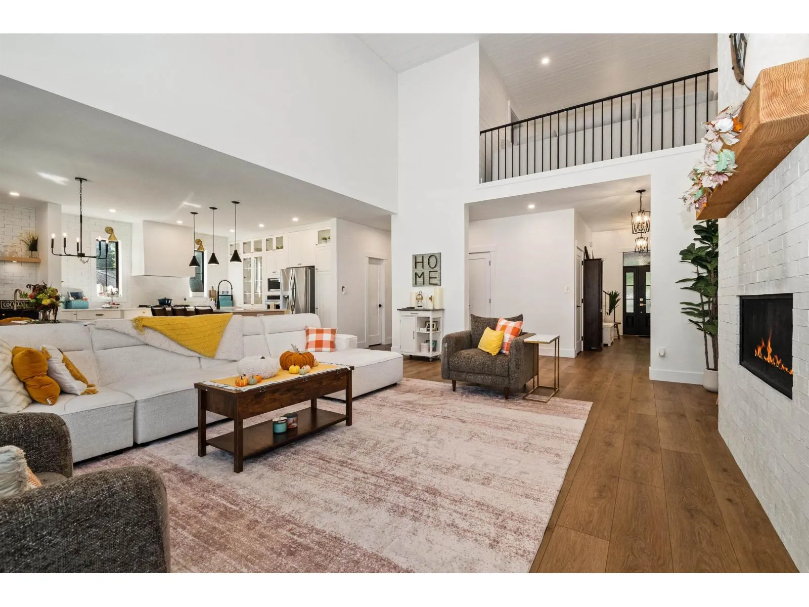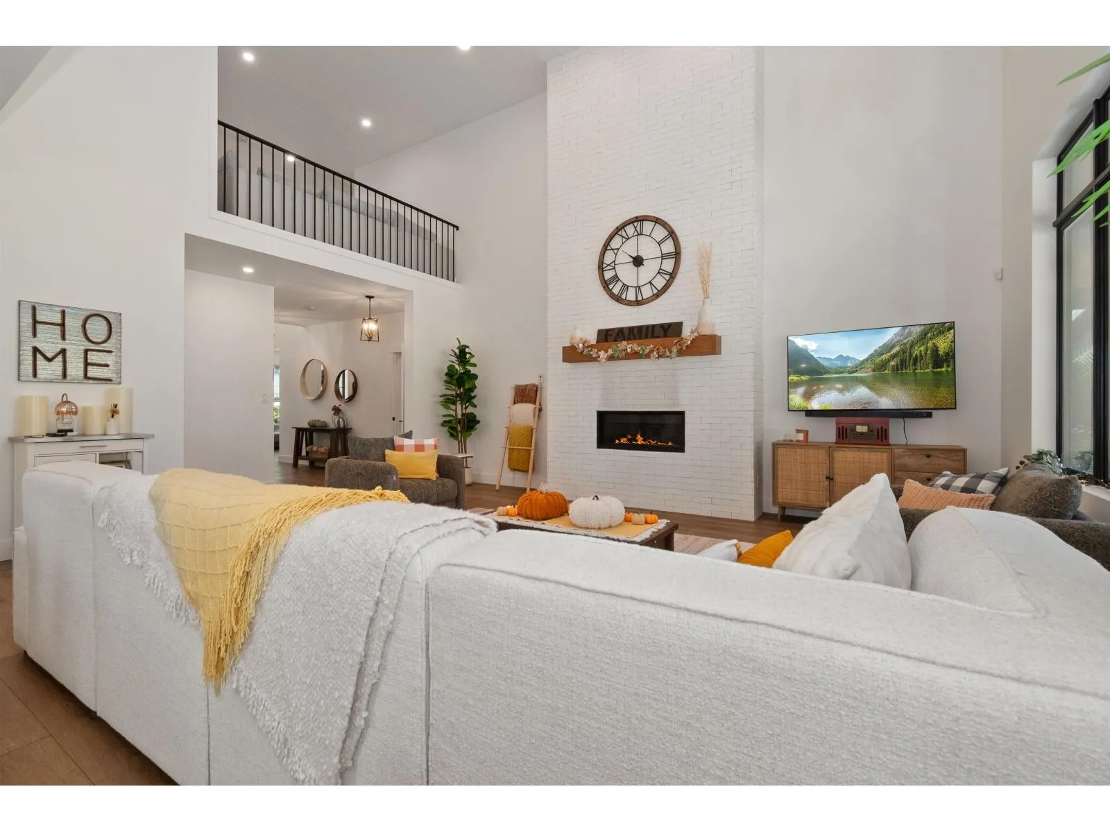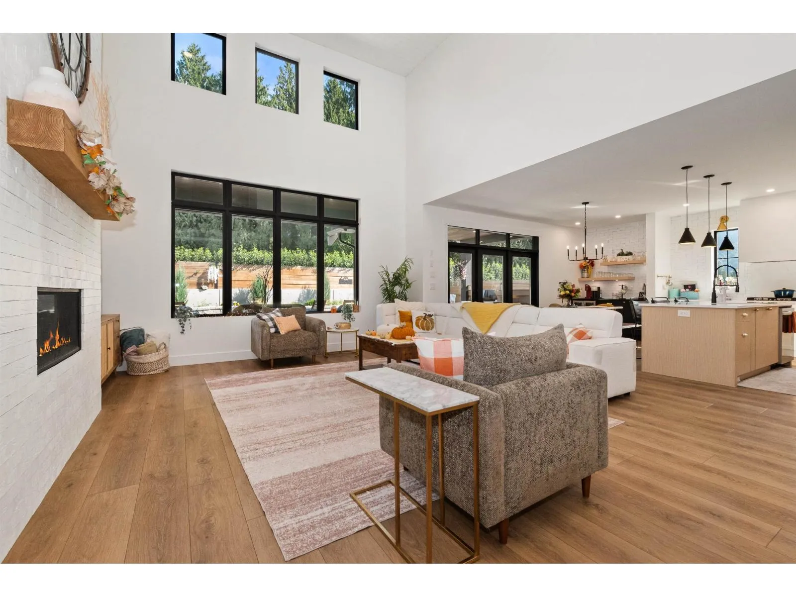 Step into this stunning executive home where luxury meets comfort. The main-floor master suite offers style and functionality, with an elegant ensuite and patio doors leading to a spacious deck and hot tub for outdoor relaxation. The chef's kitchen features soaring ceilings, a coffee bar, and abundant pantry space, flowing seamlessly into the family living room with its 20-foot fireplace. Upstairs are 2 large bedrooms, a bathroom, and a versatile flex room. Additional highlights include an office, RV parking, a large driveway, and a very private backyard with a charming outbuilding. More than a house. It's your dream home waiting for you to make it your own. (id:27476)