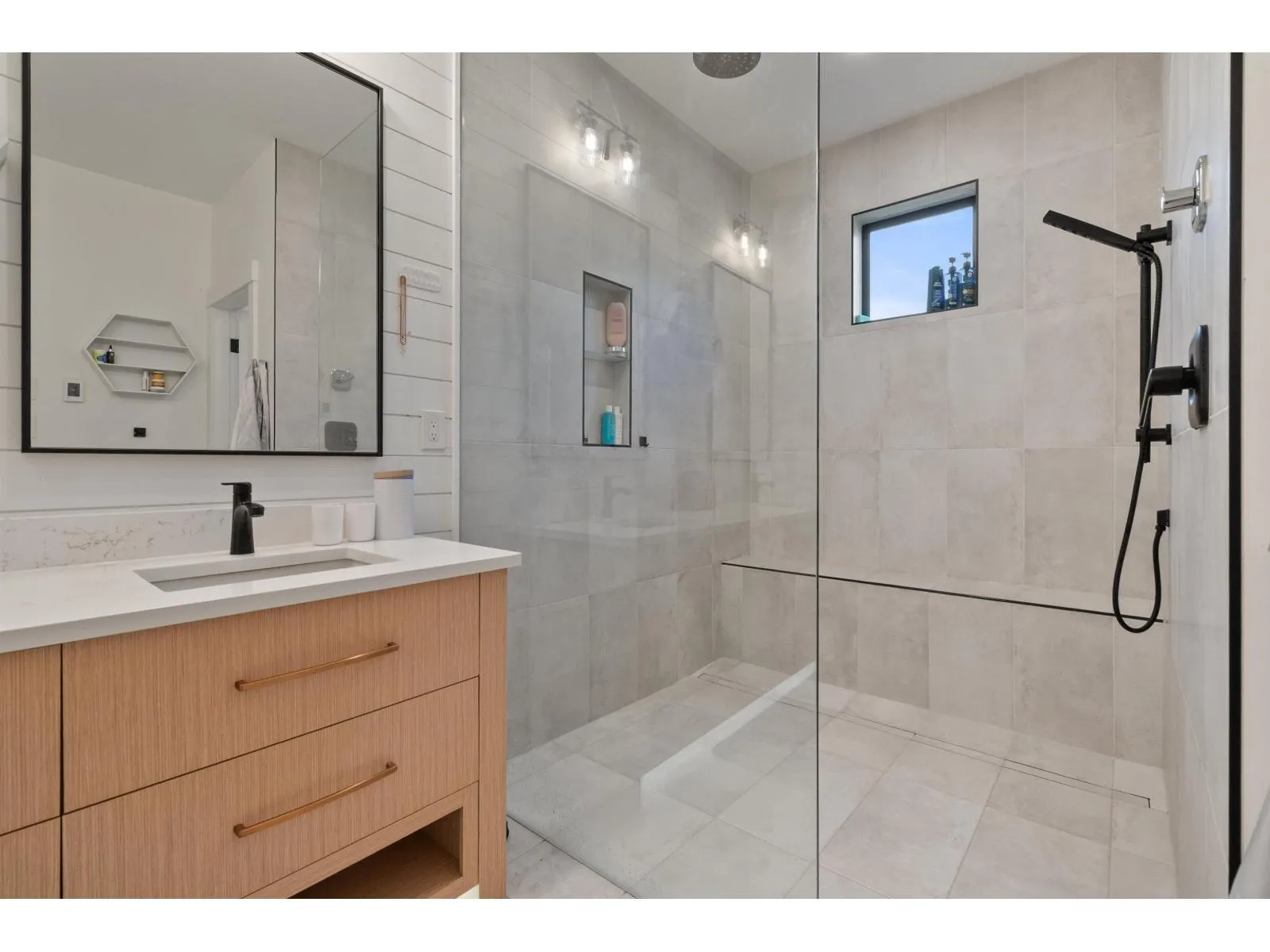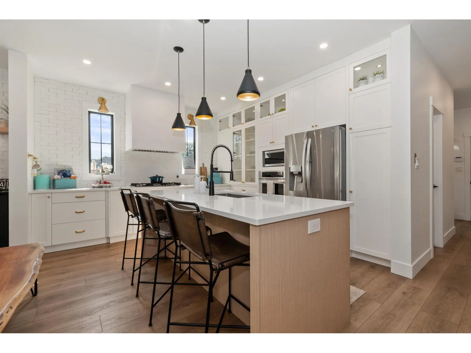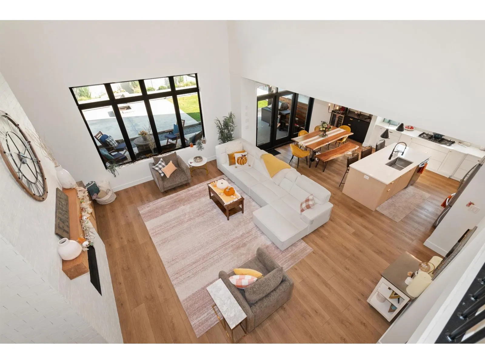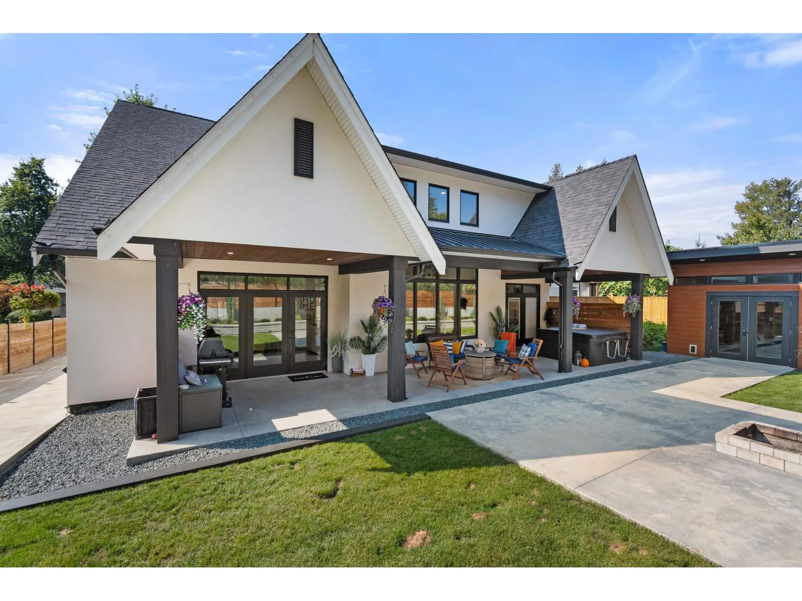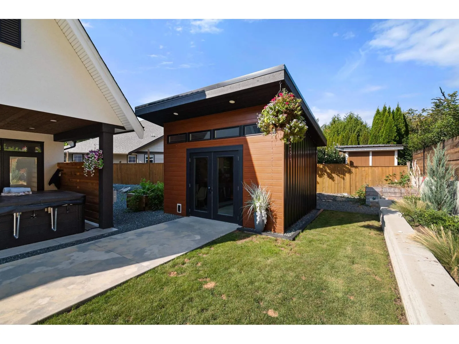 Step into this stunning executive home where luxury meets comfort. The main-floor master suite offers style and functionality, with an elegant ensuite and patio doors leading to a spacious deck and hot tub for outdoor relaxation. The chef's kitchen features soaring ceilings, a coffee bar, and abundant pantry space, flowing seamlessly into the family living room with its 20-foot fireplace. Upstairs are 2 large bedrooms, a bathroom, and a versatile flex room. Additional highlights include an office, RV parking, a large driveway, and a very private backyard with a charming outbuilding. More than a house. It's your dream home waiting for you to make it your own. (id:27476)