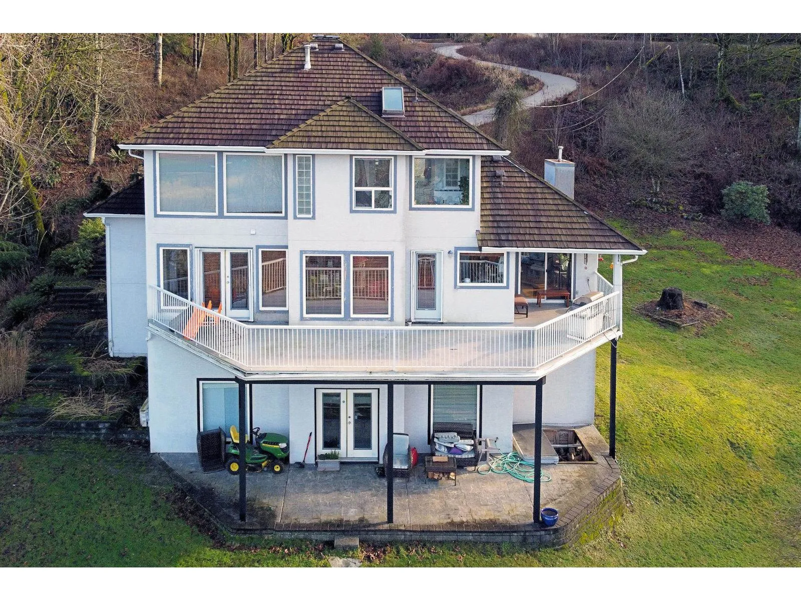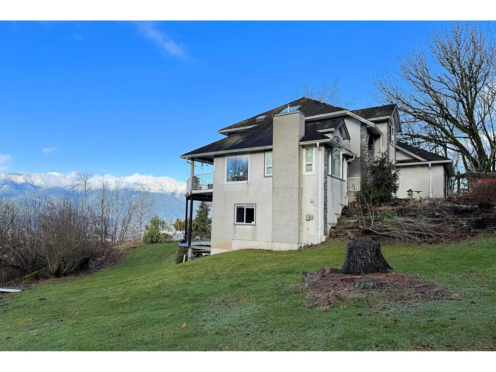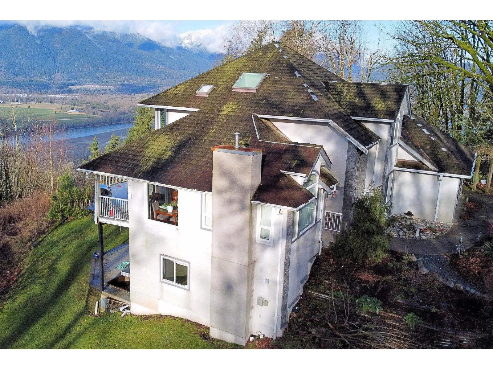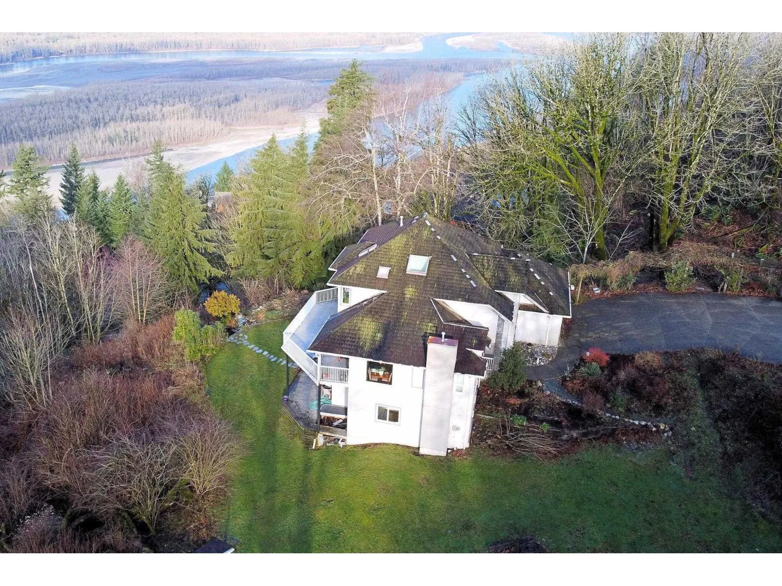 Mountaintop views! Originally 2 lots, it's just over 3 acres of land overlooking the Fraser River and mountains to the north and west. This is custom built two storey home also has a fully finished basement with extra high ceilings. The wall of north facing windows captures the breathtaking views of sunsets, mountains & the Fraser River. The remodeled gourmet kitchen is just stunning large quartz island, built-in appliances incl gas cook top, and a heated tile floor too! Grand vaulted ceilings and hardwood floors add grandeur & style to the main living area. The family room opens to a huge viewing deck. 3 bedrooms up. The master suite boast huge closet and luxury ensuite plus fab views to wake up to. The full walk-out basement has 2 bedrms, media area, bathrm and huge recrm, ideas? (id:27476)