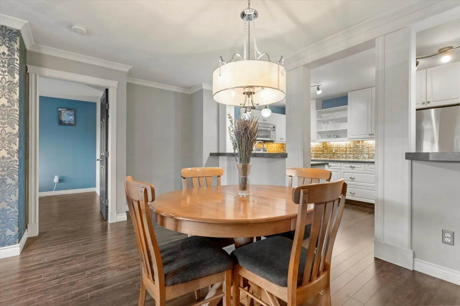 Recently updated home featuring panoramic mountain and valley views, plus over 200 sq ft of outdoor space to enjoy them. The kitchen offers stainless steel glass cooktop, OTR microwave, fridge, dishwasher, double sink, and a convenient pantry. Cozy up by the natural gas fireplace with custom mantle. Laminate flooring throughout with carpeted stairs and tile in bathrooms. The primary bedroom includes a private balcony and a fully renovated ensuite with soaker tub and walk-in shower. Added perks include central vacuum, a furnace replaced approx. 3 years ago, and an incredible ~167 sq ft of under-stair storage. * PREC - Personal Real Estate Corporation (id:27476)