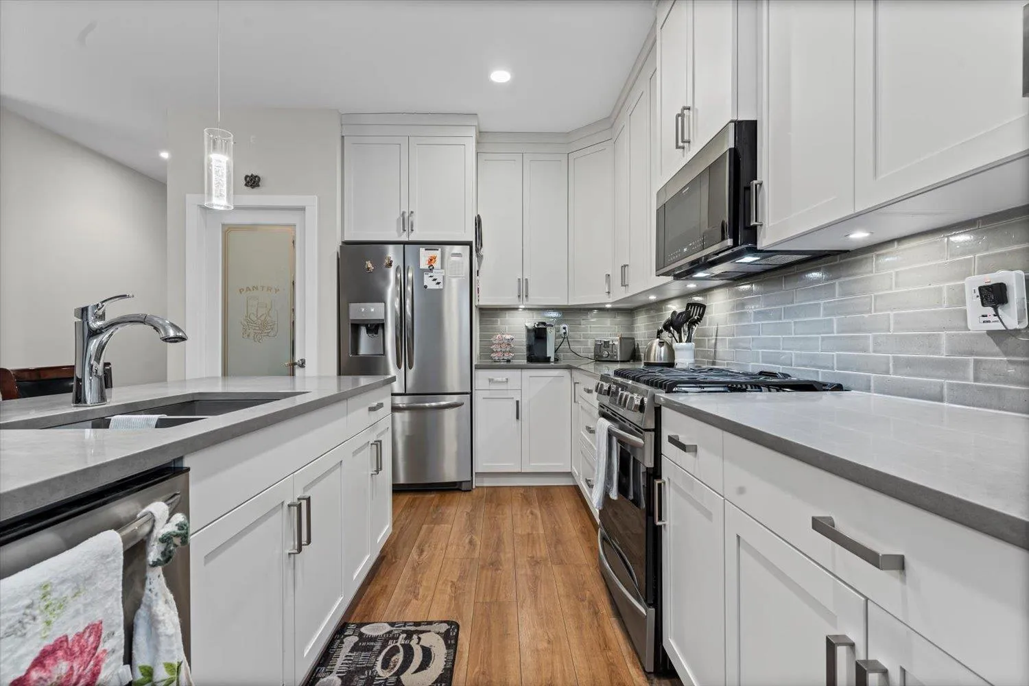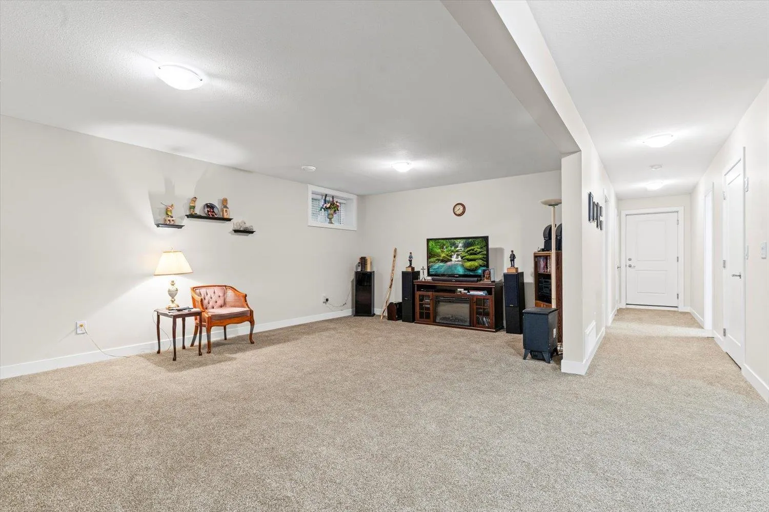 This beautiful home in Thomas Crossing a 55+ gated complex offers open-concept main floor plan w/ extended kitchen island, pantry, and S/S appliances & gas range. The primary bedroom features a beautiful 4 pc ensuite and spacious w/i closet. Downstairs you will find an additional bedroom, full bath, large rec room and extra storage. The double garage has an EV hook-up and epoxy flooring, w/ double driveway. Outside the extended patio provides an excellent setting for year-round enjoyment enhanced by a glass awning for extra light, electric patio shades, natural gas BBQ hookup, artificial turf and a fully fenced yard. The home is finished with professionally installed Gemstone exterior lighting. Land you own - not leased! Bareland strata fee $171.37/month. (id:27476)