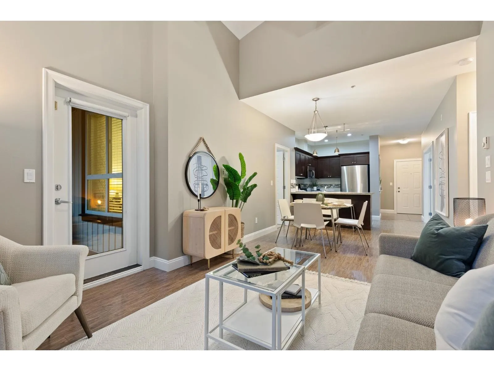 Beautiful 2 bed/2 bath + den top floor condo in Ameera Place, prime location minutes to Garrison Crossing, schools, shopping, Cheam Leisure Centre, Vedder Rotary Trail and Cultus Lake. 9' ceilings throughout and stunning vaulted ceilings in the main living space with ample windows letting in lots of natural light. Open concept kitchen with stainless steel appliances and eating bar. Spacious primary bedroom with walk in closet and ensuite with separate soaker tub. Lots of space with a 2nd bedroom, den and storage room. Secure underground parking stall & spacious balcony complete the package! * PREC - Personal Real Estate Corporation (id:27476)