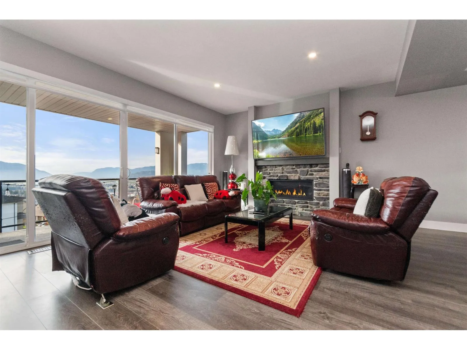 Perched on a quiet street in Promontory Heights, this stunning 3-storey executive home offers panoramic valley views from every level. Just 6 years new, the home features 4 spacious bdrms plus a den, with an unfinished lower level roughed-in for a future suite with separate entry, perfect for extended family or mortgage helper. Designed for entertaining, the open-concept main features oversized patio doors that seamlessly extend the living space onto a covered deck, allowing you to enjoy year-round. The bright, modern kitchen includes upgraded SS appliances, including an impressive Insta-View refrigerator and gas range. A convenient main-floor den and laundry. Upstairs, the luxurious primary retreat boasts double closets a 4-piece ensuite, and a massive 147 sq ft private patio. * PREC - Personal Real Estate Corporation (id:27476)