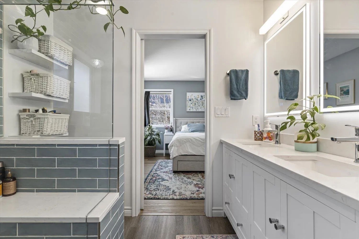 Lovely detached home with ground-level 2 bdrm suite in a quiet, family-friendly neighbourhood. This well cared for home offers thoughtful updates over the years including a newer roof. Upstairs features open concept living, w/ a cozy N/G fireplace and custom mantle, 3 bdrms & 2 full baths. Enjoy the high-end kitchen w/ updated cabinets, large eat-up island, Quartz countertops, SS appliances with a N/G stove, renovated bathrooms, and central A/C. Desirable corner lot with South & East exposure and a functional, wrap around yard"-great for families! Fully self contained 2 bdrm suite, w/ separate entry and warm N/G fireplace, great for in-laws or mortgage helper. Exceptional storage w/ 5ft crawl space. Excellent location close to schools, daycare, amenities & outdoor recreation. (id:27476)