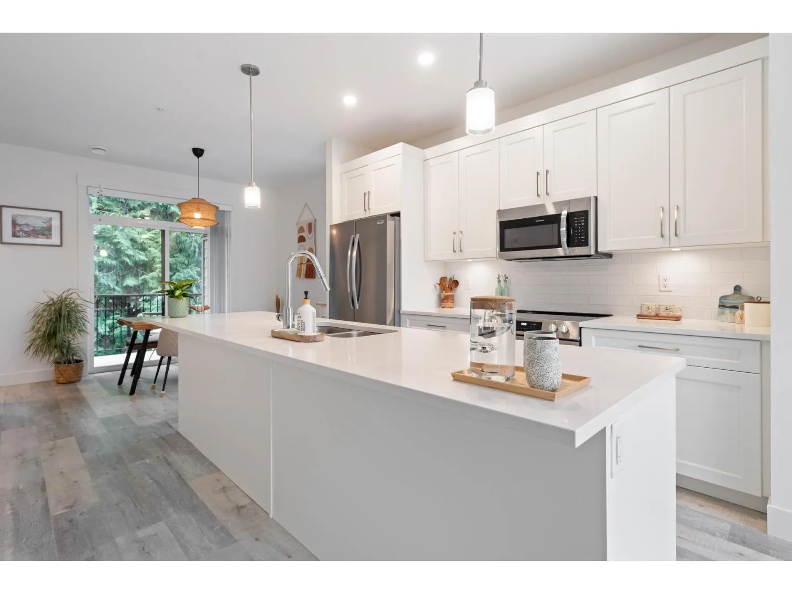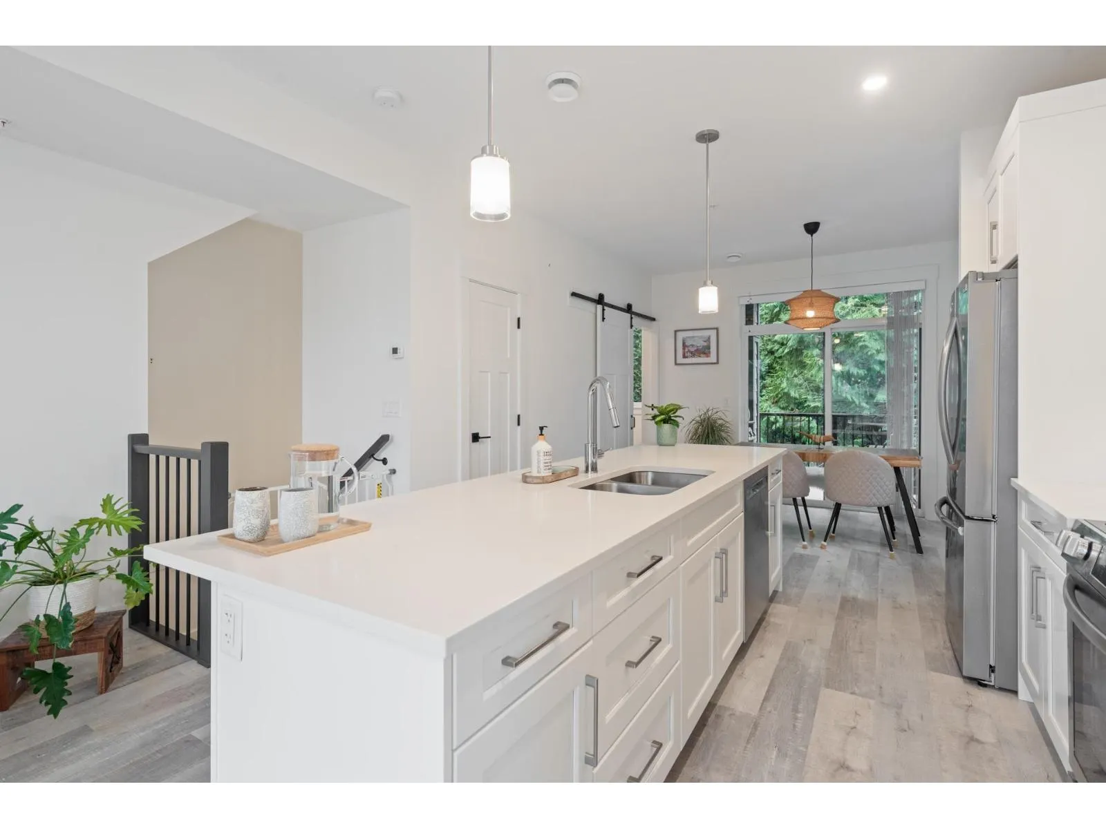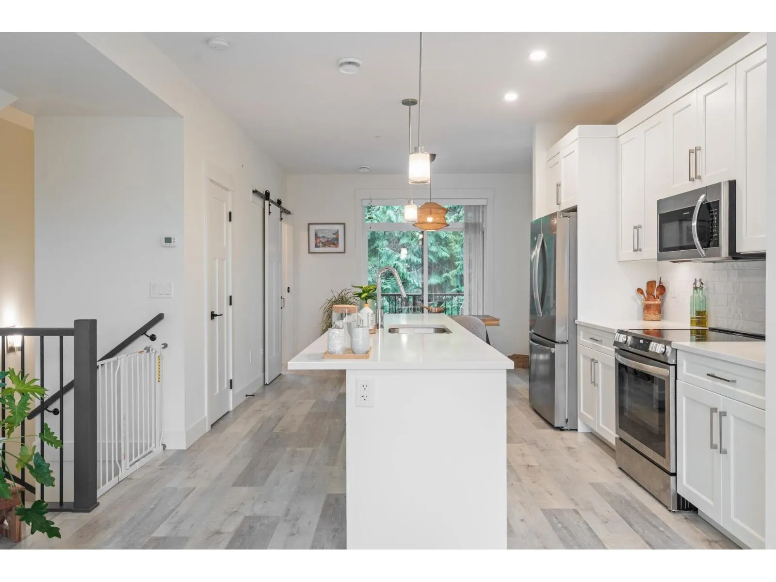 Stunning 3 Bed, 3 Bath END Unit in quiet River Vista built in 2024. The main floor offers 9 foot ceilings with a large living, kitchen and dining space and feels much wider than a traditional townhome. Kitchen has a large island, soft close kitchen cabinetry, upgraded appliances. Upstairs has a good sized primary with full ensuite and walk in closet, 2 more bedrooms and full bath. Downstairs offers a large rec room with access to the full fenced back yard. Built with high end finishing, it includes forced air furnace with A/C and hardiplank siding. Single garage with double driveway large enough for a full size truck. Close to schools, parks and walking trails. This is a rare opportunity to buy a, like new, townhome WITHOUT GST. * PREC - Personal Real Estate Corporation (id:27476)
