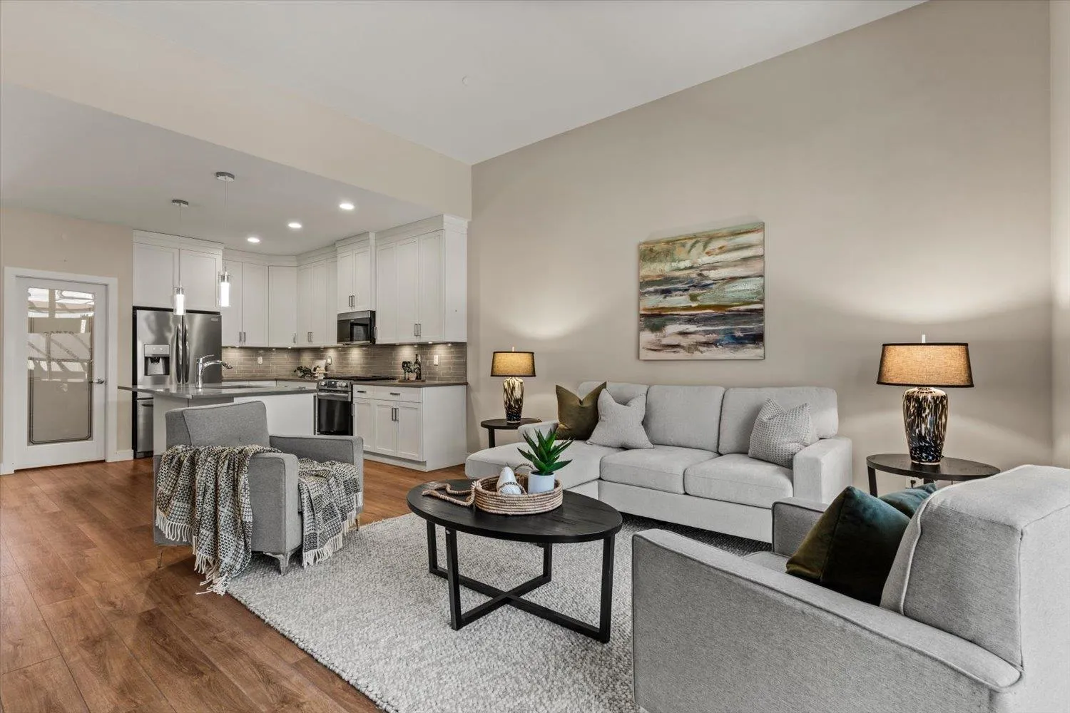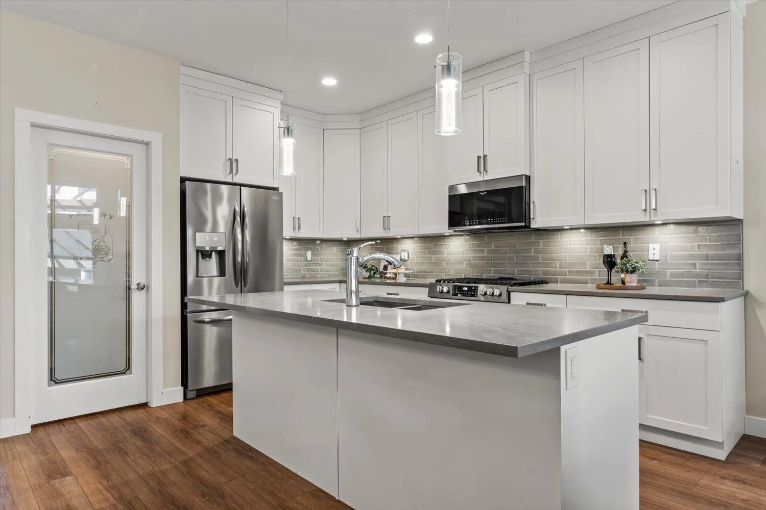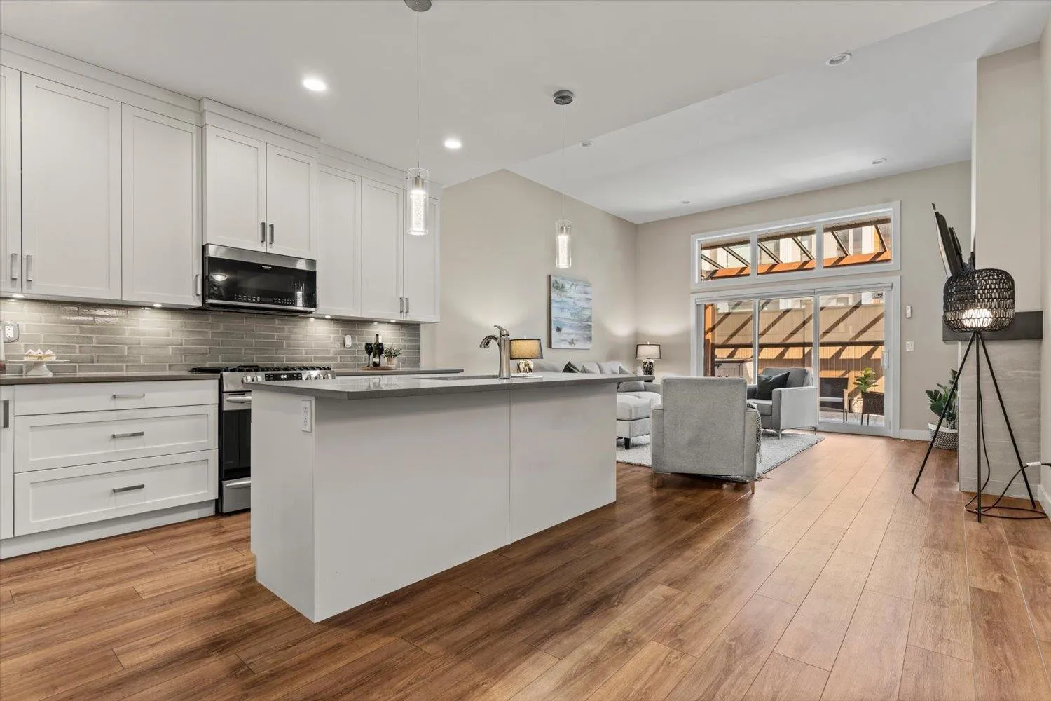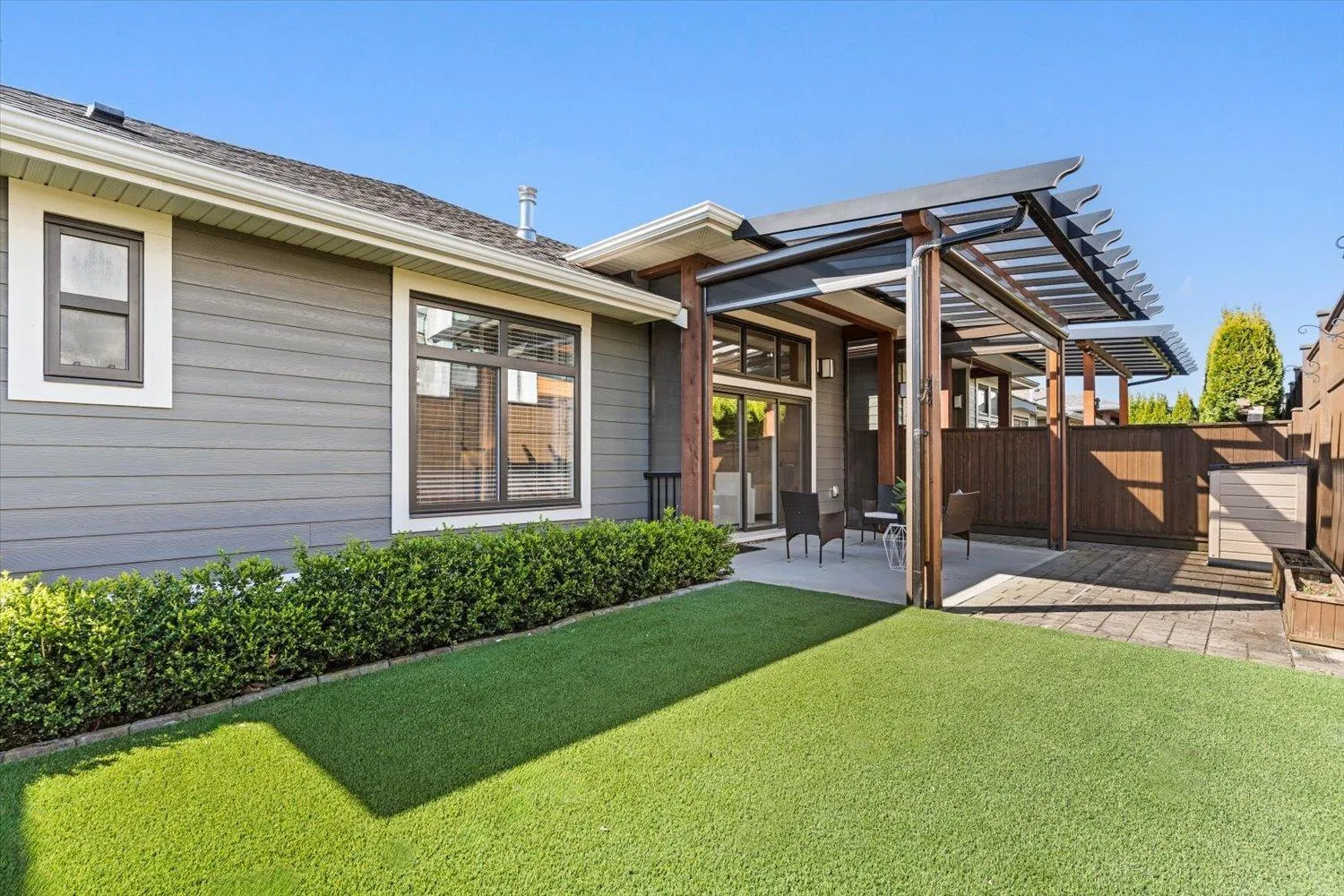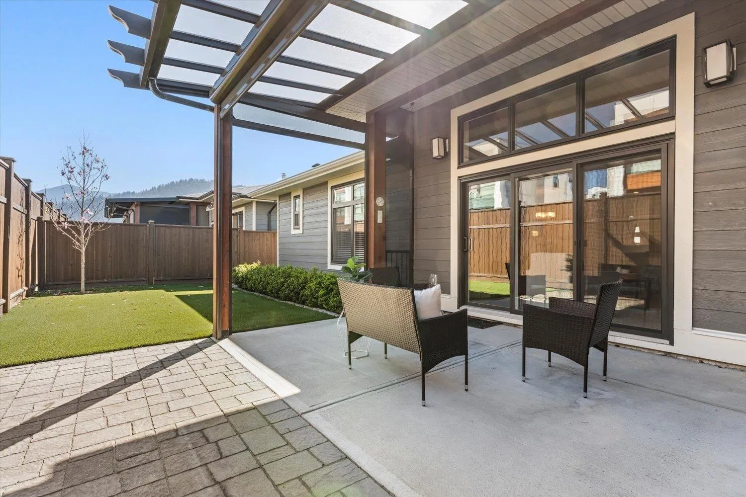 This beautiful home in Thomas Crossing a 55+ gated complex offers open-concept main floor plan w/ extended kitchen island, pantry, and S/S appliances & gas range. The primary bedroom features a beautiful 4 pc ensuite and spacious w/i closet. Downstairs you will find an additional bedroom, full bath, large rec room and extra storage. The double garage has an EV hook-up and epoxy flooring, w/ double driveway. Outside the extended patio provides an excellent setting for year-round enjoyment enhanced by a glass awning for extra light, electric patio shades, natural gas BBQ hookup, artificial turf and a fully fenced yard. The home is finished with professionally installed Gemstone exterior lighting. Land you own - not leased! Bareland strata fee $171.37/month. (id:27476)