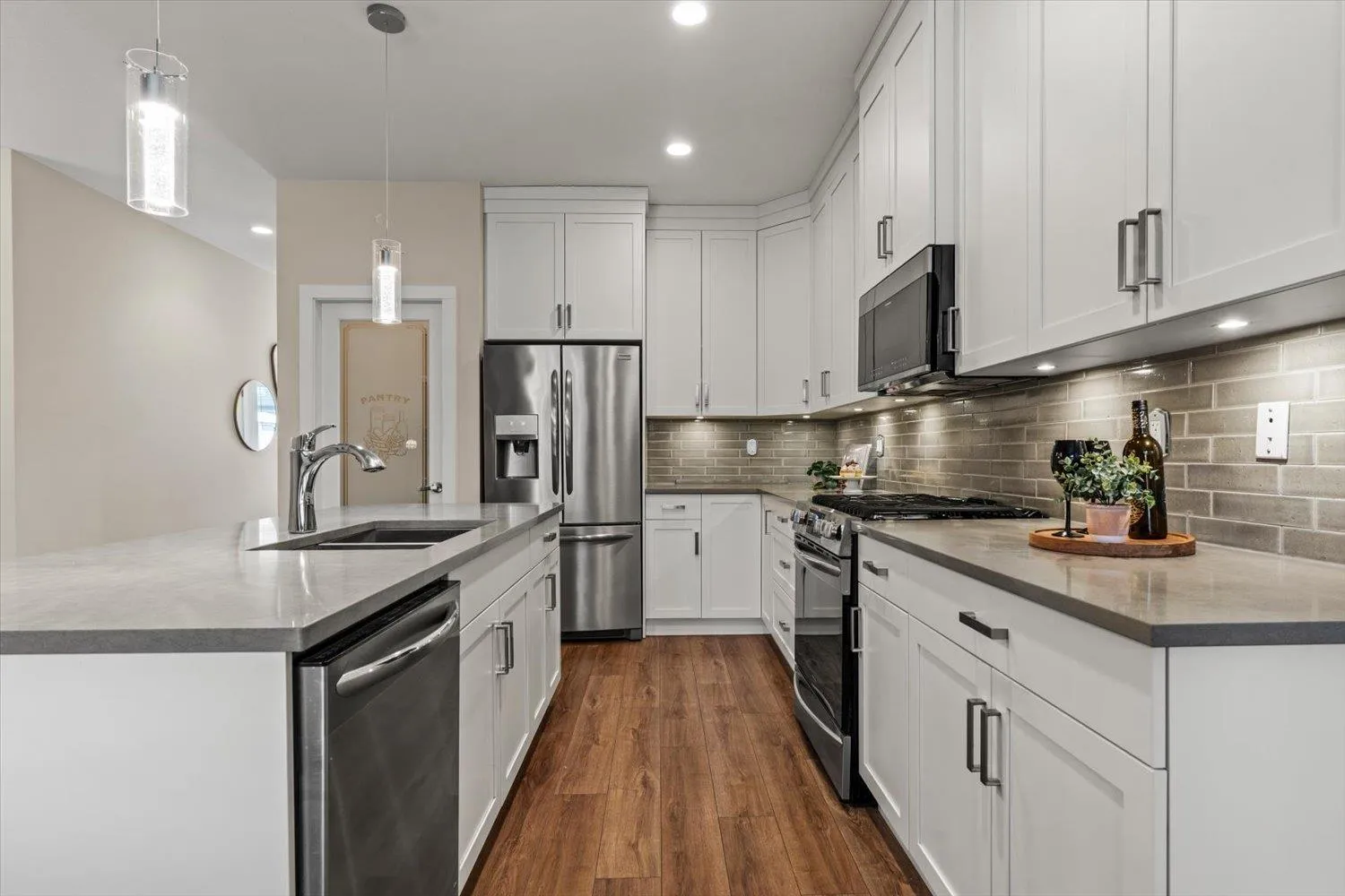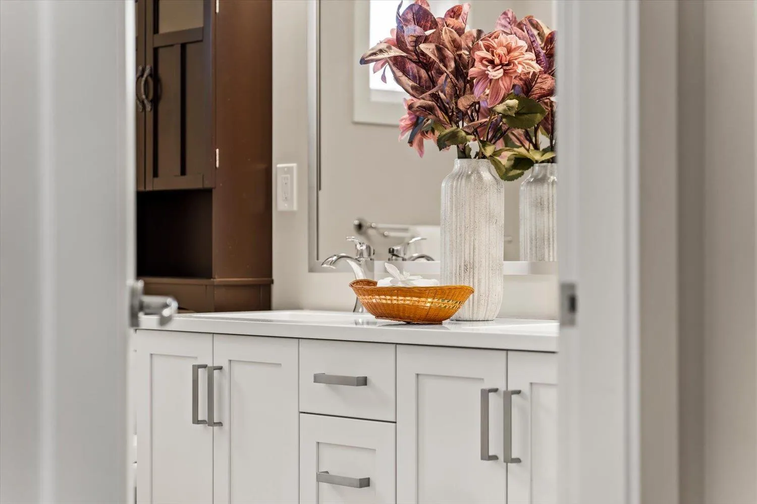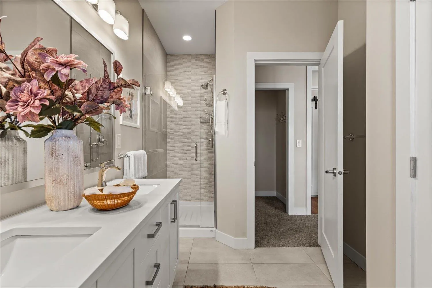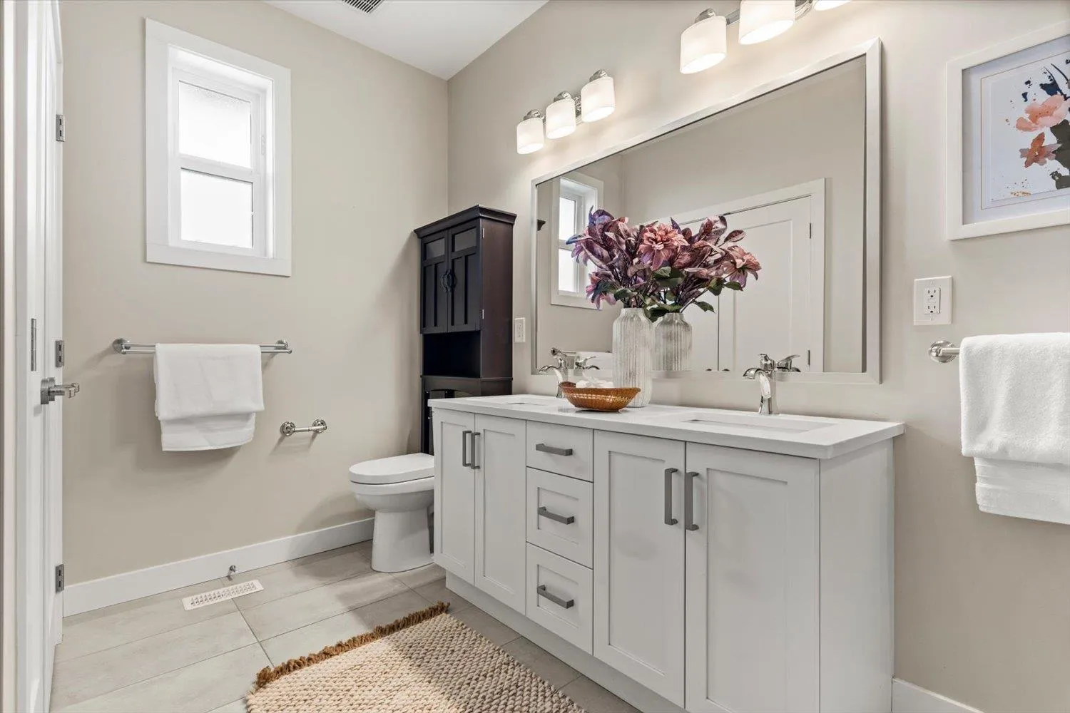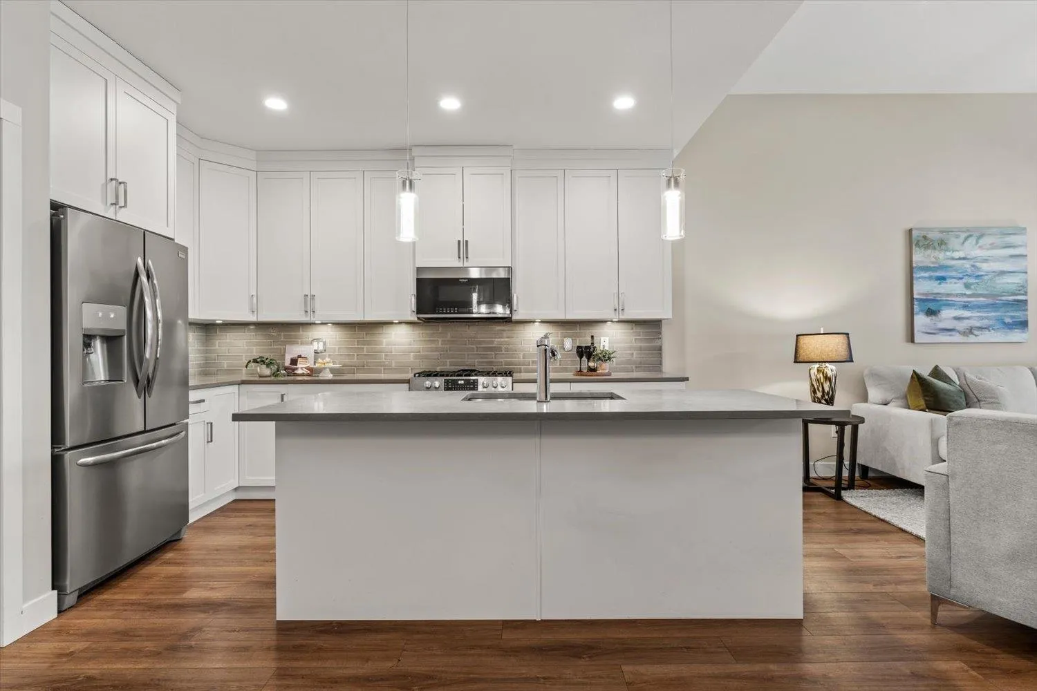 This beautiful home in Thomas Crossing a 55+ gated complex offers open-concept main floor plan w/ extended kitchen island, pantry, and S/S appliances & gas range. The primary bedroom features a beautiful 4 pc ensuite and spacious w/i closet. Downstairs you will find an additional bedroom, full bath, large rec room and extra storage. The double garage has an EV hook-up and epoxy flooring, w/ double driveway. Outside the extended patio provides an excellent setting for year-round enjoyment enhanced by a glass awning for extra light, electric patio shades, natural gas BBQ hookup, artificial turf and a fully fenced yard. The home is finished with professionally installed Gemstone exterior lighting. Land you own - not leased! Bareland strata fee $171.37/month. (id:27476)