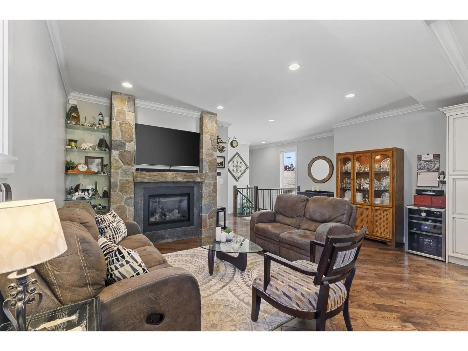 9603 St. David St! This beautifully crafted home has 4bdrms, 3baths , 2,373sqft, & packed with high-quality features designed for comfort and style. On the main level you have hardwood flooring throughout, an amazing kitchen with stunning cabinetry, polished concrete countertops, a sleek tile backsplash, and stainless steel appliances. Elegant crown molding & custom window trims add a refined touch throughout. French doors w/ built-in blinds open to a large, stamped concrete deck, perfect for entertaining & overlooks a meticulously landscaped backyard. Below you have a spacious rec room bathed in natural light, bedroom, full bath, storage room, laundry & heated concrete floors. Built in surround sound, BRAND NEW A/C & HW TANK, and a spa/hot tub for year-round relaxation. CAN BE SUITED! * PREC - Personal Real Estate Corporation (id:27476)