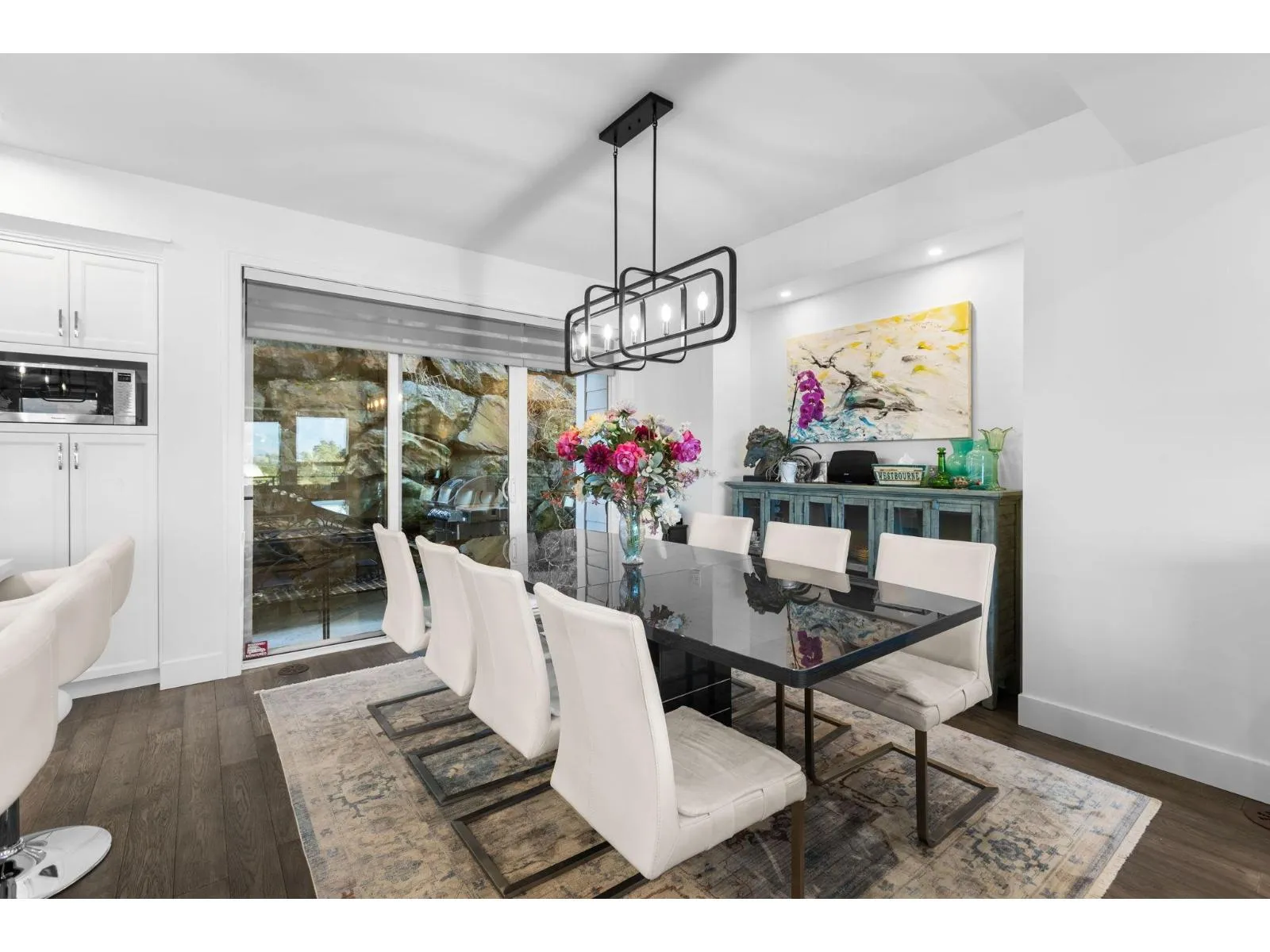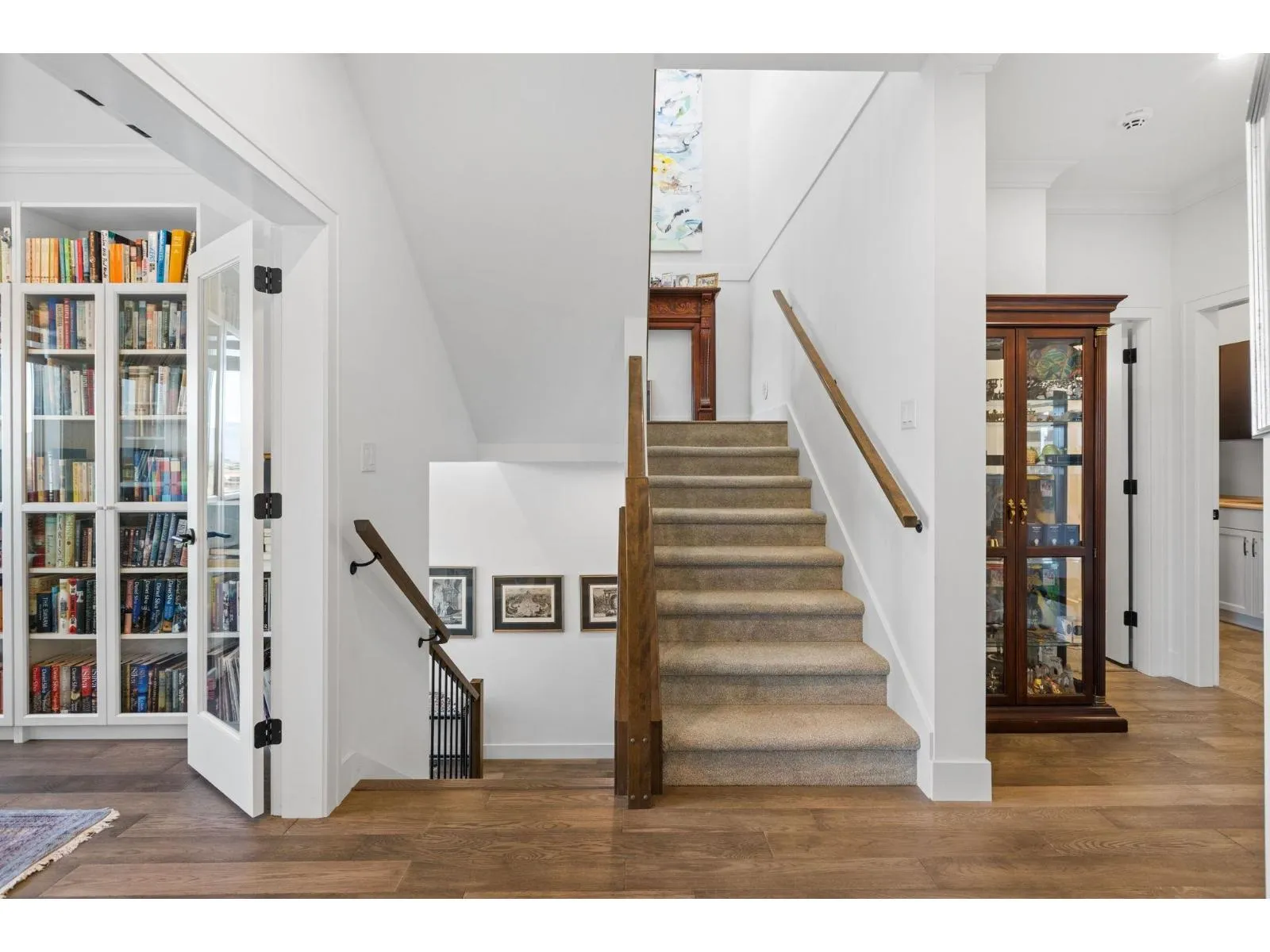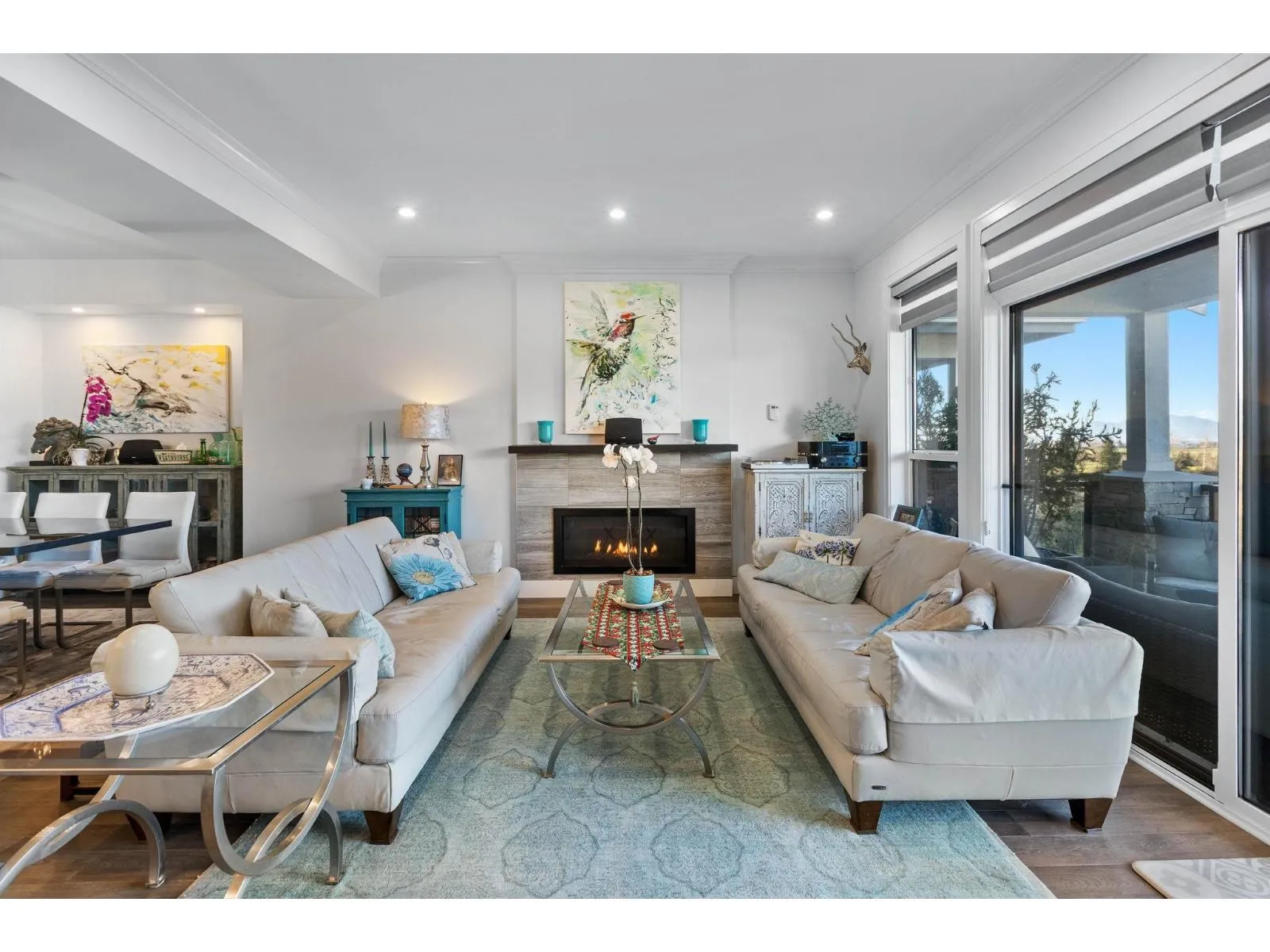 Thoughtfully designed 3 storey home offering 5 bedrooms+ den and 4 bathrooms! Enjoy stunning golf course views from every level, highlighted by soaring 14' ceilings, hardwood floors, quartz countertops & high-end stainless appliances, inc a natural gas range. The lower level includes a double garage, media room, 2 bedrooms, full bathroom & separate entry w/ suite rough-ins for an easy future conversion. The main living space features an open layout with a statement kitchen, spacious dining area, front-facing deck & a quiet den/library overlooking the ALR w/incredible sunset views. Upstairs you'll find the primary retreat with 2 walk-in closets and full ensuite, plus 2 additional generous bedrooms & another full bath. Low monthly bare land fees, limited restrictions, & plenty of parking! * PREC - Personal Real Estate Corporation (id:27476)