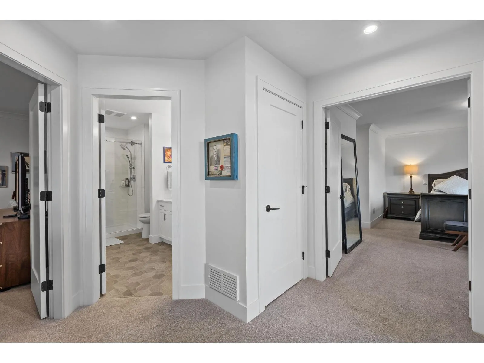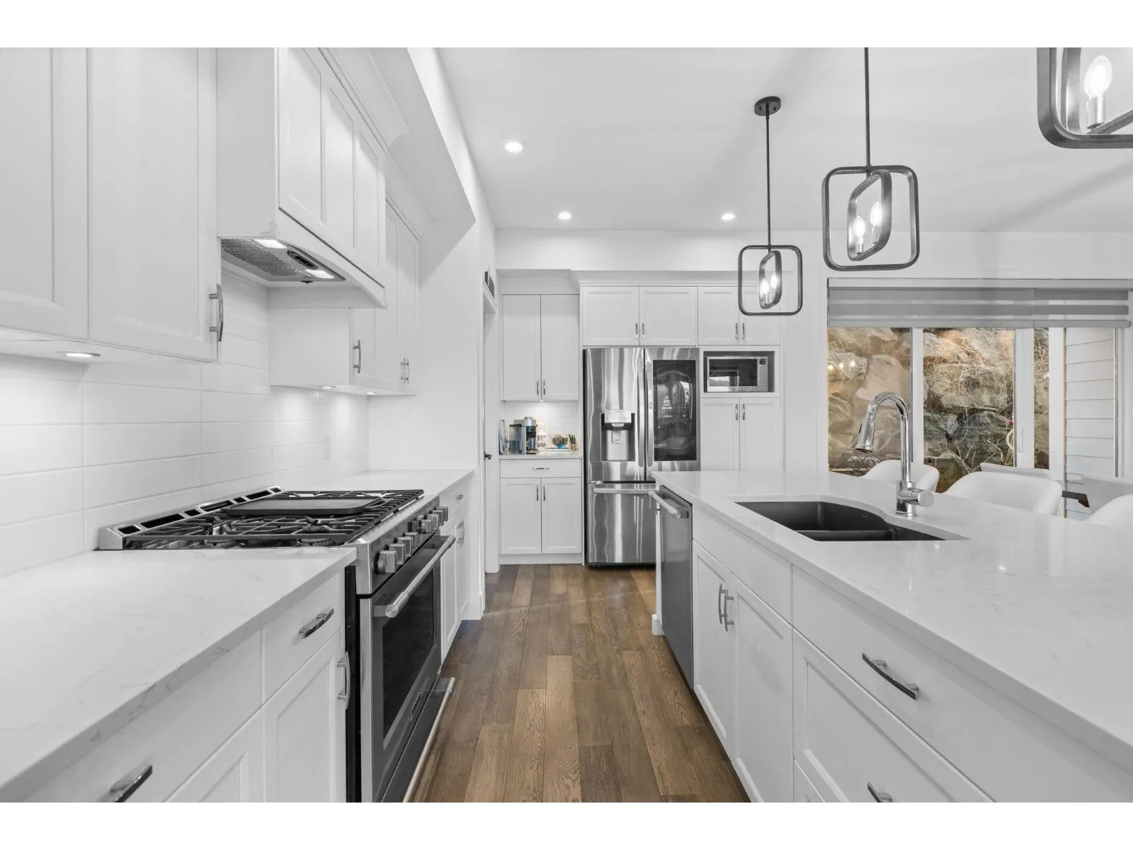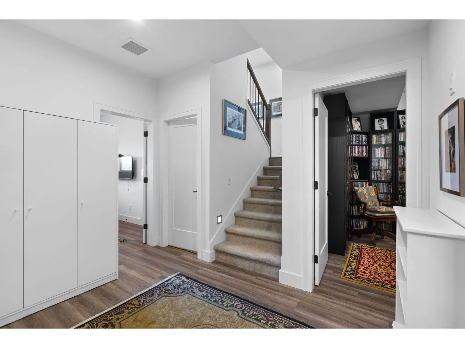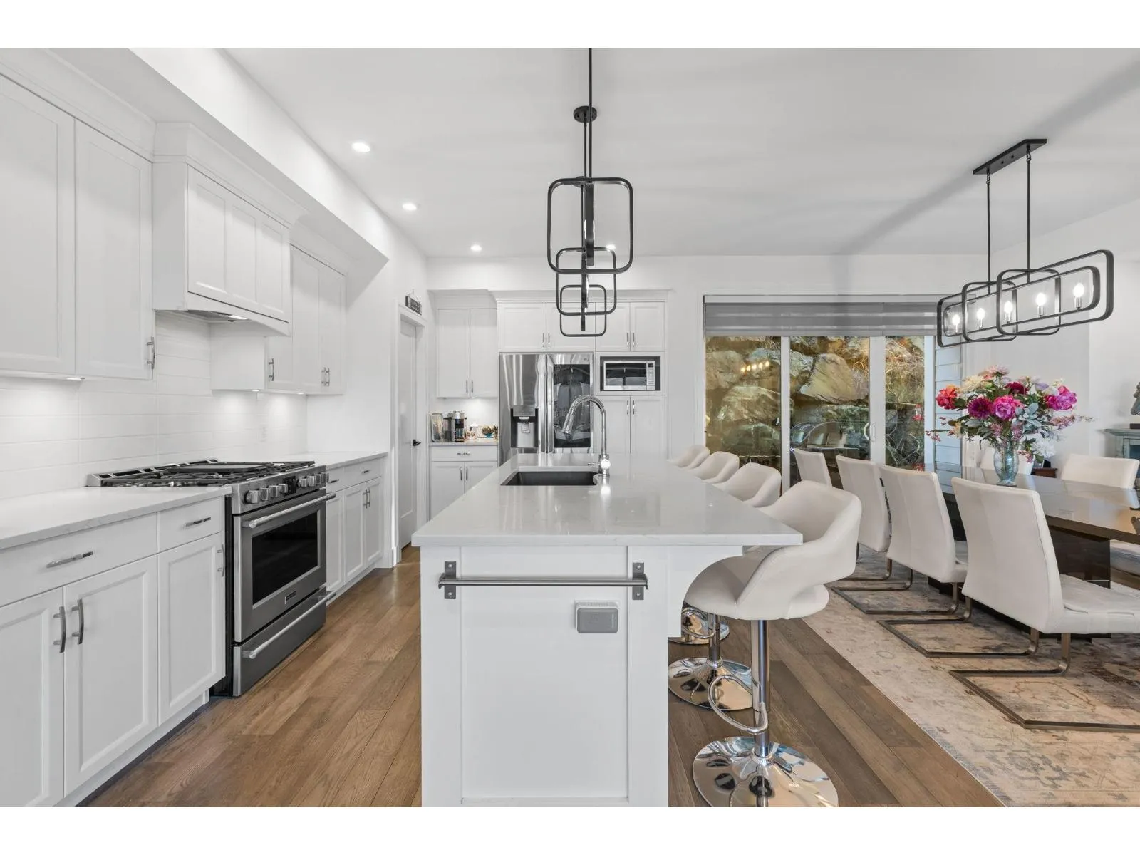 Thoughtfully designed 3 storey home offering 5 bedrooms+ den and 4 bathrooms! Enjoy stunning golf course views from every level, highlighted by soaring 14' ceilings, hardwood floors, quartz countertops & high-end stainless appliances, inc a natural gas range. The lower level includes a double garage, media room, 2 bedrooms, full bathroom & separate entry w/ suite rough-ins for an easy future conversion. The main living space features an open layout with a statement kitchen, spacious dining area, front-facing deck & a quiet den/library overlooking the ALR w/incredible sunset views. Upstairs you'll find the primary retreat with 2 walk-in closets and full ensuite, plus 2 additional generous bedrooms & another full bath. Low monthly bare land fees, limited restrictions, & plenty of parking! * PREC - Personal Real Estate Corporation (id:27476)