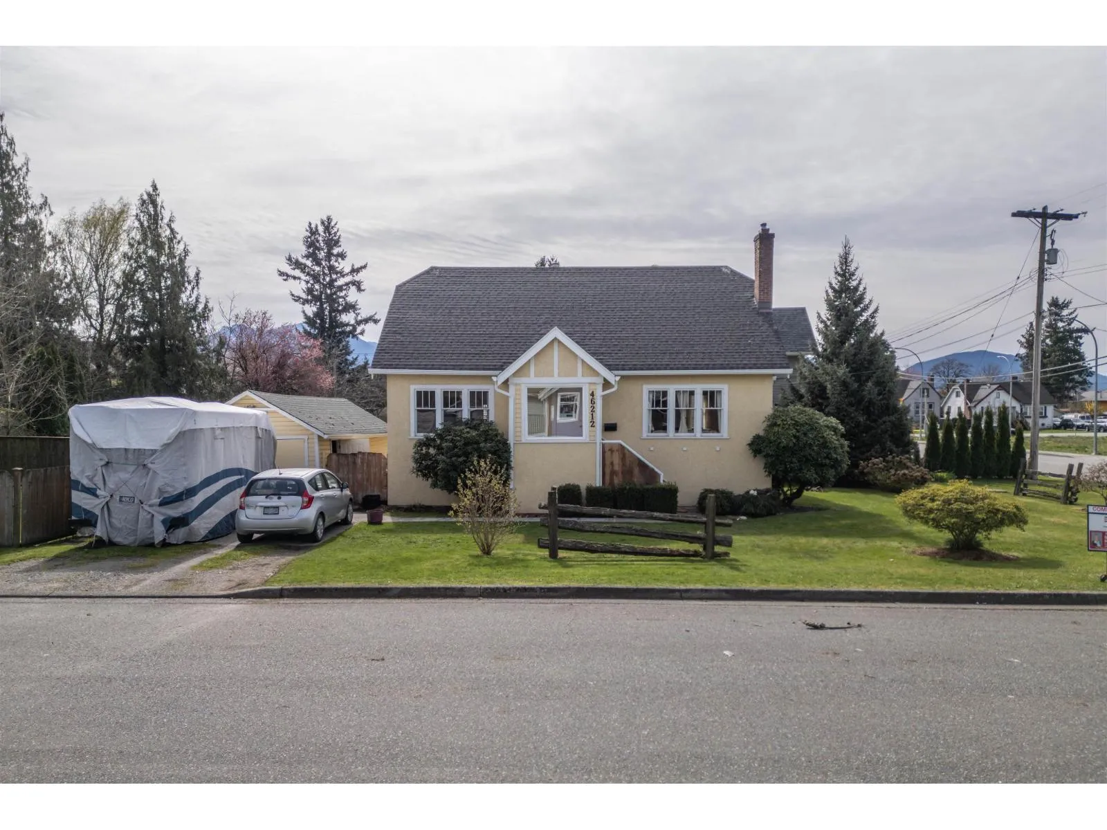 Charming 1940 Home with Development Potential in Downtown Chilliwack! Well-maintained character home featuring updated plumbing & electrical, newer gutters (2023), and a chimney upgrade. Cozy gas fireplace adds warmth to the inviting living space. Located in the heart of Chilliwack, just steps to the vibrant District 1881 with shops, cafes, and restaurants. Zoned R1-A allowing for a single detached home plus an accessory dwelling (coach house, suite, or garden suite). Eligible for Small-Scale Multi-Unit Housing (3"â4 units), offering excellent future potential. Great opportunity for homeowners, investors, or builders"-call today to book your private showing! Lot 60x143' Come see Come Buy (id:27476)