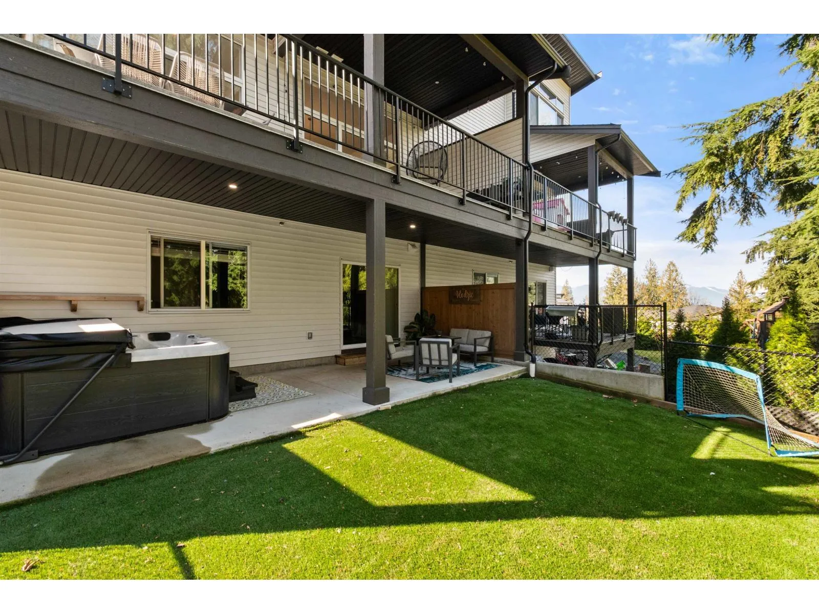 Welcome to this 5 bed, 4 bath 1/2 duplex tucked away on a quiet cul-de-sac in a family-friendly neighbourhood with NO strata fees or rules. Bright, spacious open concept kitchen perfect for entertaining. Primary bedroom features his & hers closets with large ensuite. Backing onto greenbelt for ultimate privacy with one of the largest fenced yards, a deck, hot tub, pool, shed and rope swing. Separate entrance to lower level and plumbed for a future suite, offering great income potential. Large crawl space for storage needs. Epoxy garage flooring with 240V plug completes the package. BOOK YOUR SHOWING TODAY!! (id:27476)