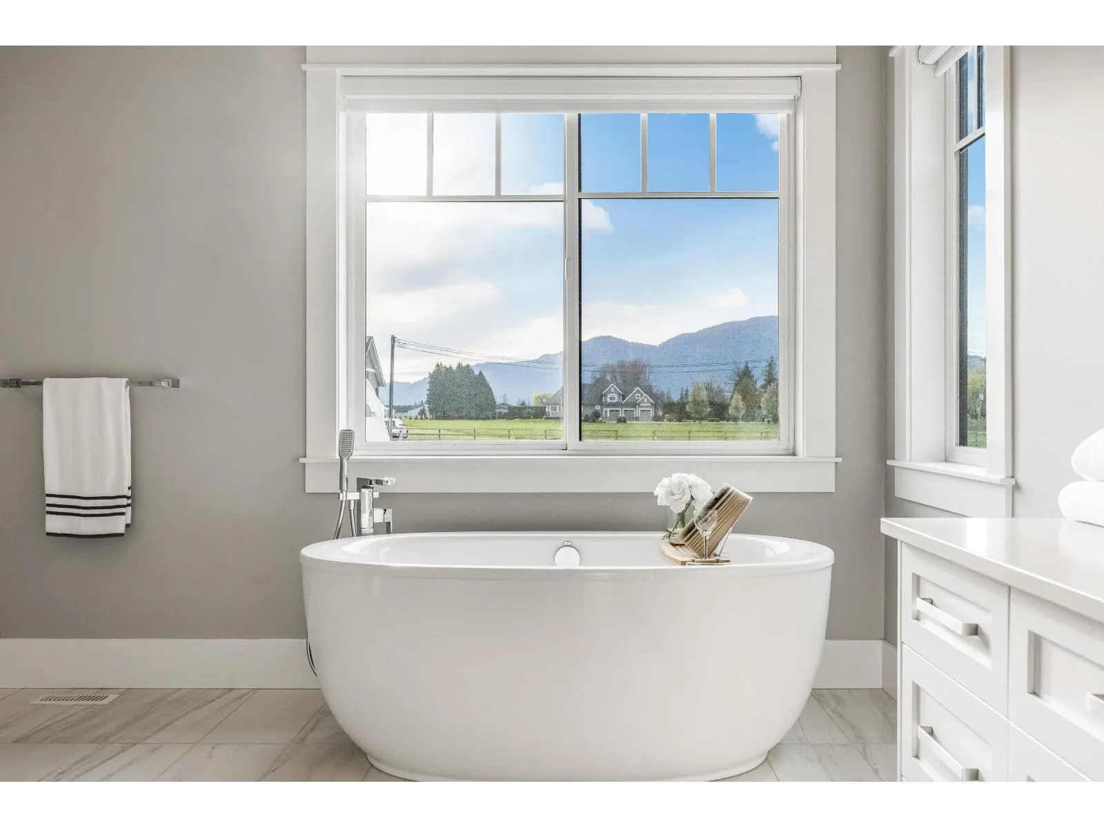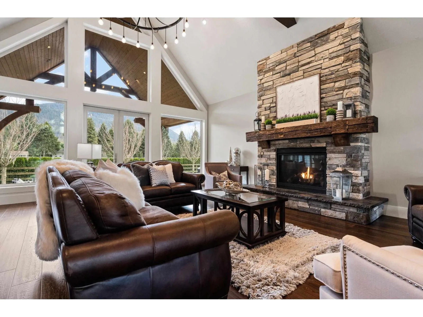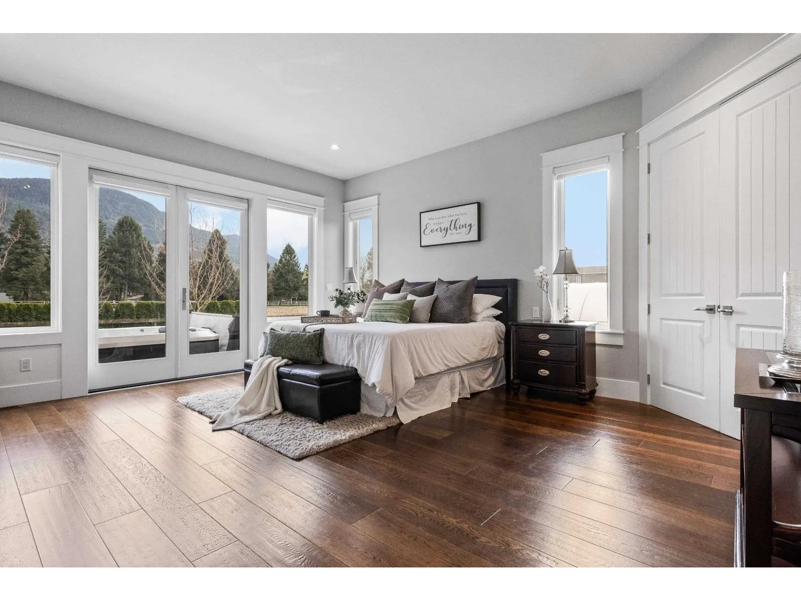 Built in 2016 with EXCEPTIONAL craftsmanship and no detail overlooked, this stunning 3,800 sq ft home offers 4 bedrooms, a media room loft w/ wet bar, & 5 bathrooms. STUNNING primary suite w/ 6 pc ensuite, fireplace, & patio access. Soaring vaulted ceilings, real fir timbers, hardwood floors, auto blinds, oversized gas fireplace, and a custom kitchen / quartz & custom backsplash create a warm yet refined living space. Enjoy a massive covered patio with hot tub, perfect for year-round entertaining. Attached triple garage plus breezeway to a 24x34'9 RV garage w/ 14' door. Bonus: a LEGAL 948 sq ft 2-bed coach home with stair lift, plus 924 sq ft of finished storage above. Lower shop includes 3 garage doors, 2 pc washroom, & ample options! Steps to the river, UFV, & shopping- central SARDIS! * PREC - Personal Real Estate Corporation (id:27476)