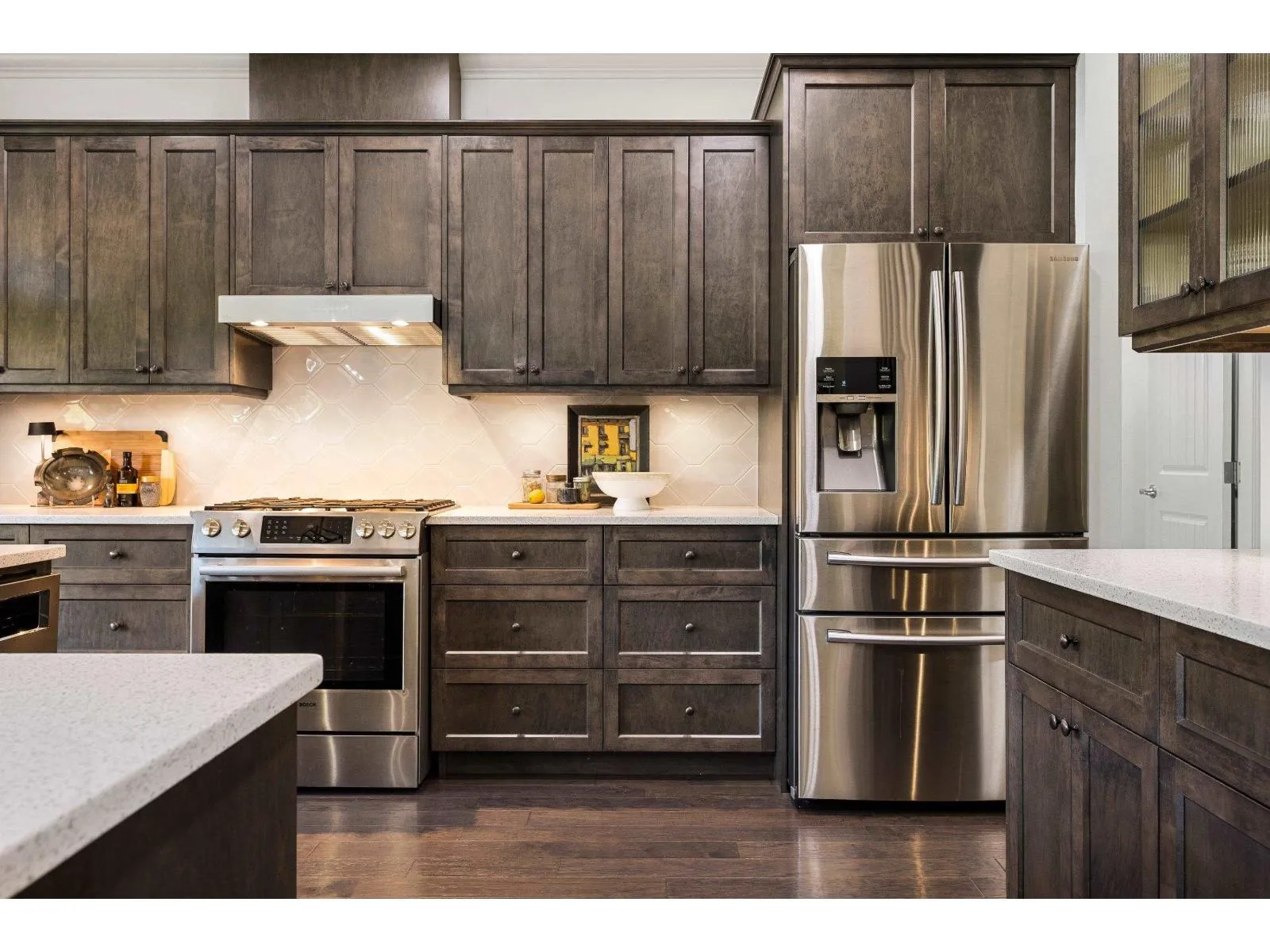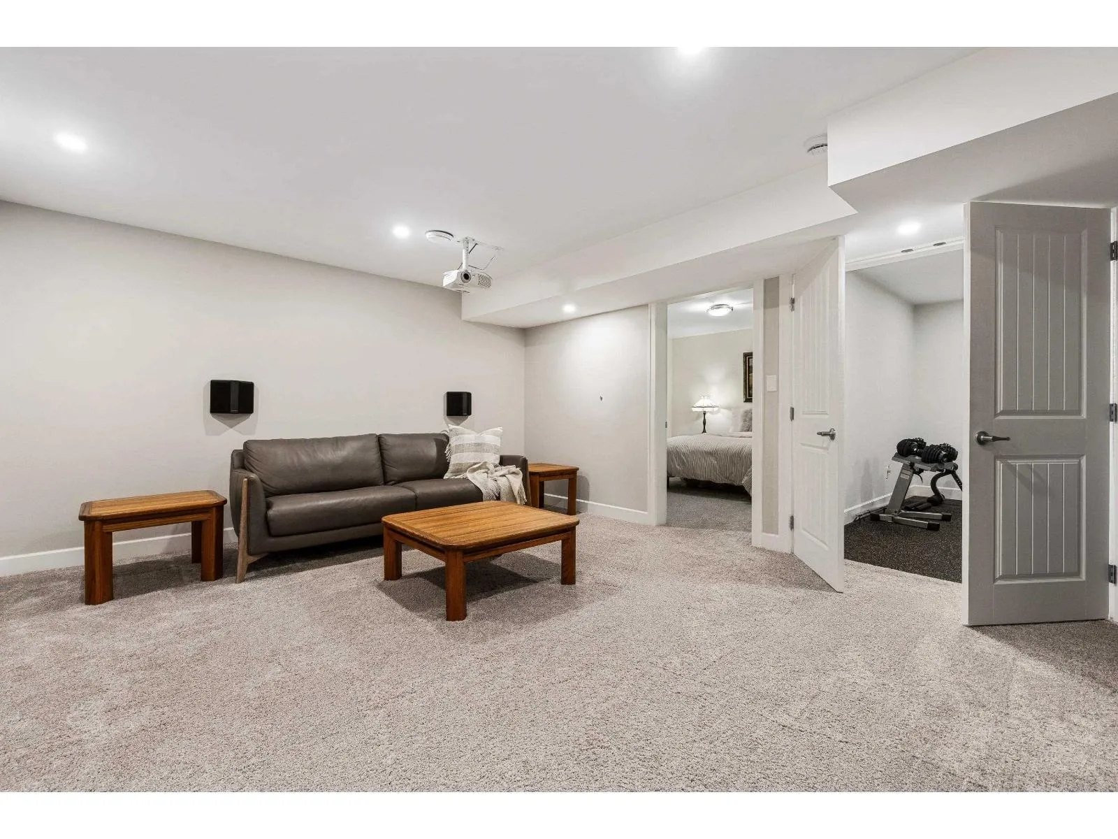 THIS IS IT! A 3 BEDROOM + DEN RANCHER w/ BSMT! This home is 100% MOVE-IN READY and features LOADS OF UPGRADES, including an incredible KITCHEN w/ Bosch GAS RANGE, Kraus farm sink w/ Kohler tap, designer tile backsplash, pantry w/ pull out, and drawers GALORE! Step right outside to your private patio w/ phantom screen. LIGHT OPEN SPACES w/ ample daylight, 2025 interior painting, custom chandelier & light fixtures, hardwood flooring, AC- the list goes ON! Large primary on main w/ b.i. closet organizers. FINISHED BSMT w/ 2 guest rooms, one w/ massive w.i. closet, full bathroom, GYM, crafting area w/ vinyl floors, wine/storage room, AND A MEDIA AREA w/ r.i. speakers & projector. WOW! All this plus a 2 door DOUBLE garage & located across from visitor parking. One for the MUST SEE LIST! * PREC - Personal Real Estate Corporation (id:27476)