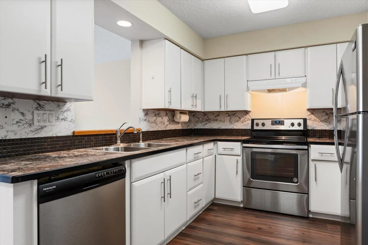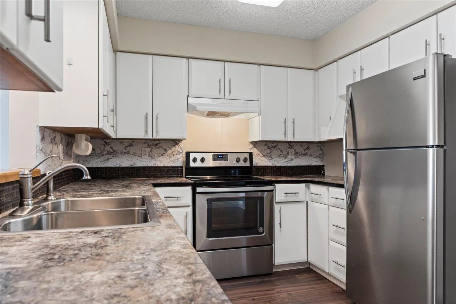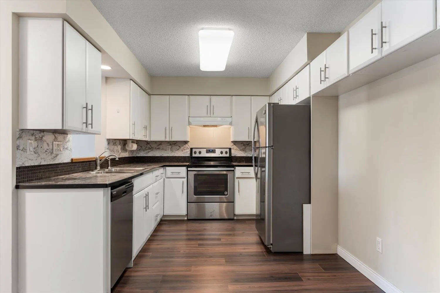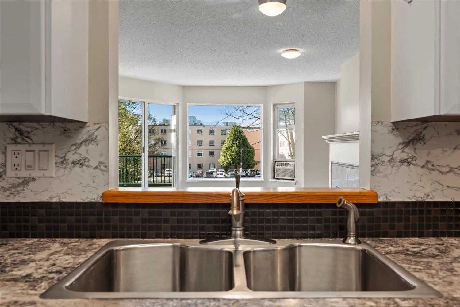 Welcome to this bright & spacious 1 bdrm, 1 bath condo, 804sqft of comfortable living space. Desirable south-facing exposure, this home is filled w/natural light. The thoughtfully designed layout features a large living room complete w/cozy natural gas fireplace, perfect for relaxing or entertaining. The kitchen offers ample cupboard & counter space, along w/convenient peek-through to main living area and room for a dining table. Recent updates include new carpet & new HWT. Additional features include in-suite laundry for added convenience. This well-maintained building offers an elevator, underbuilding parking, storage locker, and access to a residents' lounge. Convenient location- just a short walk to shopping, restaurants & amenities. Strata $353.83/mo, no age restrictions & no pets. * PREC - Personal Real Estate Corporation (id:27476)
