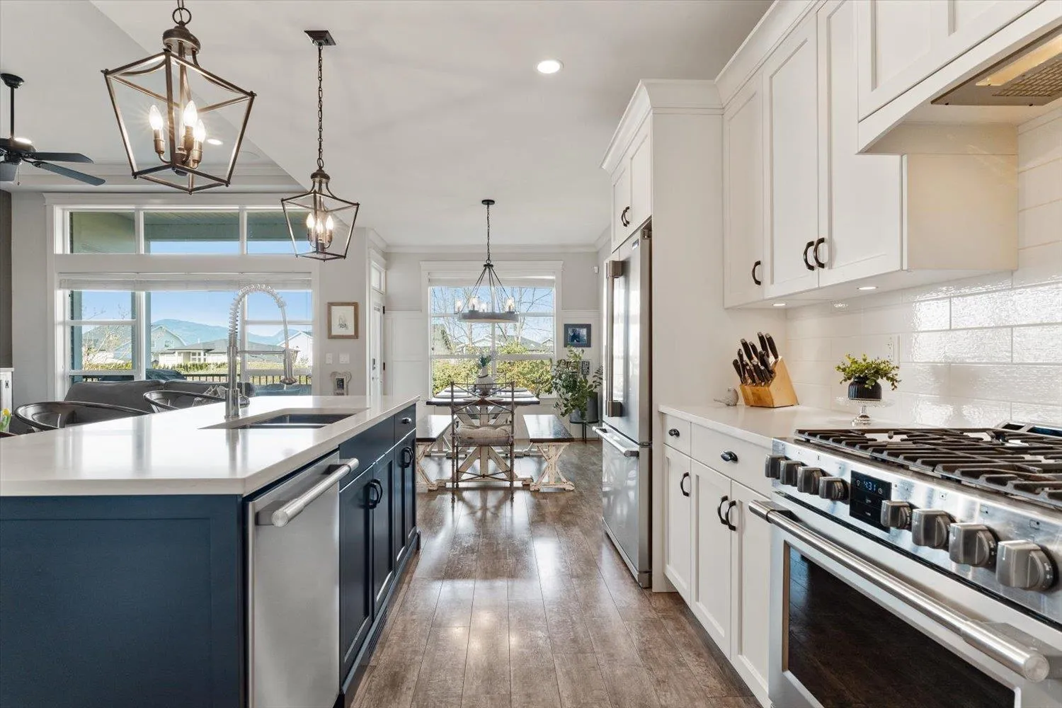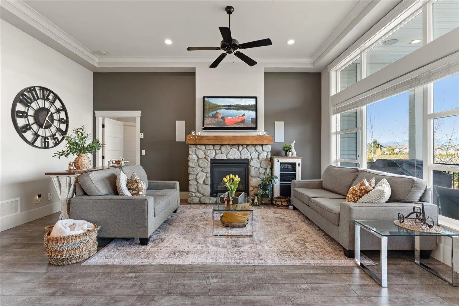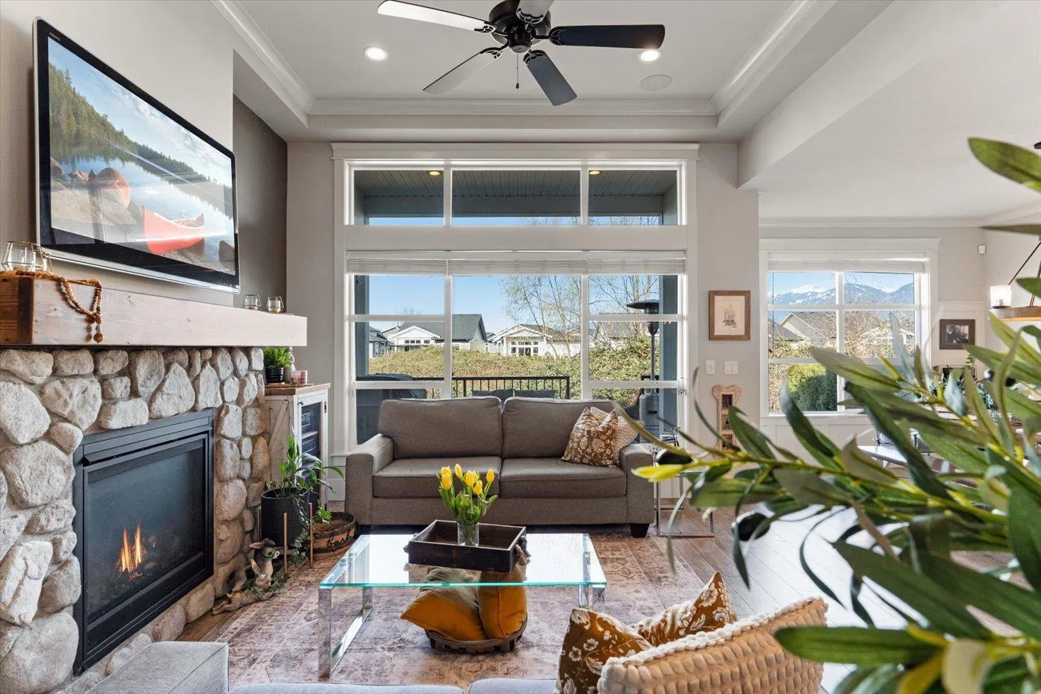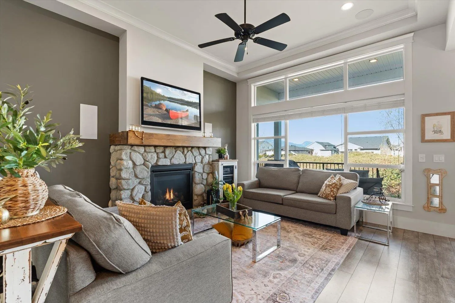Welcome to Elysian Village! This pristine, one-owner detached rancher in a gated, family-friendly community shows like new! The main floor boasts high ceilings, large windows drawing in natural light, and a generous open-concept layout perfect for entertaining. Retreat to the primary suite featuring a custom spa-like ensuite with a skylight, heated floors, and a soaker tub. The versatile basement includes a rec room, dedicated media room, and a flex space with a barn door"-ideal for a gym, toyroom or guest room. Enjoy mountain views from your back deck or relax in the private, low-maintenance backyard featuring artificial turf, patio & full fencing. Bonus perks: permanent outdoor lighting, irrigation, EV charger, and secure RV parking. Easy Hwy access and located just on the skirts of town * PREC - Personal Real Estate Corporation (id:27476)