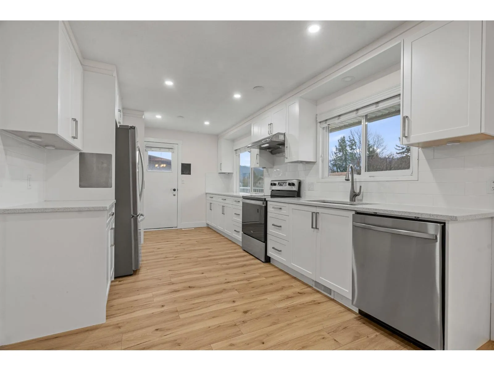 The perfect family home: private backyard, quiet street, and close to all levels of schools! Fully renovated 4 bed and 2.5 bath property located in one of the best Sardis neighbourhoods and backing onto Mountview Park. 3 beds and 1.5 baths upstairs with a wrap around deck and breathtaking mountain views. Recent updates include new kitchen cabinets, quartz counter tops, lighting, laminate flooring, paint and appliances. Downstairs has a recently renovated one bedroom mortgage helper with its own laundry. Other upgrades in previous years include high efficiency furnace, central air conditioning, asphalt roof, vinyl windows and the hot water tank. The oversized driveway and garage offer room for all your vehicles, toys and storage needs! Check with the city for future sub division potential. (id:27476)