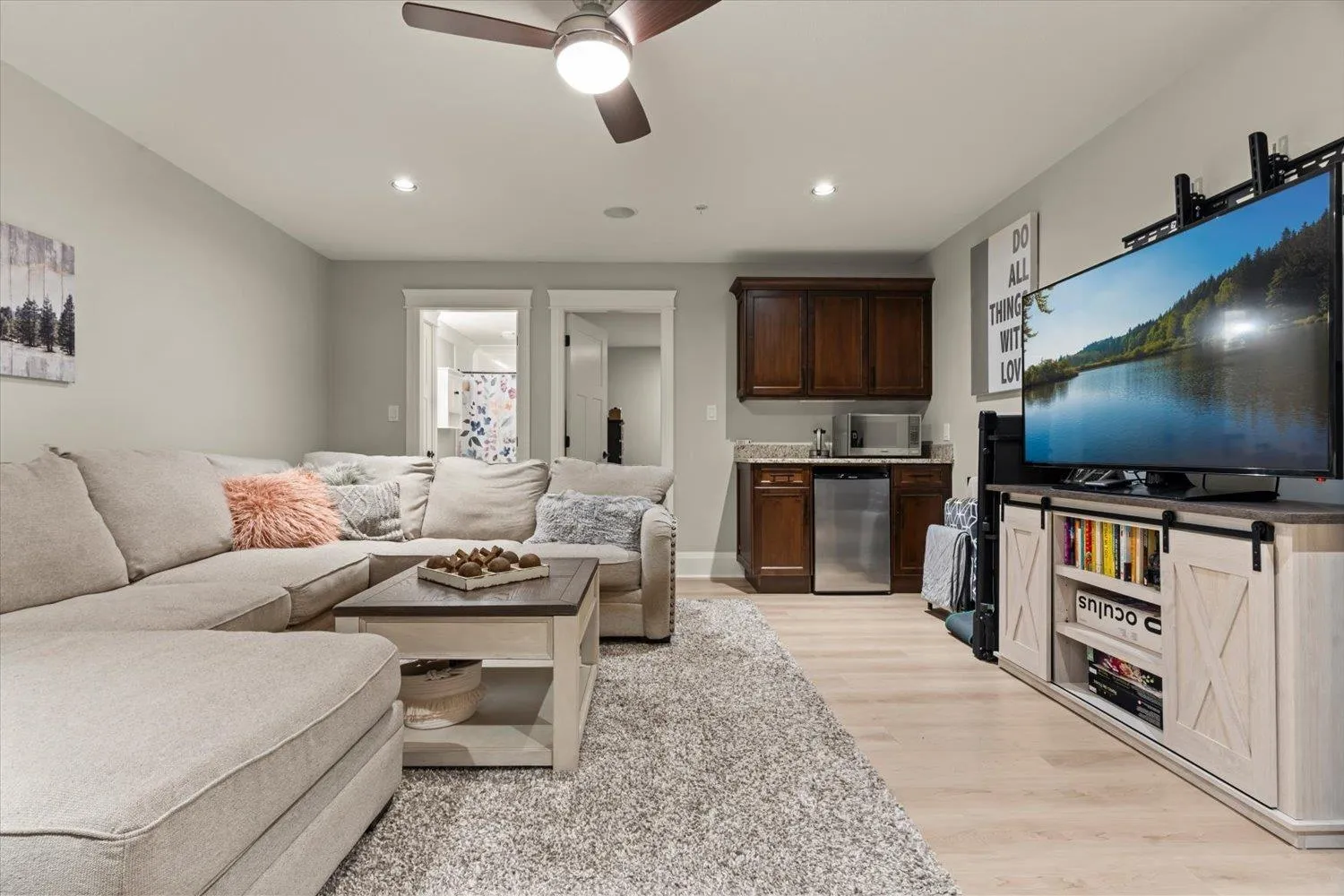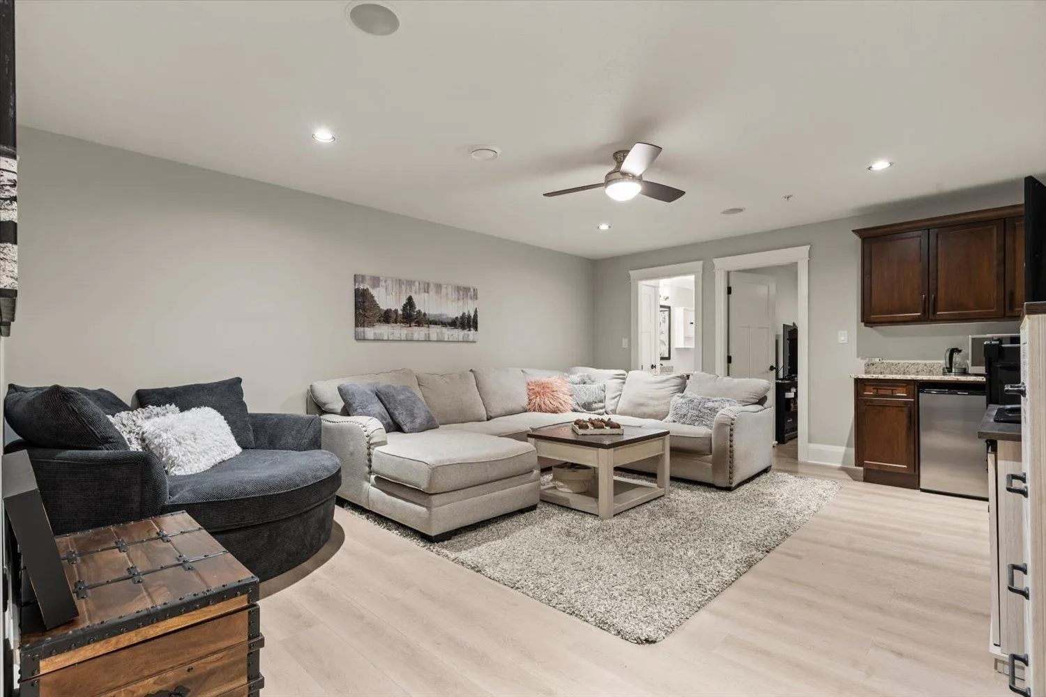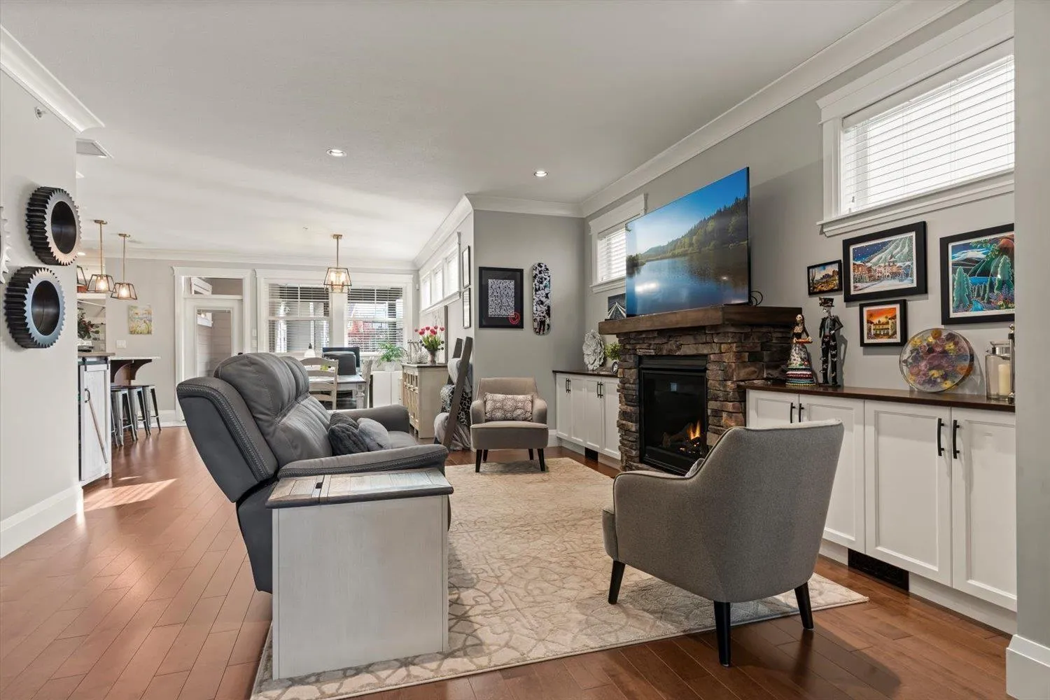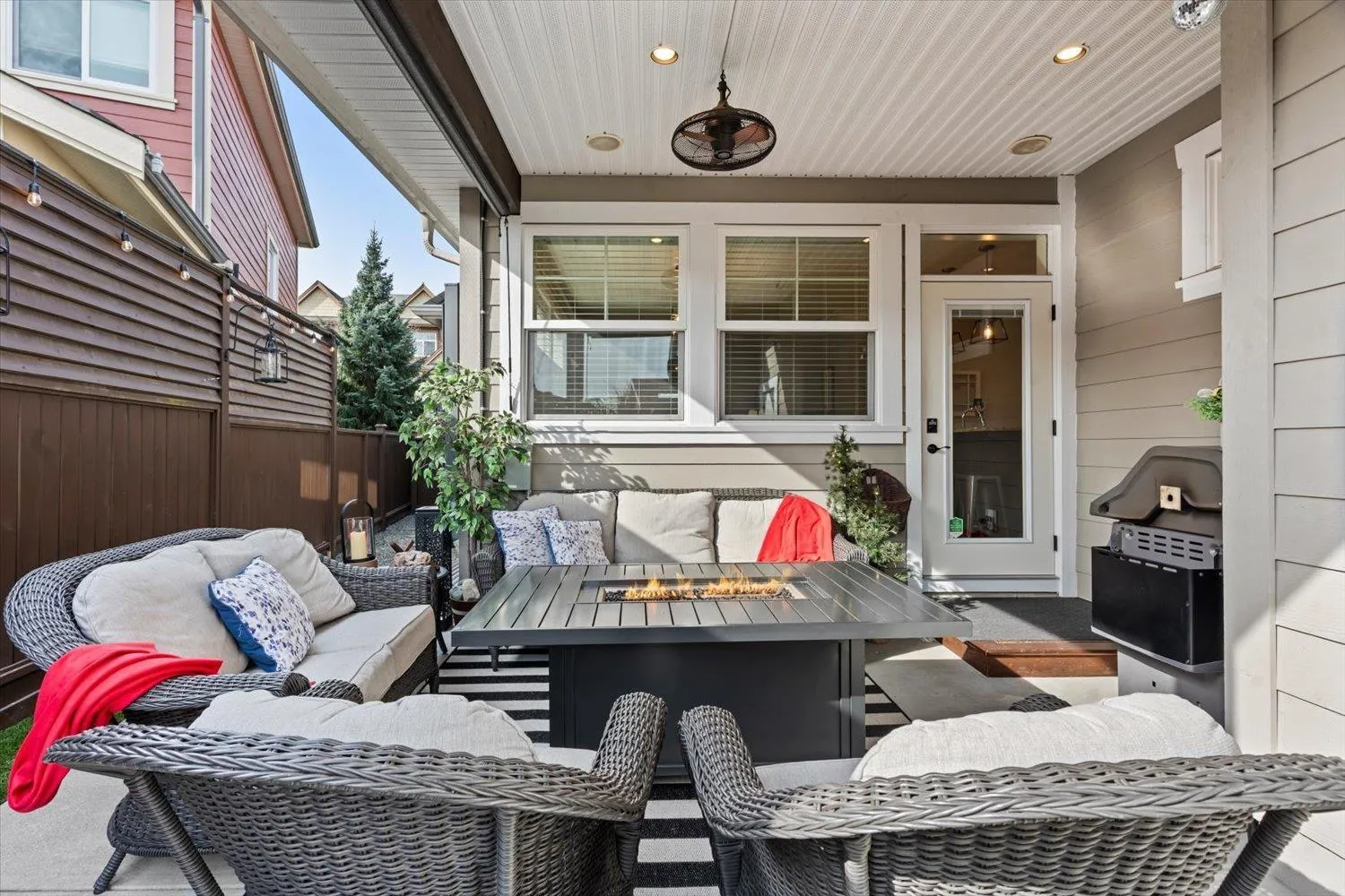 Garrison Crossing DREAM with NO strata fees or rules! This well maintained 3 bed, 3 bath + OFFICE 1/2 duplex feels like a detached home. The MAIN floor features a spacious PRIMARY suite with generous closet space and an ensuite w/dbl sinks. The kitchen (d/w, fridge, w/d 2024) offers granite countertops, ample cabinetry, and an eat-up island, flowing seamlessly into the dining and living areas. Step outside to an entertainer's patio with artificial turf and Gemstone lighting. The fully finished basement includes a large rec room, 2 bedrooms PLUS OFFICE, and a full bath - perfect for the teens or guests. Extras include A/C, built-in speakers, s/s appliances, 9' ceilings, and an extra-tall garage w/shelving, attic storage space & much more. THIS is the heart of Garrison at its finest! (id:27476)