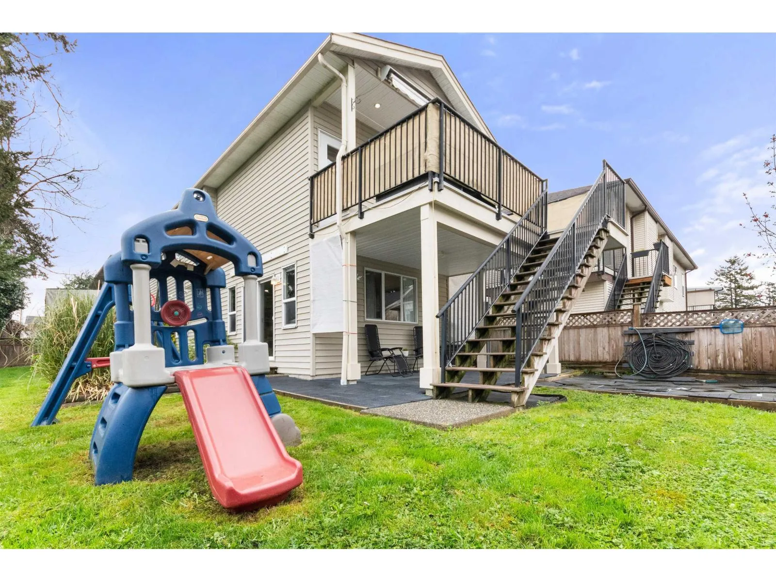 Wonderful 2,200 sq/ft basement entry home in a family friendly Fairfield Island cul-de-sac! Upper level features a vaulted great room with natural gas fireplace, bright kitchen with large island, new vinyl plank flooring, and 3 spacious bedrooms including primary with walk-in closet & ensuite. Enjoy your morning coffee on the sunny 10' x 15' south facing balcony. Lower level offers a fantastic in-law suite/mortgage helper with separate entrance & laundry, plus a covered 10' x 15' patio. Double 21 x 27 garage, full driveway, and fenced yard. Close to parks, schools, and recreation. (id:27476)