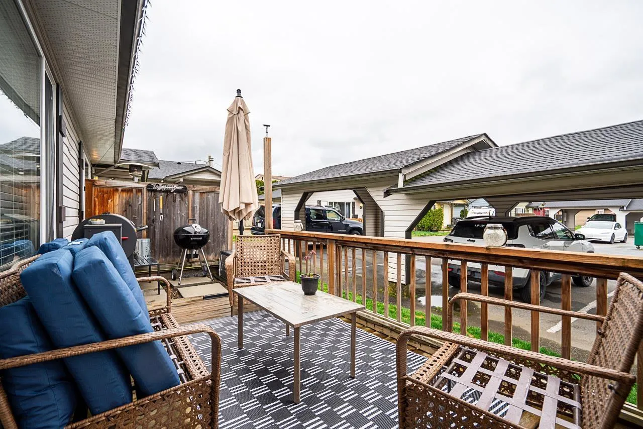 INVESTOR ALERT "â rentals & pets allowed. A nice private community in popular Garrison. Detached & Duplex style - rancher homes immaculate . Completely renovated inside and out, home shows great with quartz counters, forced air natural gas heat, newer s/s appliances "â Frig/stove, Insuite laundry "â washer/dryer, large island in kitchen & laminate flooring. Mountain views from Kitchen window and patio. Open floor plan with big living room, 2 large bedrooms. Large front deck. 2 parking stalls right in front of unit, 1 Carport & 1 open. Storage shed. Walk to Garrison Village shopping, Vedder walking trails, Dog park, 10 minutes to Cultus. Great starter home or for 1st time buyers. * PREC - Personal Real Estate Corporation (id:27476)
