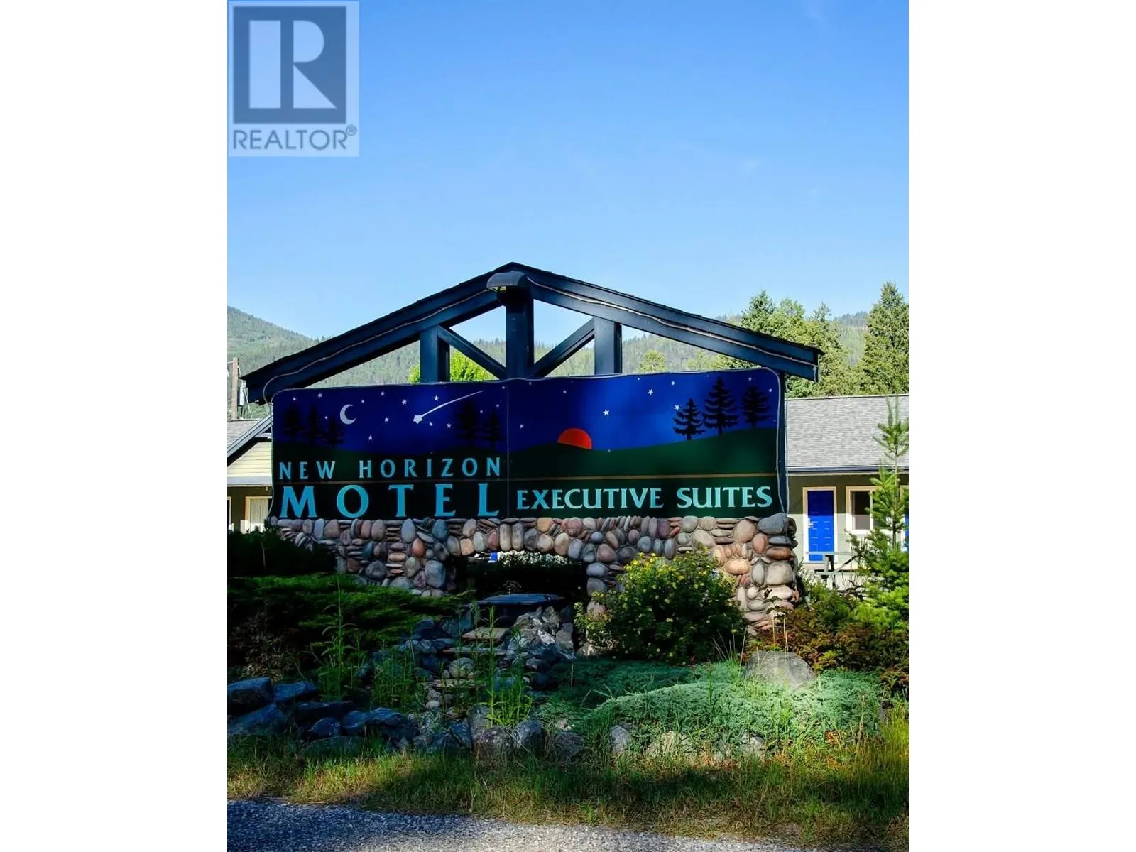 Gateway location to the popular Resort town of Christina Lake! One of two New Horizon Motel properties fronting Highway 3. 1.3 Acres of land consists of a single storey motel building with 9 suites, a two-bedroom manager's suite with basement, and breakfast room. This spacious property also has 7 RV sites serviced with electricity and can add additional 5 RV sites without compromising existing parking. Currently there are around 18 parking spaces. The possibilities are endless. Perfect for someone who would like to semi-retire running a 9-suite motel with 12 RV sites. Or you can easily add 10-20 suites while running this 9-suite motel, utilizing abundant parking. If you have a vision to bring something new to this beautiful town, the possibilities are endless. This is an ideal location for future development that this town deserves with the 370-ft frontage to the highway. The sale price does not include the business. However, the sale price includes all the assets, fixtures, and improvements, including the signage. This one is a great investment opportunity. (id:27476)