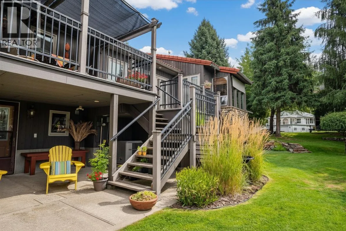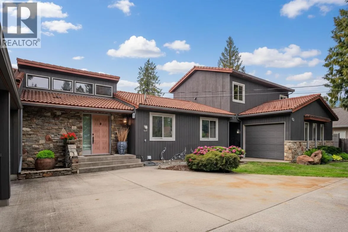 Discover the perfect blend of comfort, character, and versatility in this Spanish-inspired home, ideally located just a short walk from Christina Lake. Suitable for year-round living or as the ultimate summer getaway, this property offers a private, park-like setting with mature landscaping and multiple outdoor living spaces, including a spacious upper deck and covered patio perfect for relaxing or entertaining. The bright and inviting interior features a well-designed floor plan with a sunken living room, gas fireplace, and large windows that provide an abundance of natural light. The kitchen and dining areas connect seamlessly for everyday living, while the primary bedroom includes an ensuite and direct access to a private deck. With three bedrooms, three bathrooms, main-floor laundry, and ample storage, the home is both functional and comfortable. Additional highlights include a double garage and dedicated workshop space, ideal for vehicles, recreational equipment, or hobbies. Above the garage, a plumbed bonus area offers excellent potential for a guest suite, short-term rental, or mortgage helper. A unique opportunity in a desirable lakeside location, offering flexibility for full-time living, seasonal use, or investment potential. (id:27476)