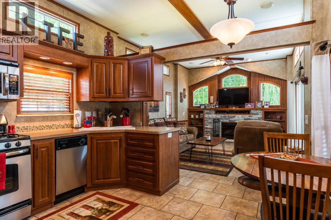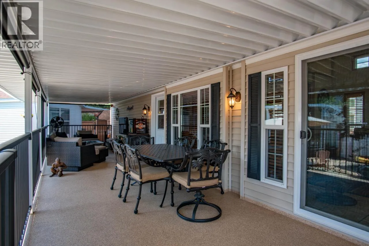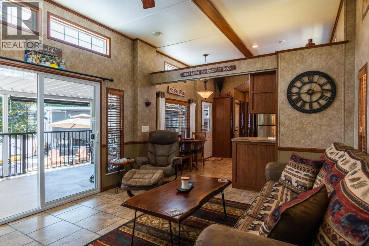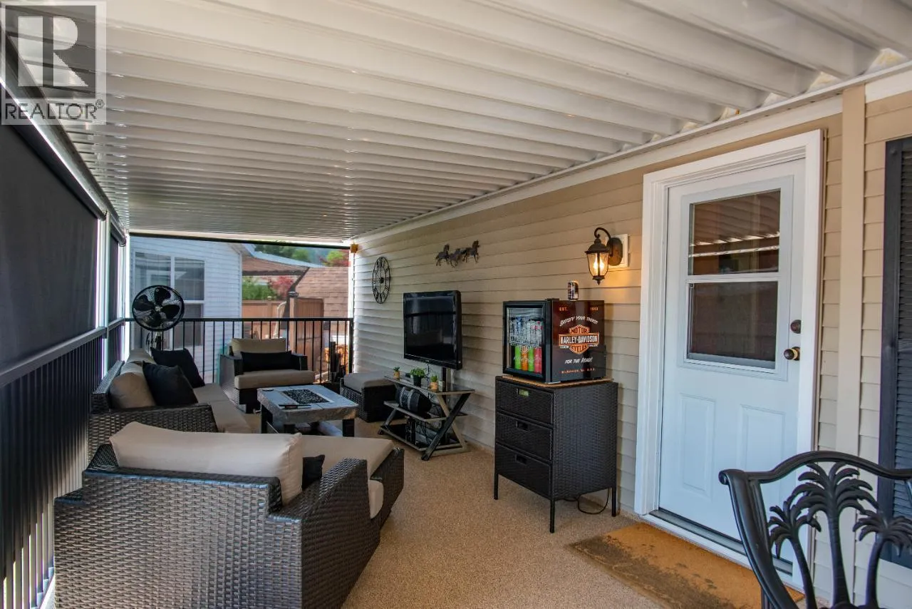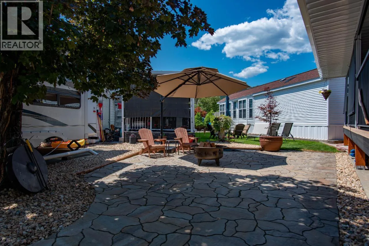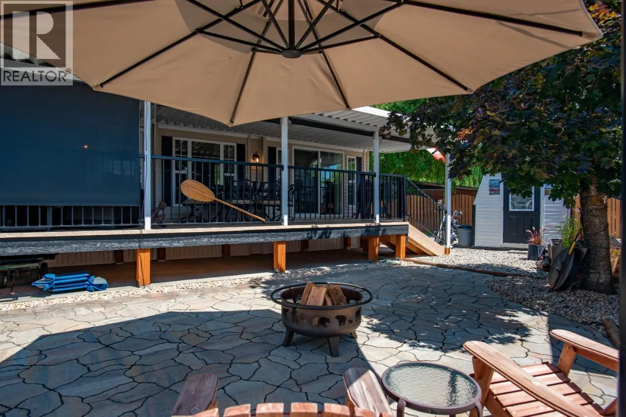 #108 1835 Bakery Frontage Road, Christina Lake, in Lakeside Resort is steps away from the beach and offers one of the best lots in the resort! Outside offers a newly developed custom deck with high end blinds and railings, stone patio area, and large shed for storage. With the ability to entertain inside or outside perfectly throughout the summer. Inside is immaculately kept and offers a large king master suite, bathroom with walk in shower and tons of storage, beautiful kitchen with a gas stove and a large living room. The living room also has a divider that can separate it for an additional bedroom. This home is mechanically sound and offers forced air and central air throughout, perfect for hot summers and cool spring fall time. Park model is included in the sale. And all furnishings inside and outside are included! This resort runs from early March to end of October. Many amenities such as Shower/Laundry facility, Rec Hall, off-leash pet areas, two docks and opportunity to get your own slip, storage for your boards/kayaks, and full time management! Also there is a beautiful quarter mile of sandy beaches with foreshore rights! This property includes exclusive use of lot of 108 in a shared interest of 35 shares. This property is nothing short of spectacular! Don't forget this property can be rented or used as a potential Air BNB for approx $200 a night. (id:27476)