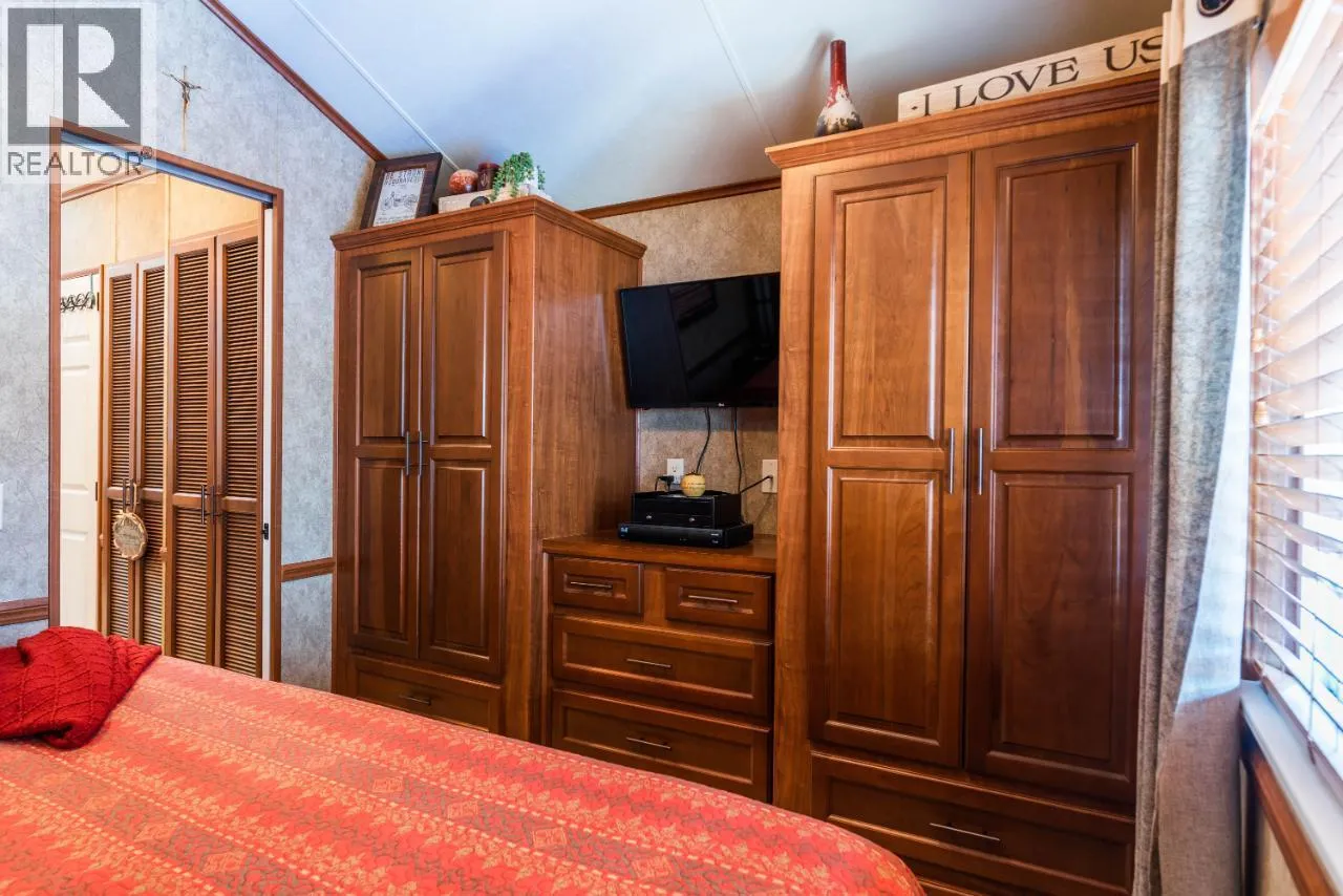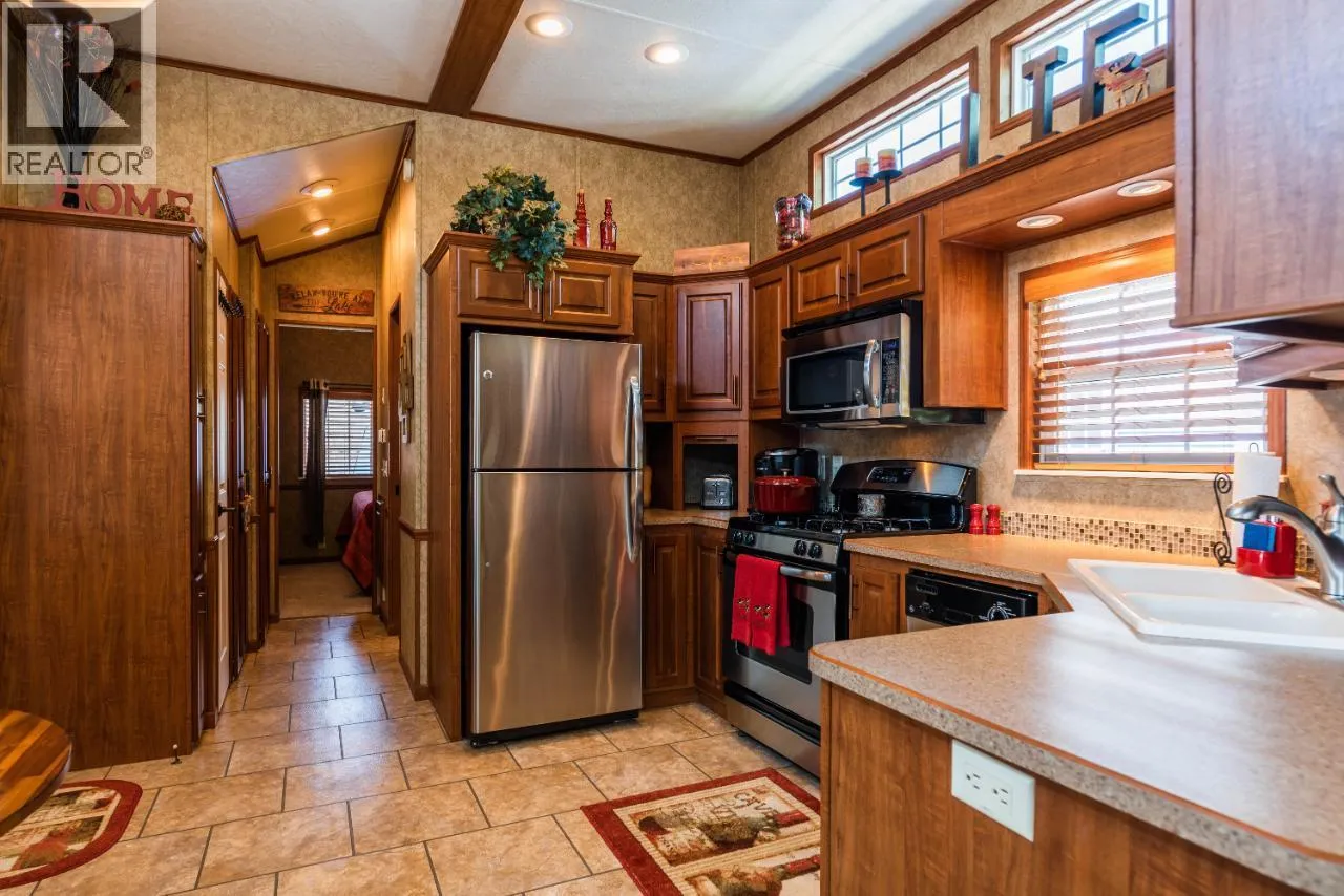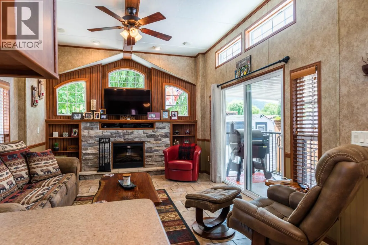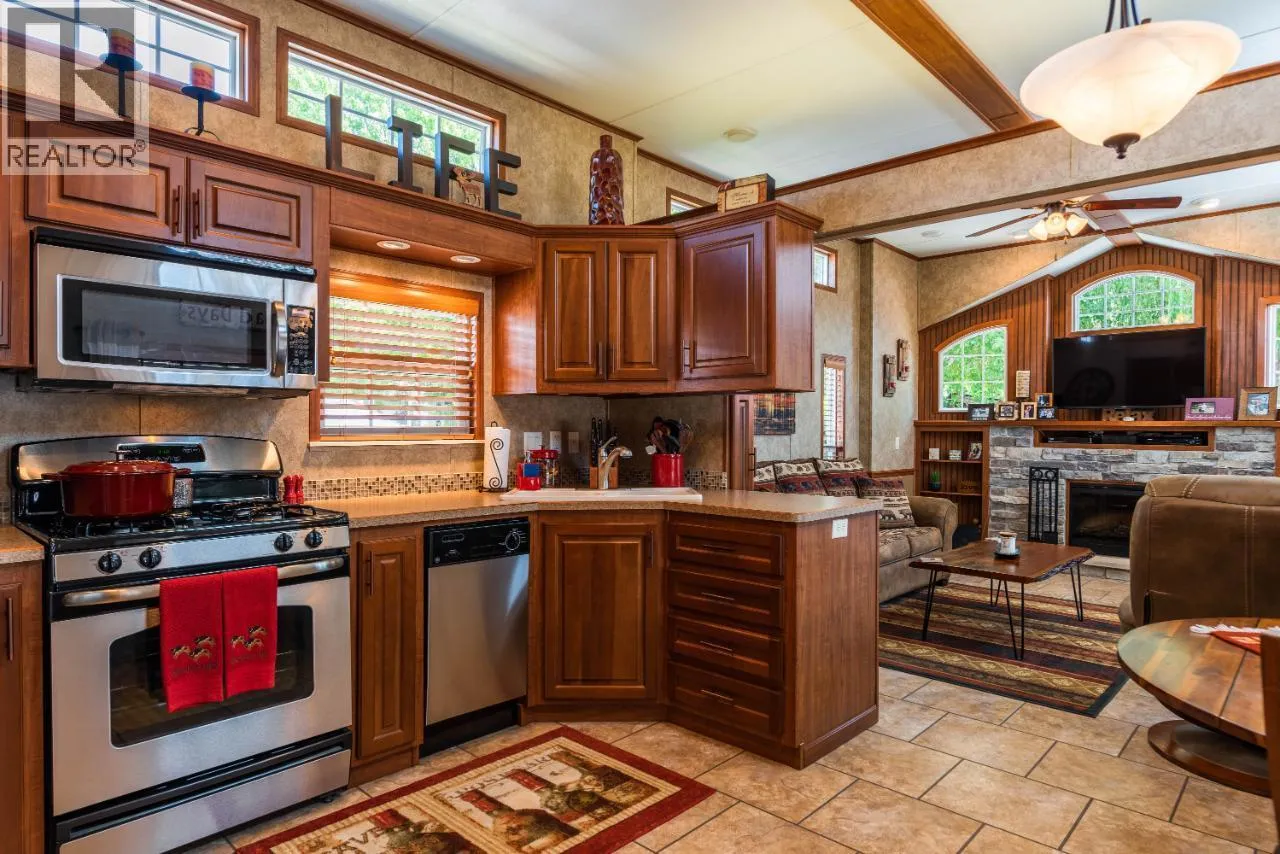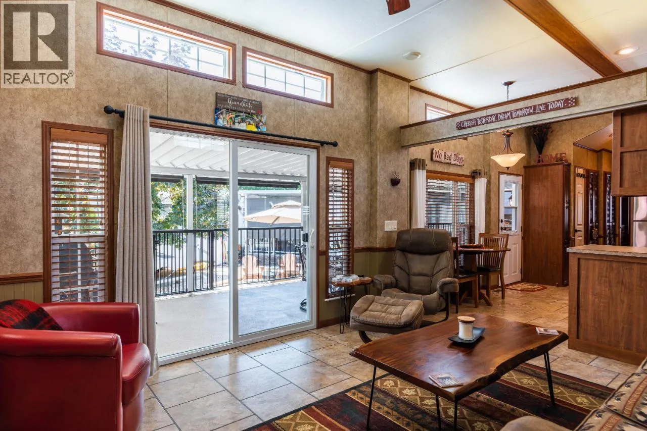 #108 1835 Bakery Frontage Road, Christina Lake, in Lakeside Resort is steps away from the beach and offers one of the best lots in the resort! Outside offers a newly developed custom deck with high end blinds and railings, stone patio area, and large shed for storage. With the ability to entertain inside or outside perfectly throughout the summer. Inside is immaculately kept and offers a large king master suite, bathroom with walk in shower and tons of storage, beautiful kitchen with a gas stove and a large living room. The living room also has a divider that can separate it for an additional bedroom. This home is mechanically sound and offers forced air and central air throughout, perfect for hot summers and cool spring fall time. Park model is included in the sale. And all furnishings inside and outside are included! This resort runs from early March to end of October. Many amenities such as Shower/Laundry facility, Rec Hall, off-leash pet areas, two docks and opportunity to get your own slip, storage for your boards/kayaks, and full time management! Also there is a beautiful quarter mile of sandy beaches with foreshore rights! This property includes exclusive use of lot of 108 in a shared interest of 35 shares. This property is nothing short of spectacular! Don't forget this property can be rented or used as a potential Air BNB for approx $200 a night. (id:27476)